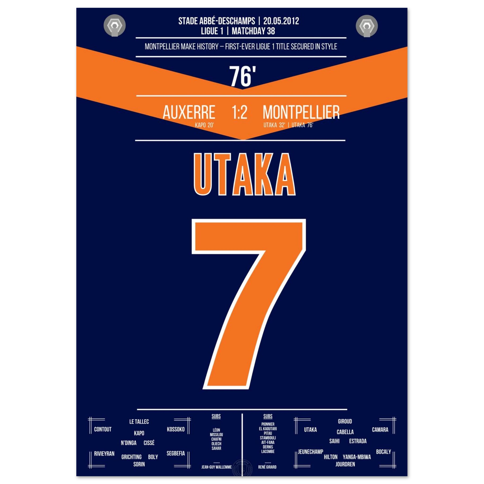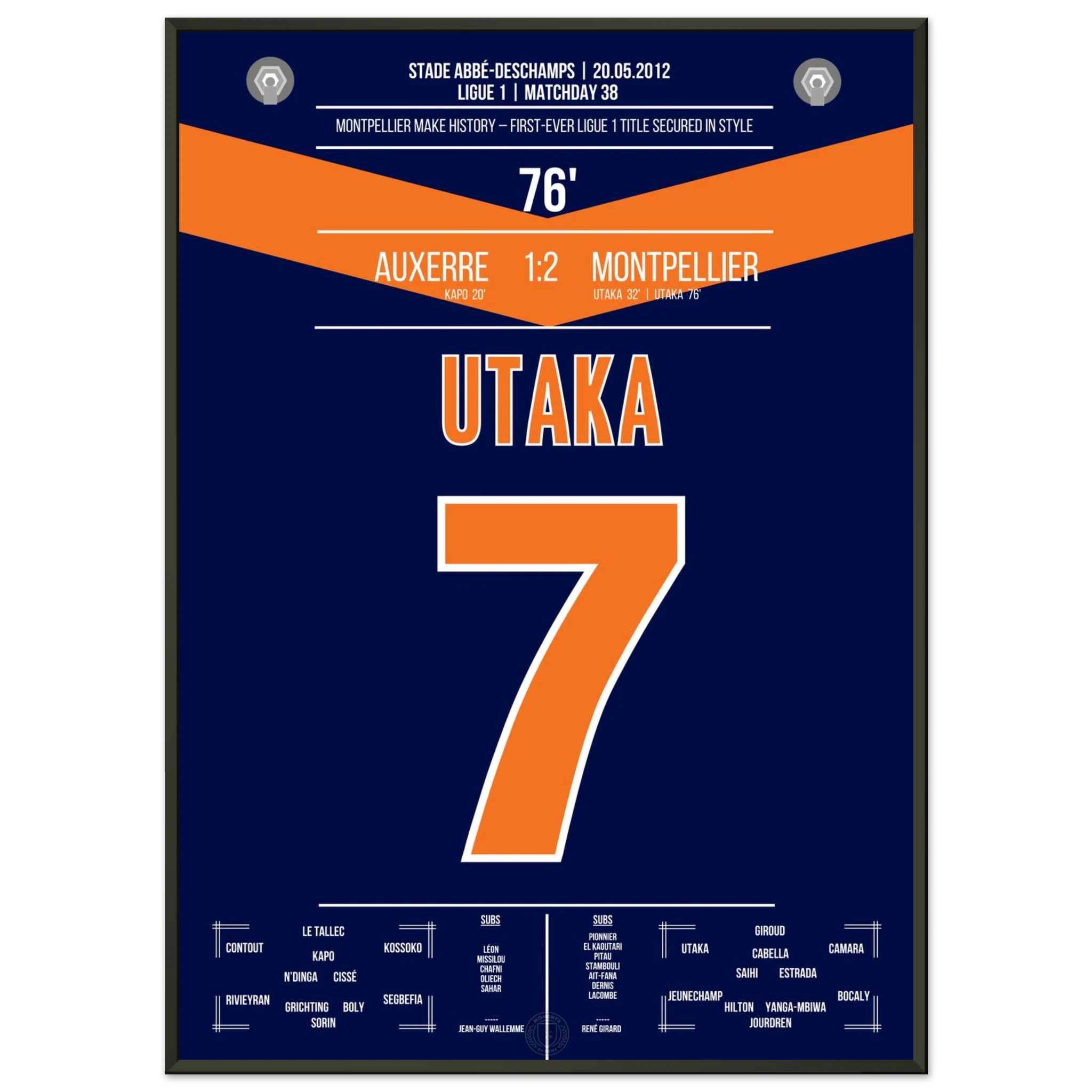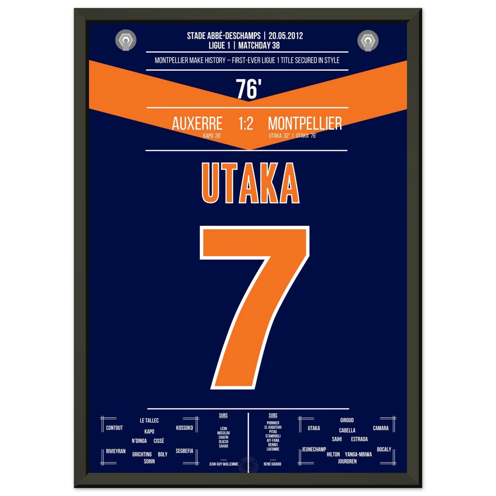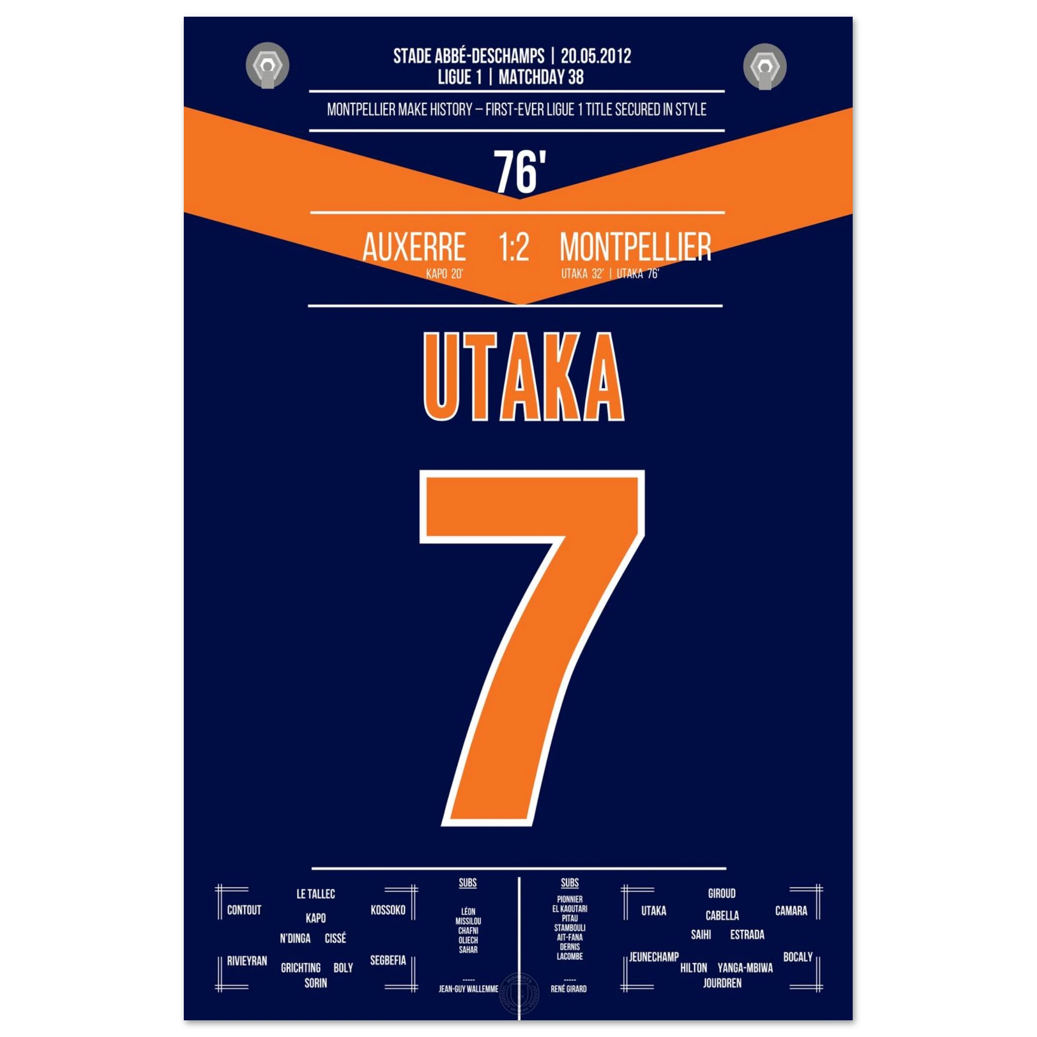 Unser Poster hält den Moment fest, in dem eine Stadt explodierte vor Glück – Utaka, der Held, der Montpellier unsterblich machte.