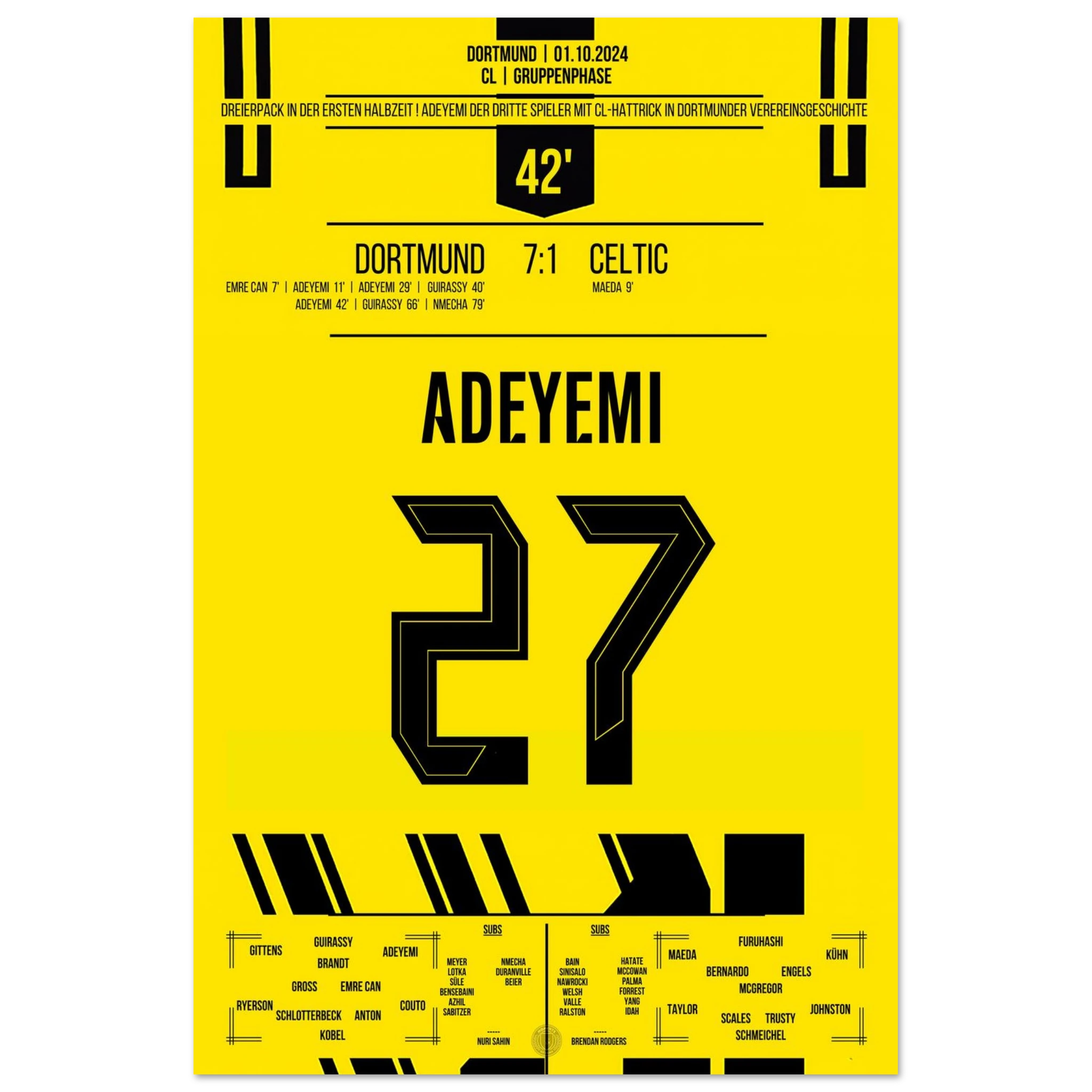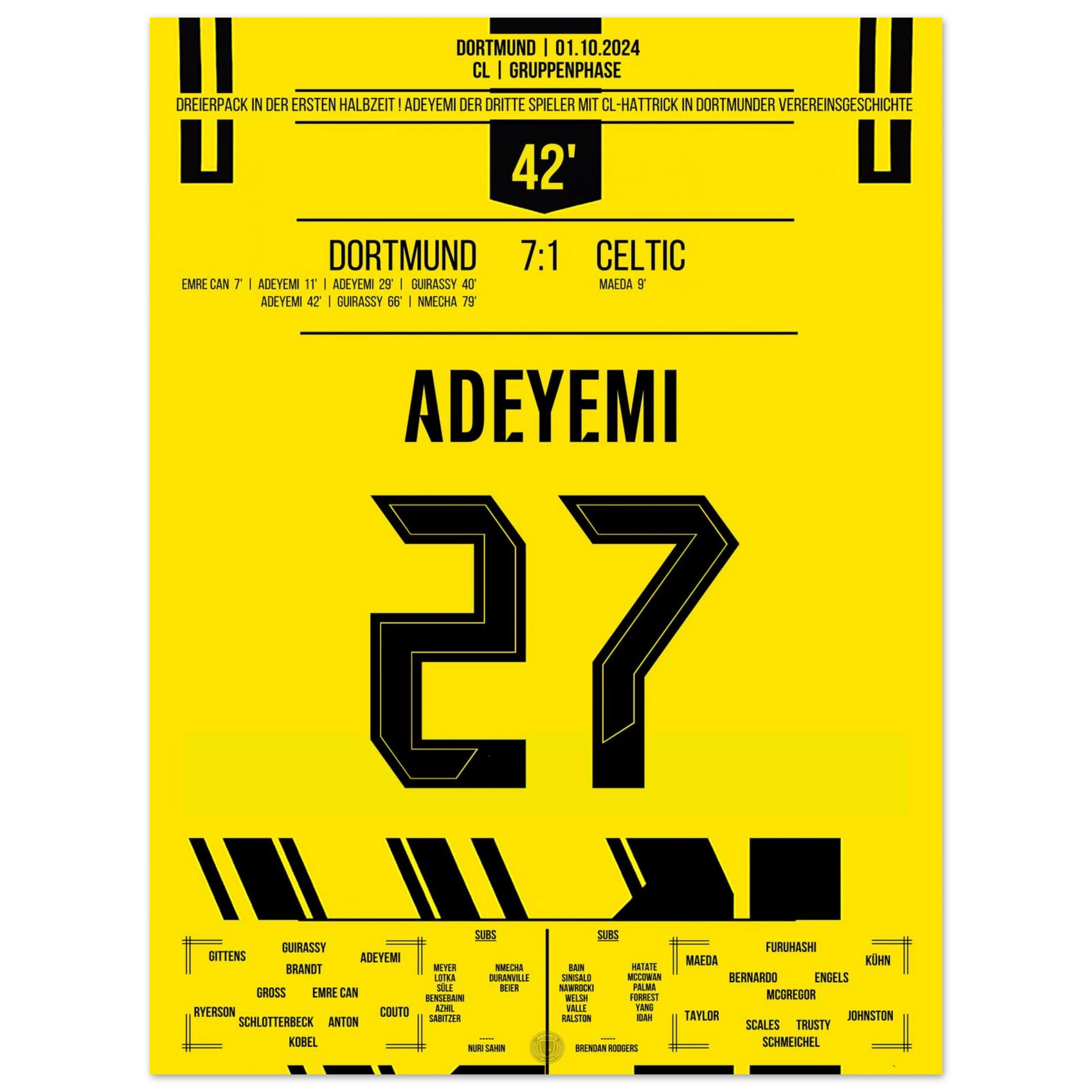Unser Poster feiert Adeyemis magische Nacht – pure Explosivität in Schwarz und Gelb, festgehalten für die Ewigkeit.
