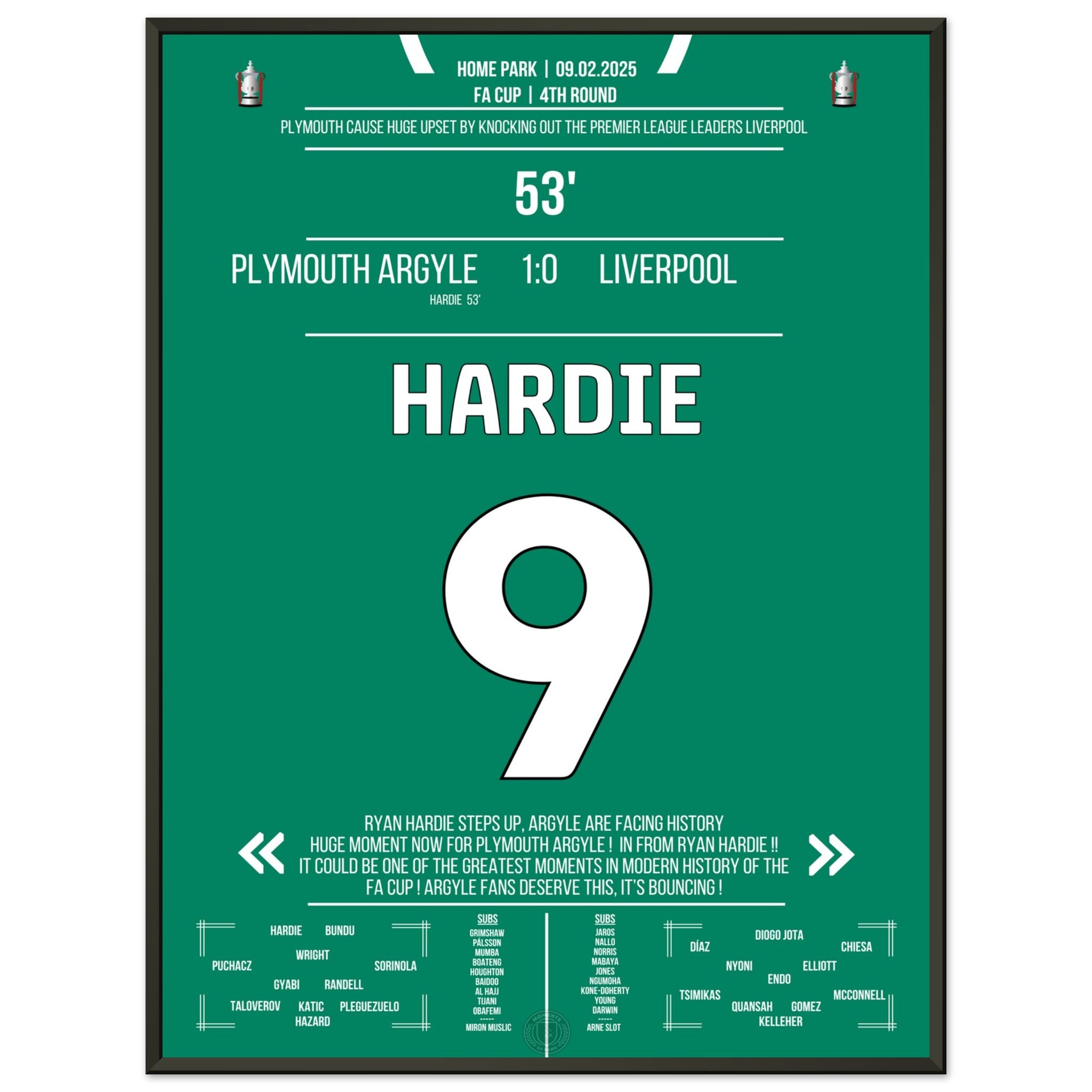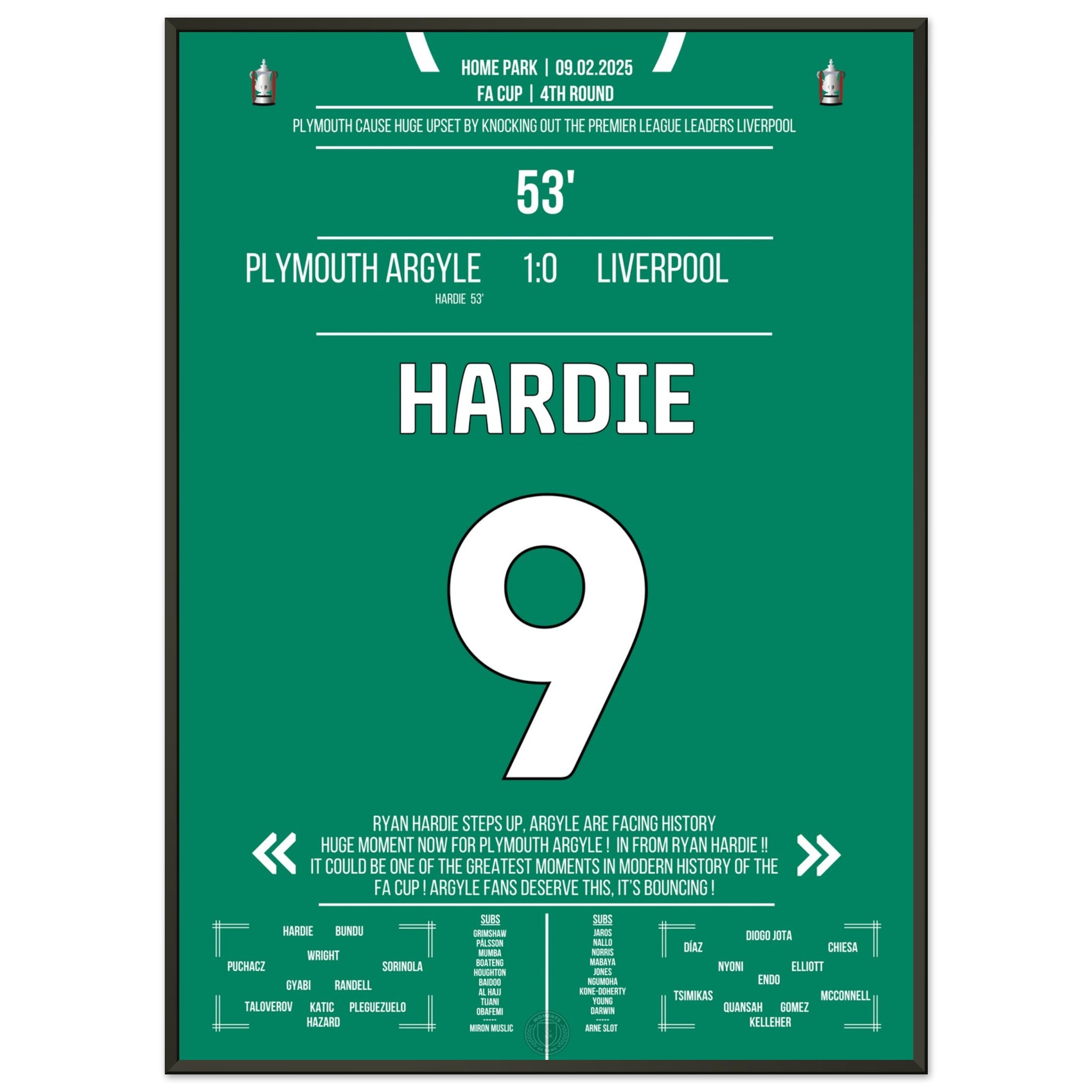 Jedes Poster und jeder Rahmen wird sicher verpackt versandt, sodass sie in einwandfreiem Zustand ankommen. Perfekt für die Sammlung jedes Fußballfans oder als ideales Geschenk!