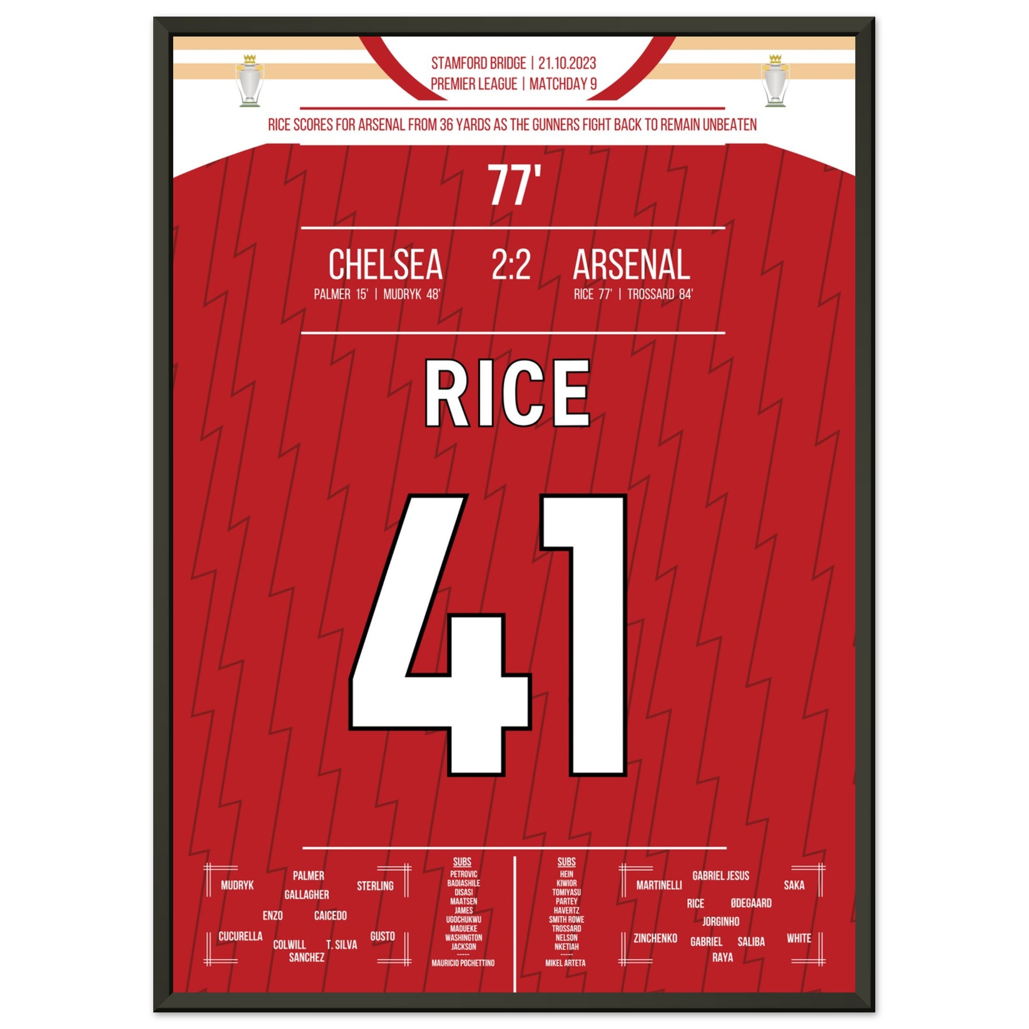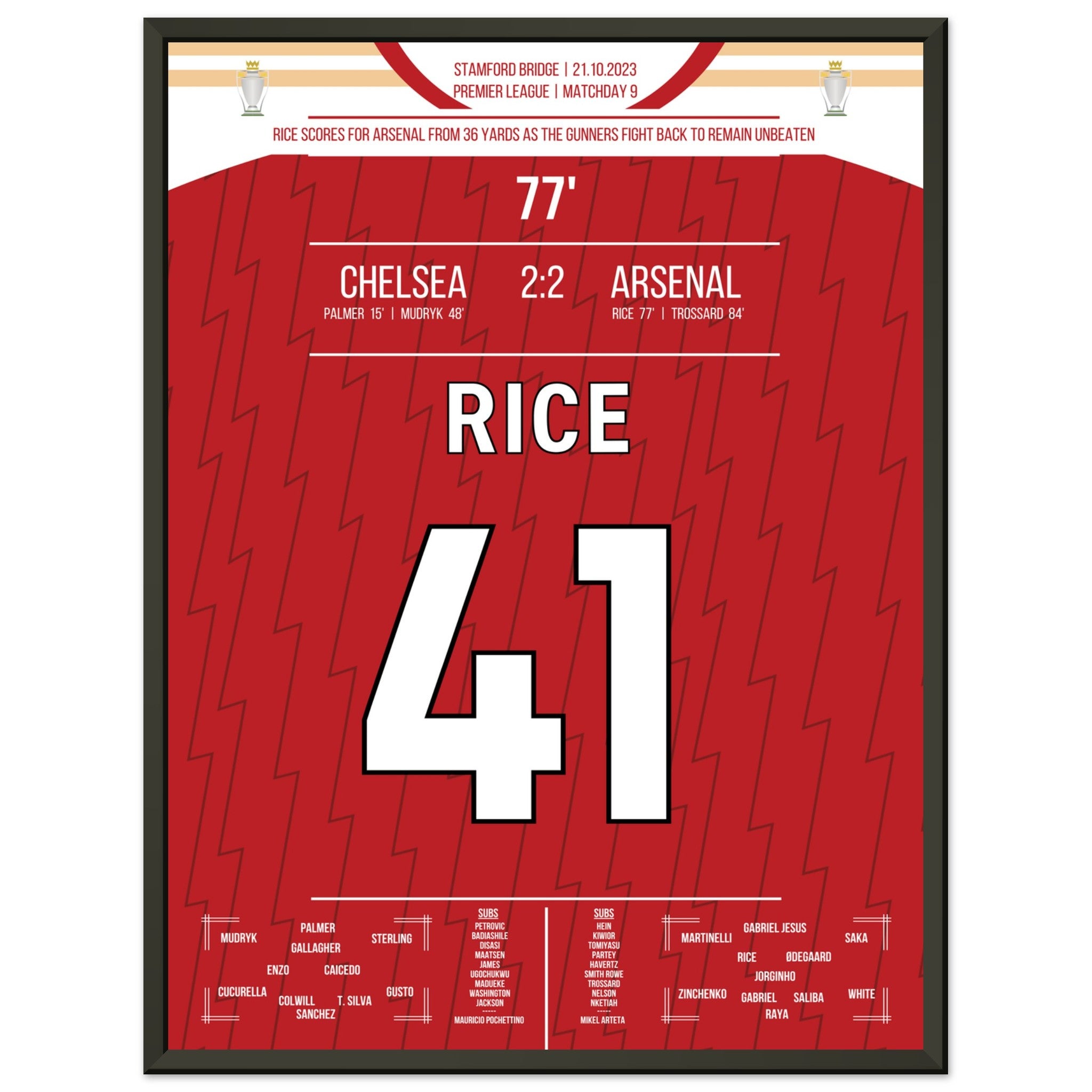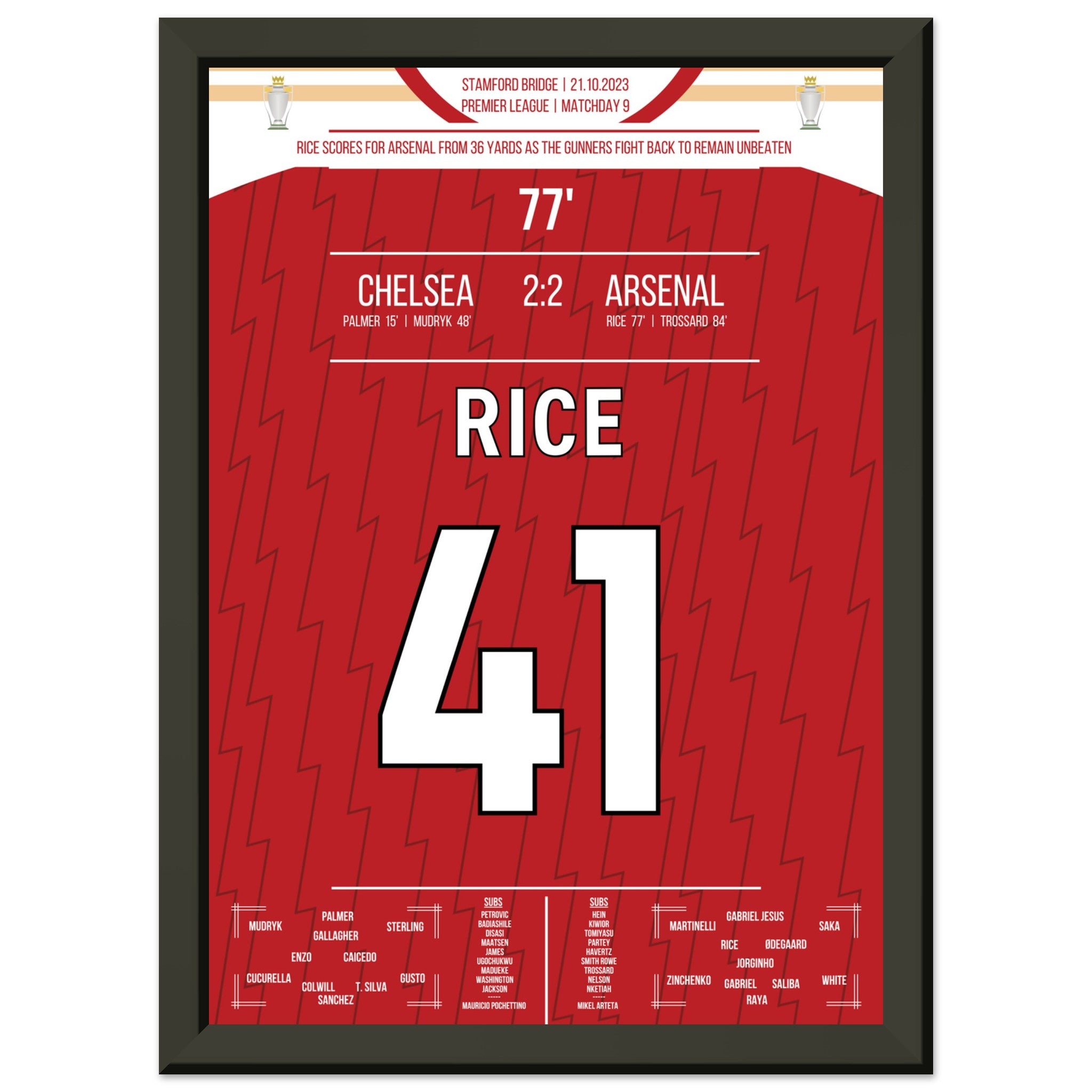 Hier kommt unser Premium-Druck dieses unvergesslichen Fußballmoments für das ultimative Fan-Erlebnis. Gedruckt auf schwerem, seidenmattem Premium-Papier, glänzt dieses Kunstwerk mit verstärkten Farben und einem subtilen Glanz, der jedes Detail zum Vorschein bringt.
