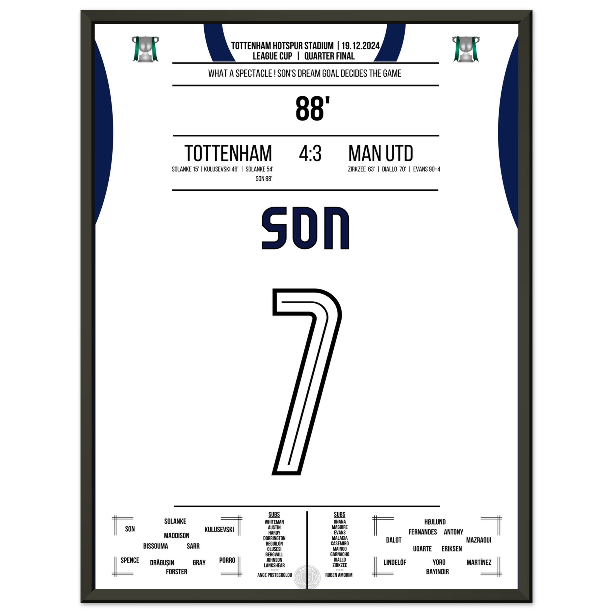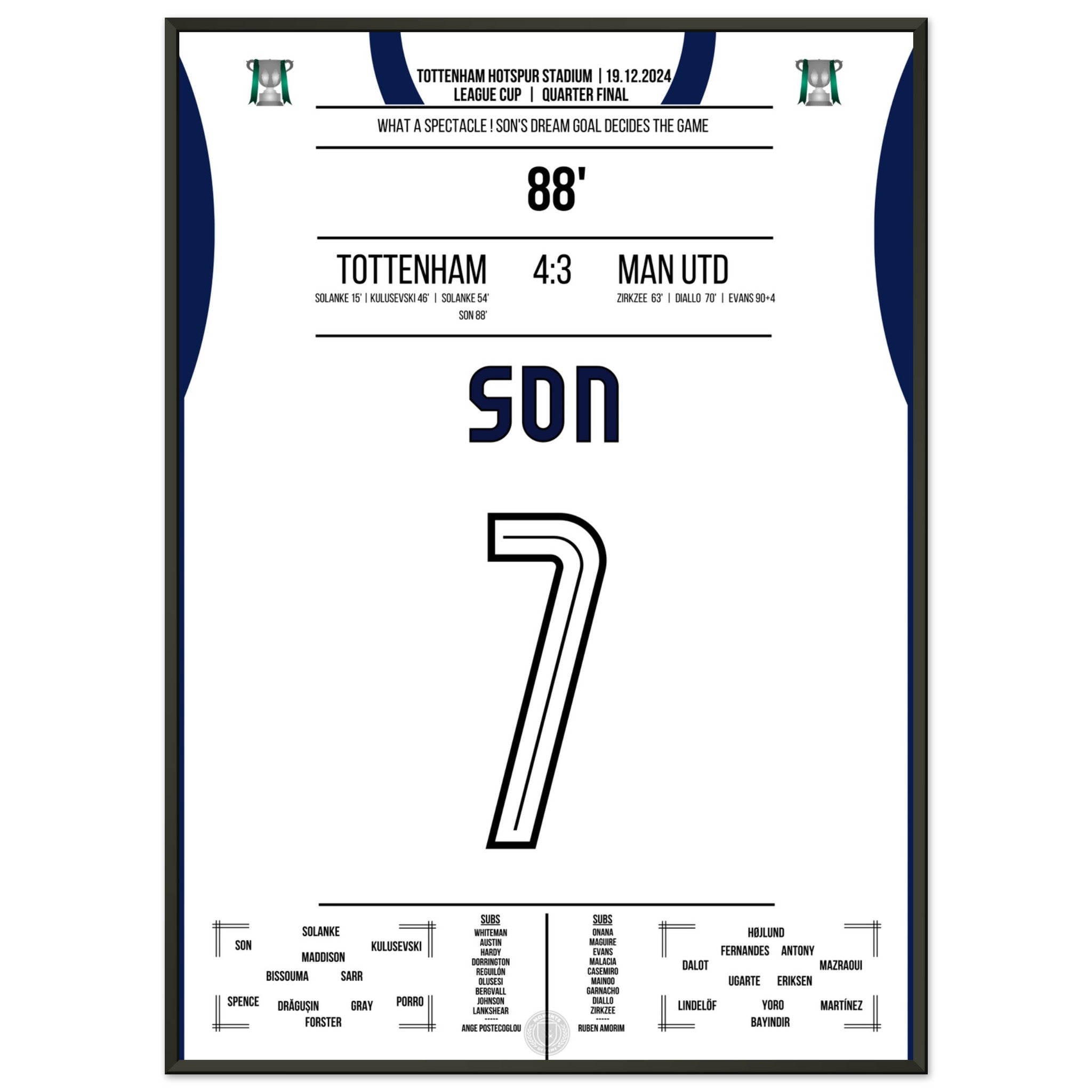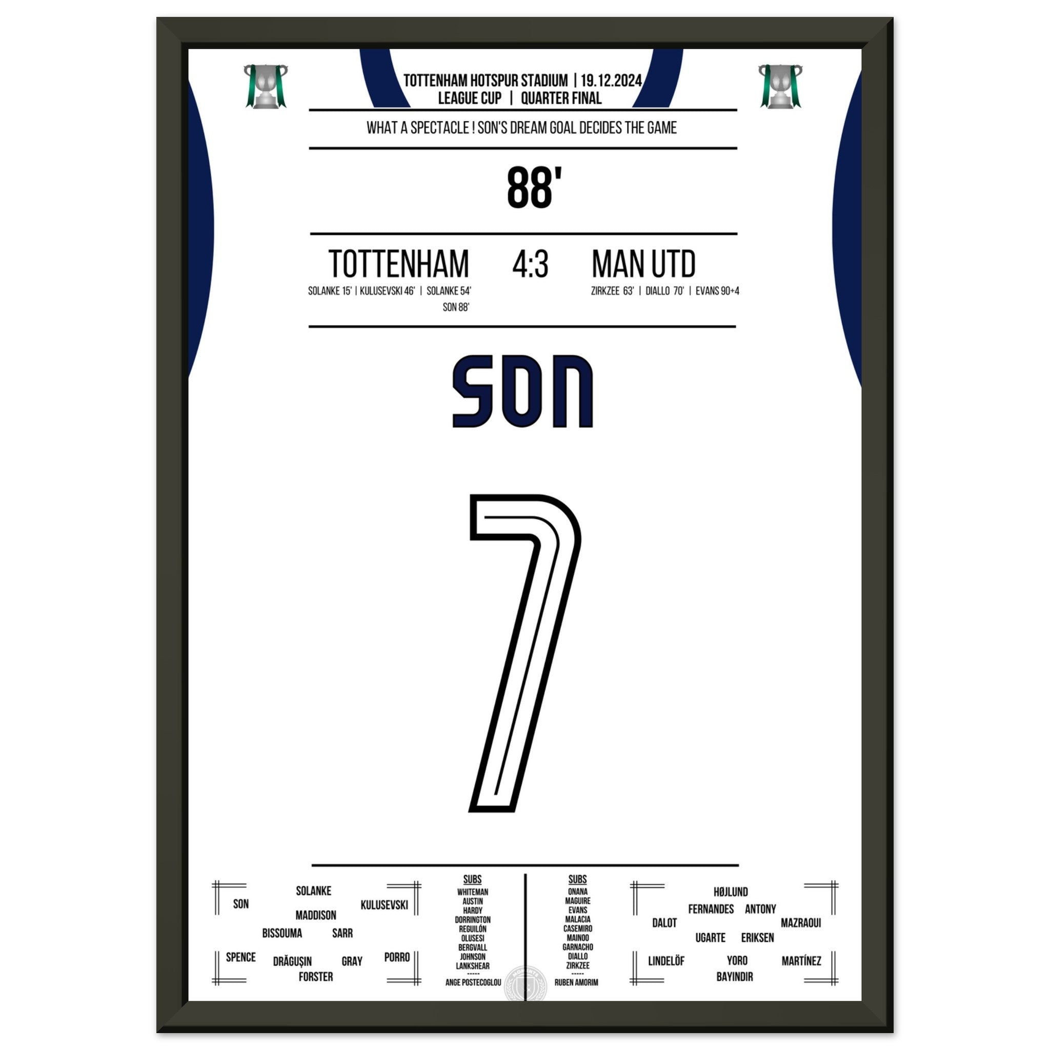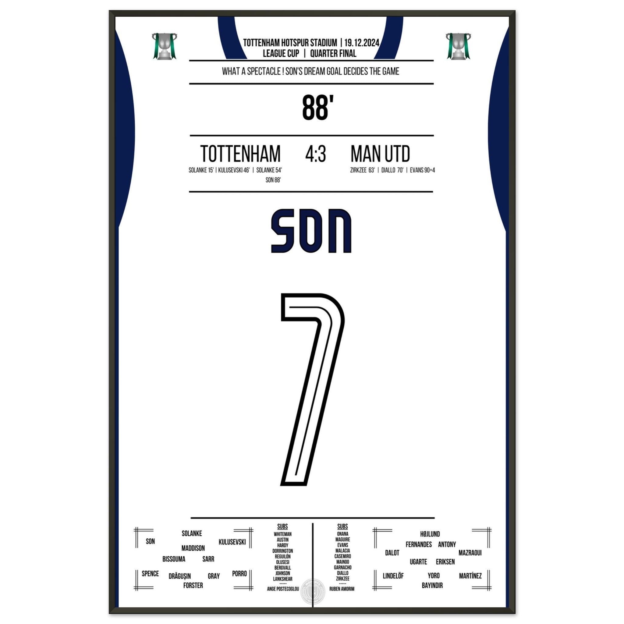 Hier ist unser Premium-Druck dieses unvergesslichen Fußballmoments für das ultimative Fan-Erlebnis. Auf schwerem, seidenmattem Papier gedruckt, glänzt das Kunstwerk mit intensiven Farben und subtilen Details.