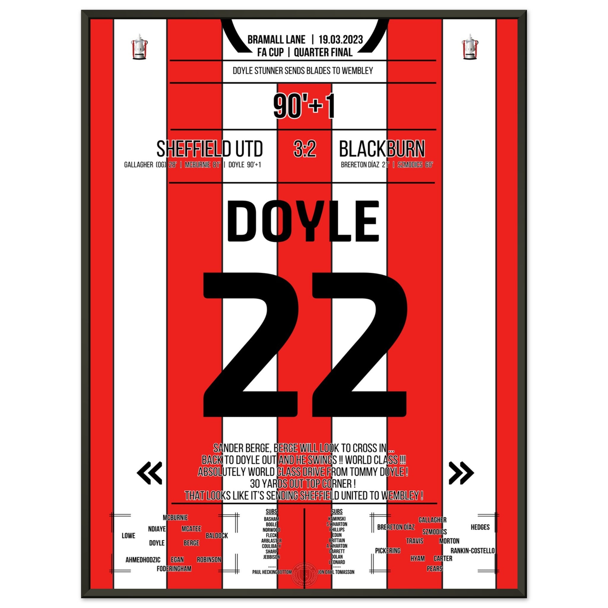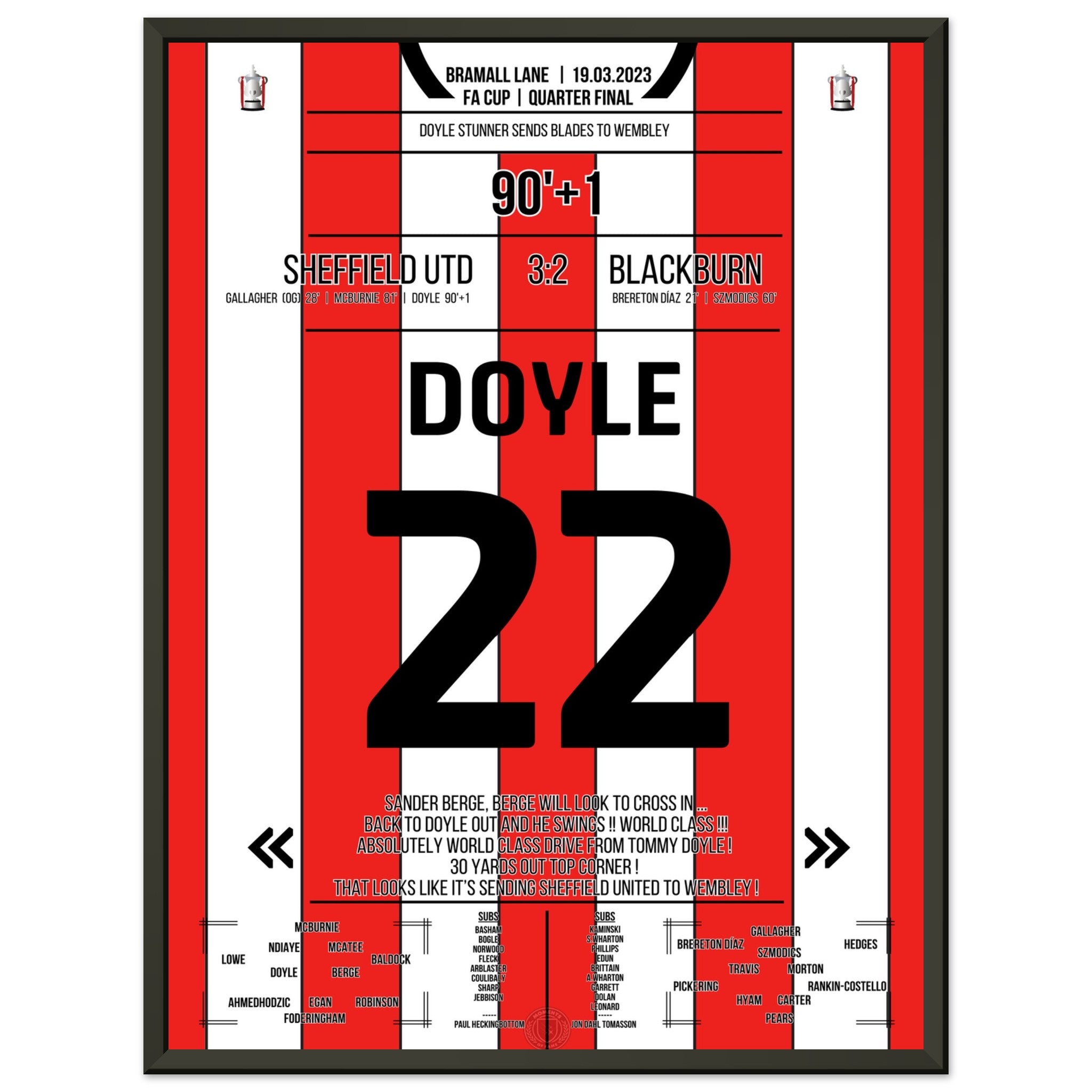 Hier ist unser Premium-Druck dieses unvergesslichen Fußballmoments für das ultimative Fan-Erlebnis. Auf schwerem, seidenmattem Papier gedruckt, glänzt das Kunstwerk mit intensiven Farben und subtilen Details.