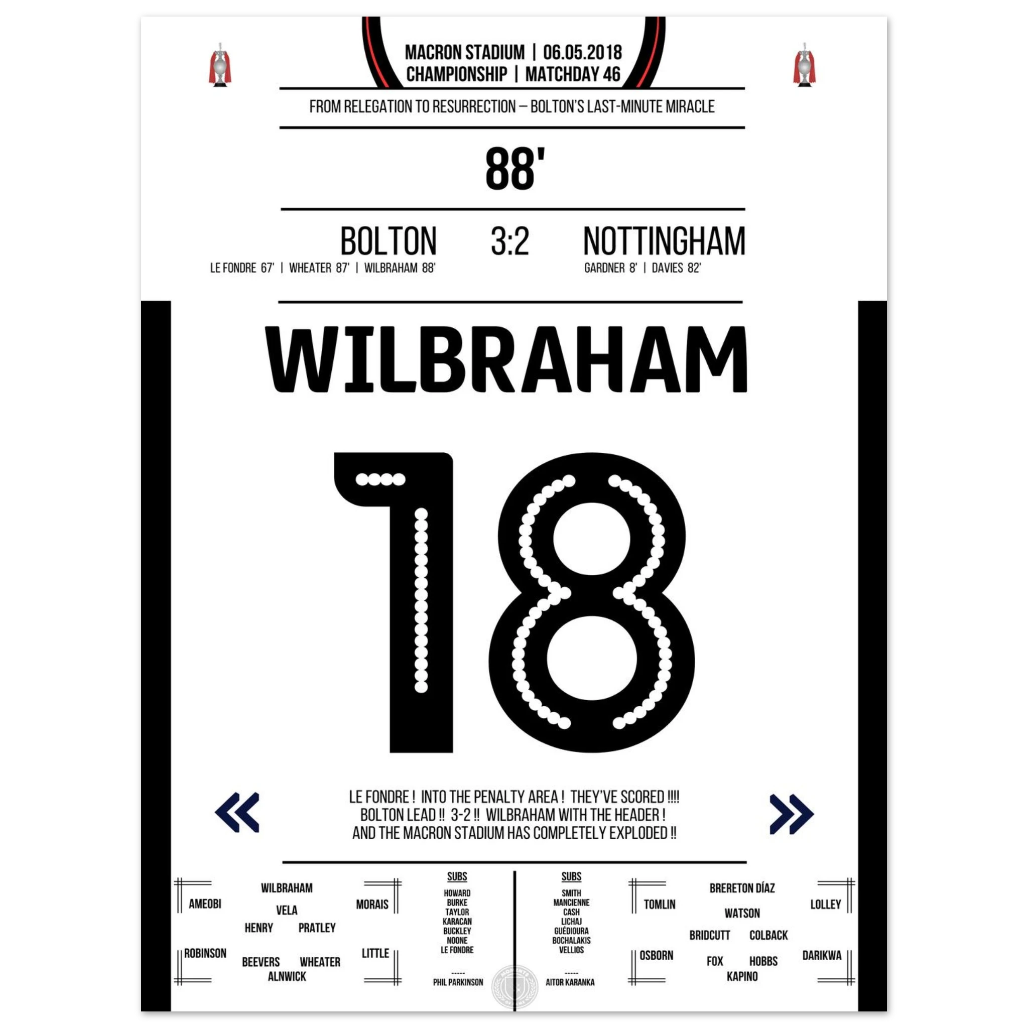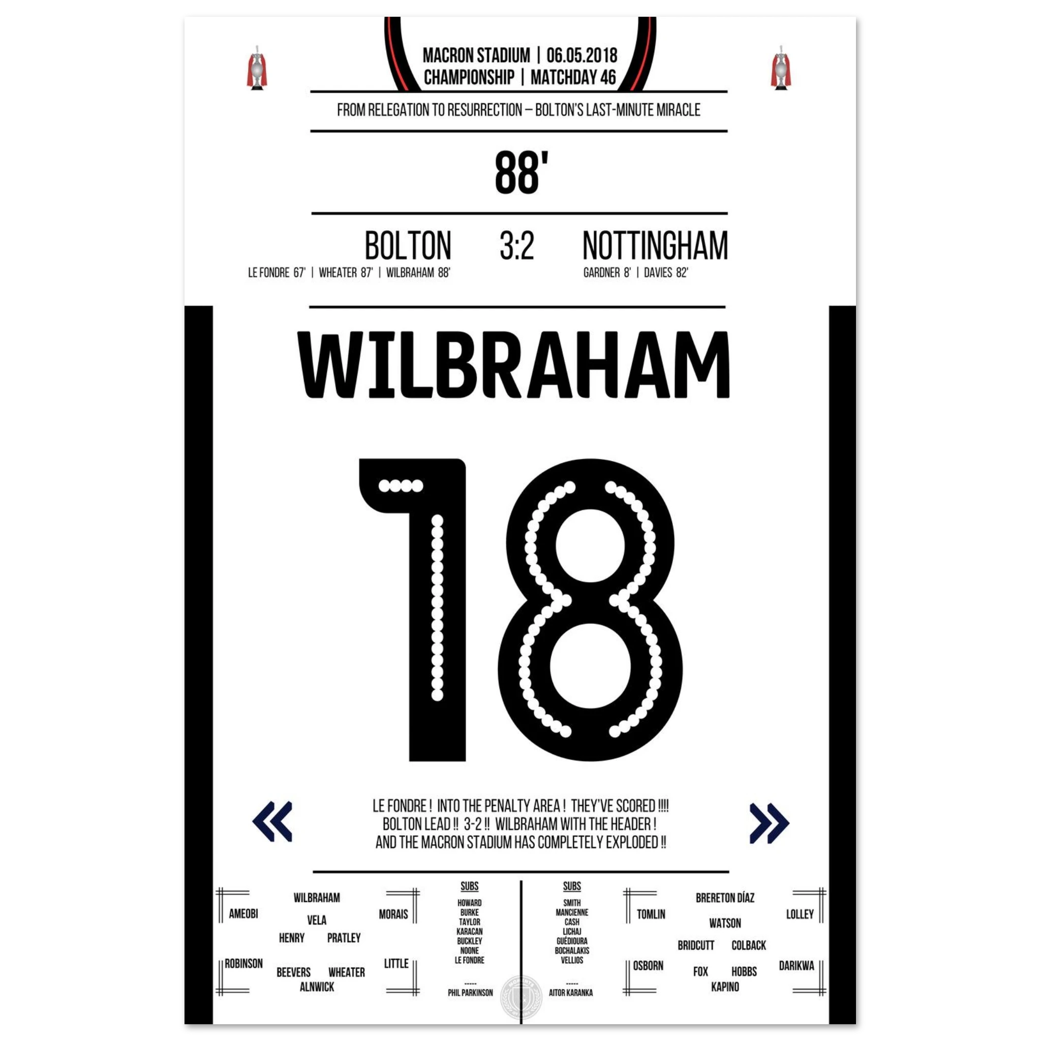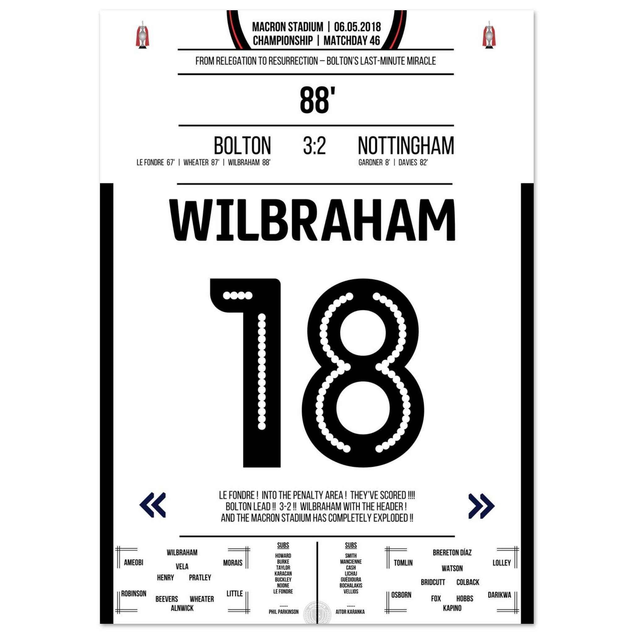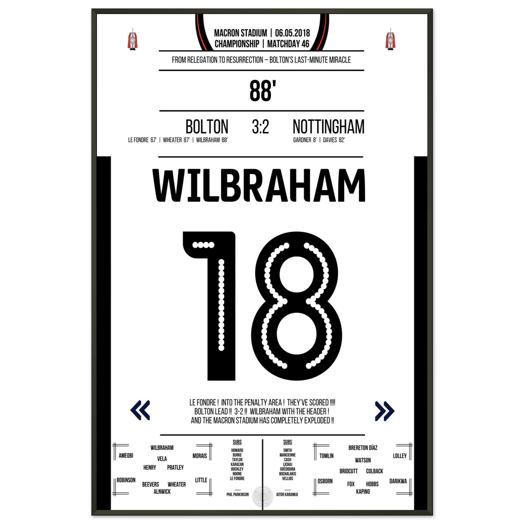 6. Mai 2018 – Bolton vs. Nottingham 3:2 – Wilbrahams Tor des Überlebens: