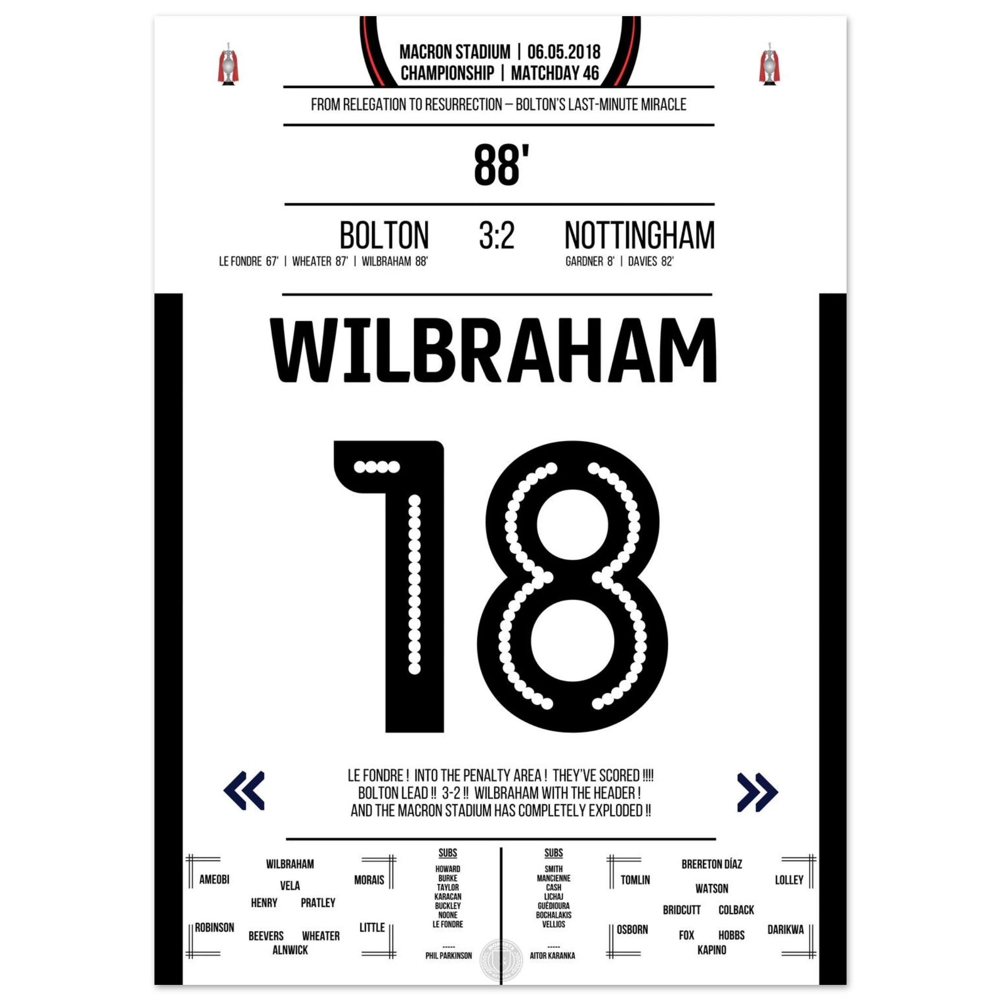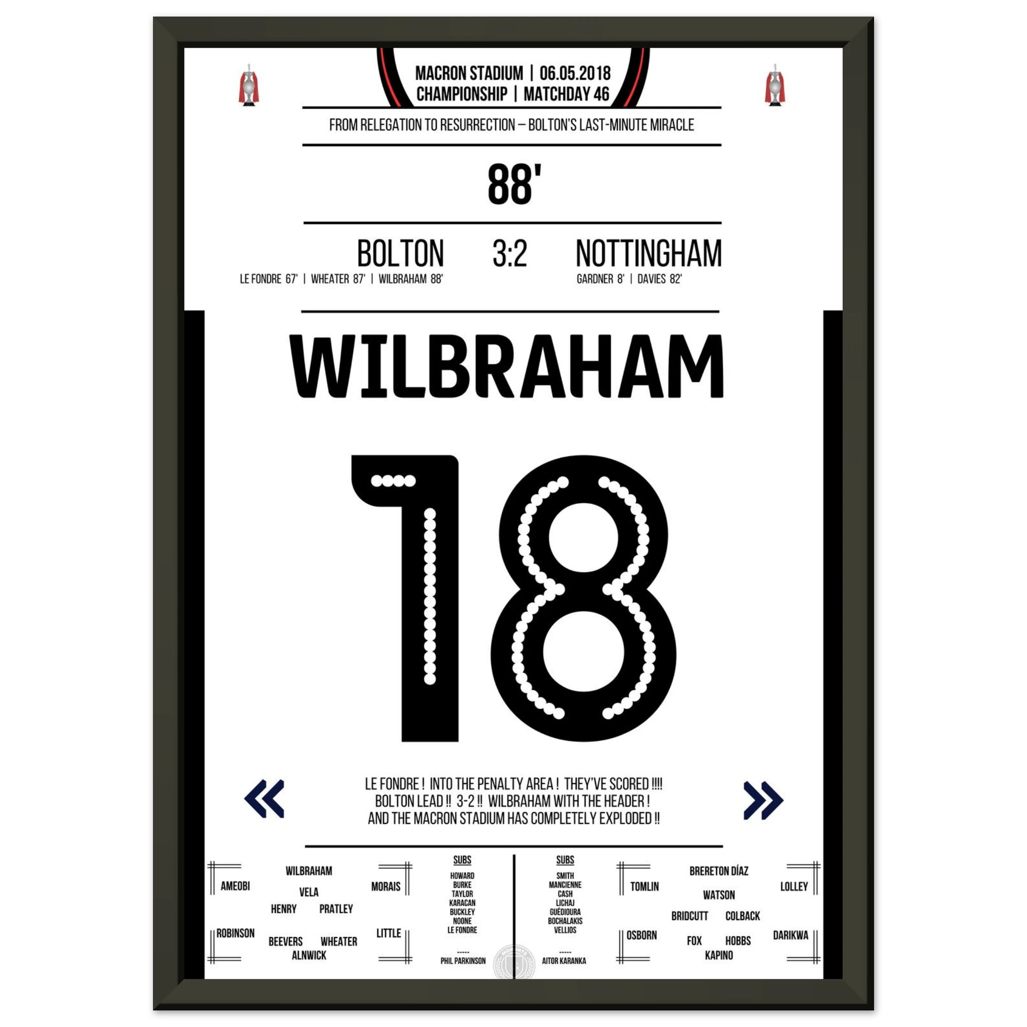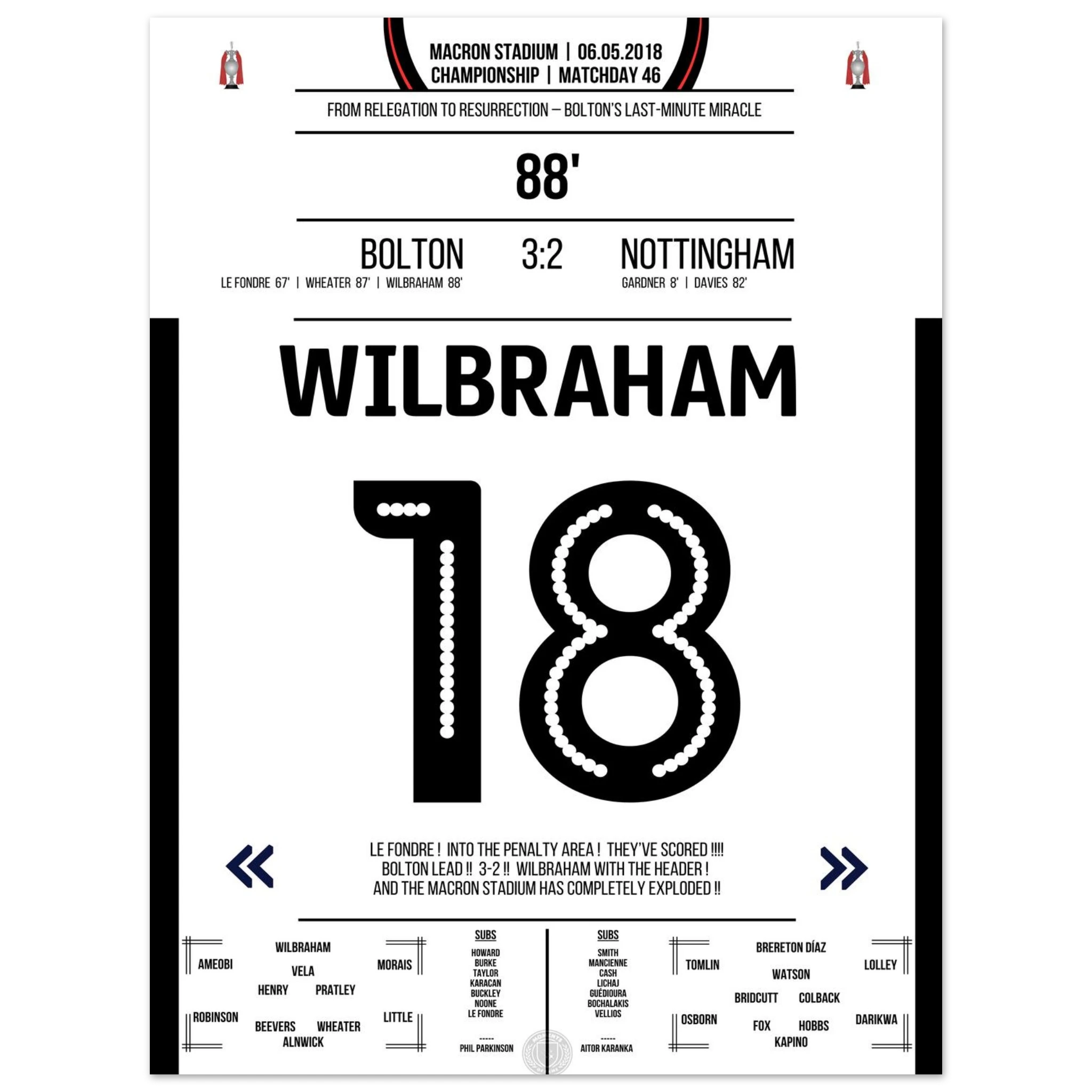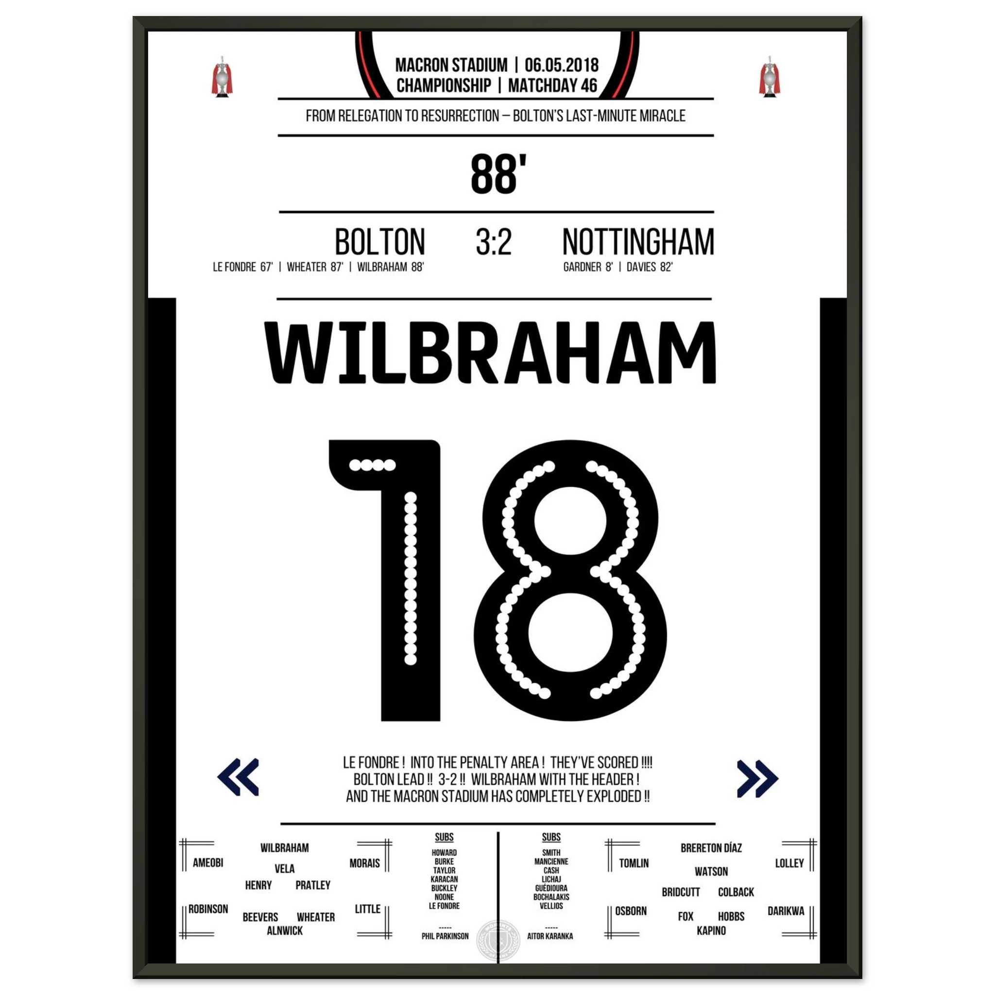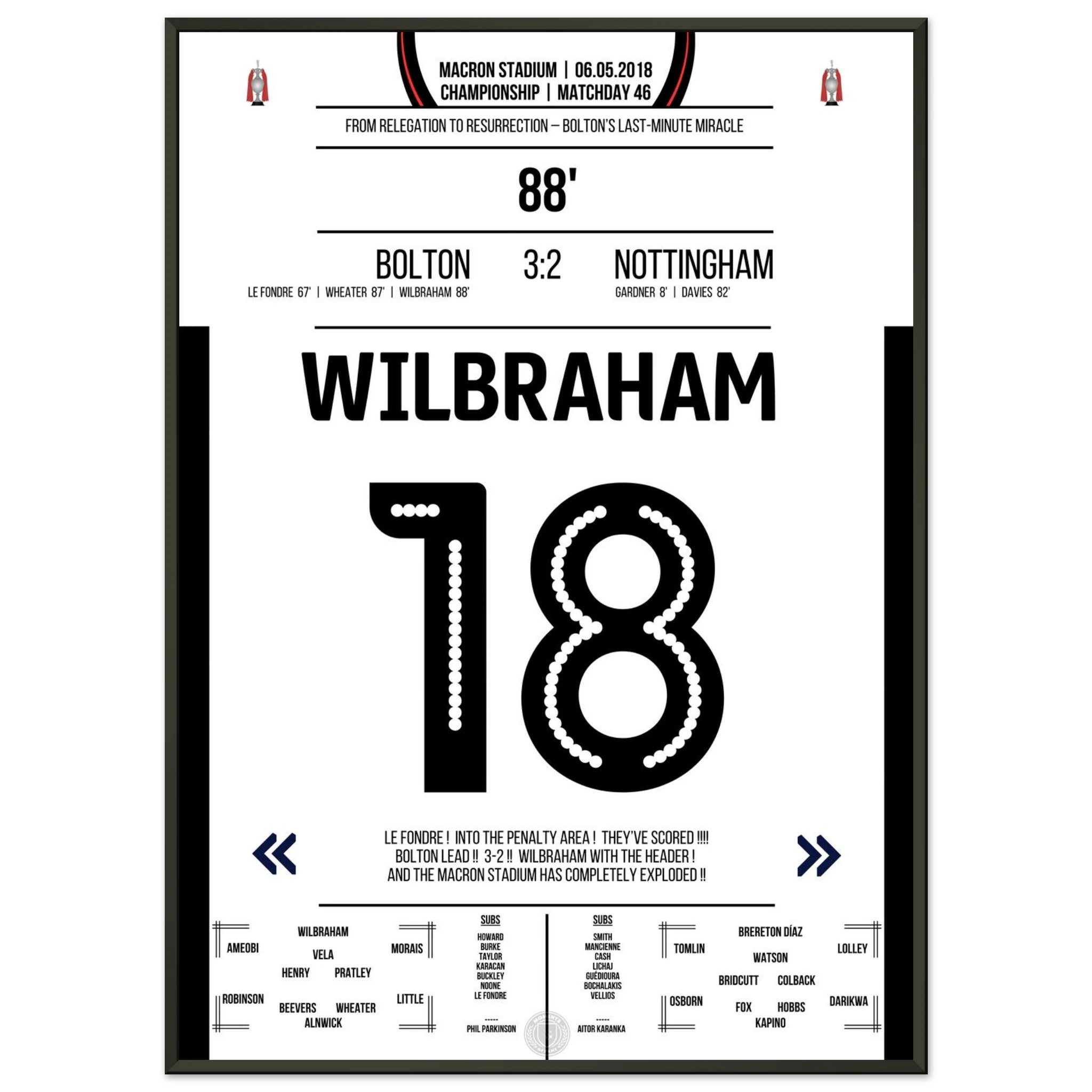 6. Mai 2018 – Bolton vs. Nottingham 3:2 – Wilbrahams Tor des Überlebens:
