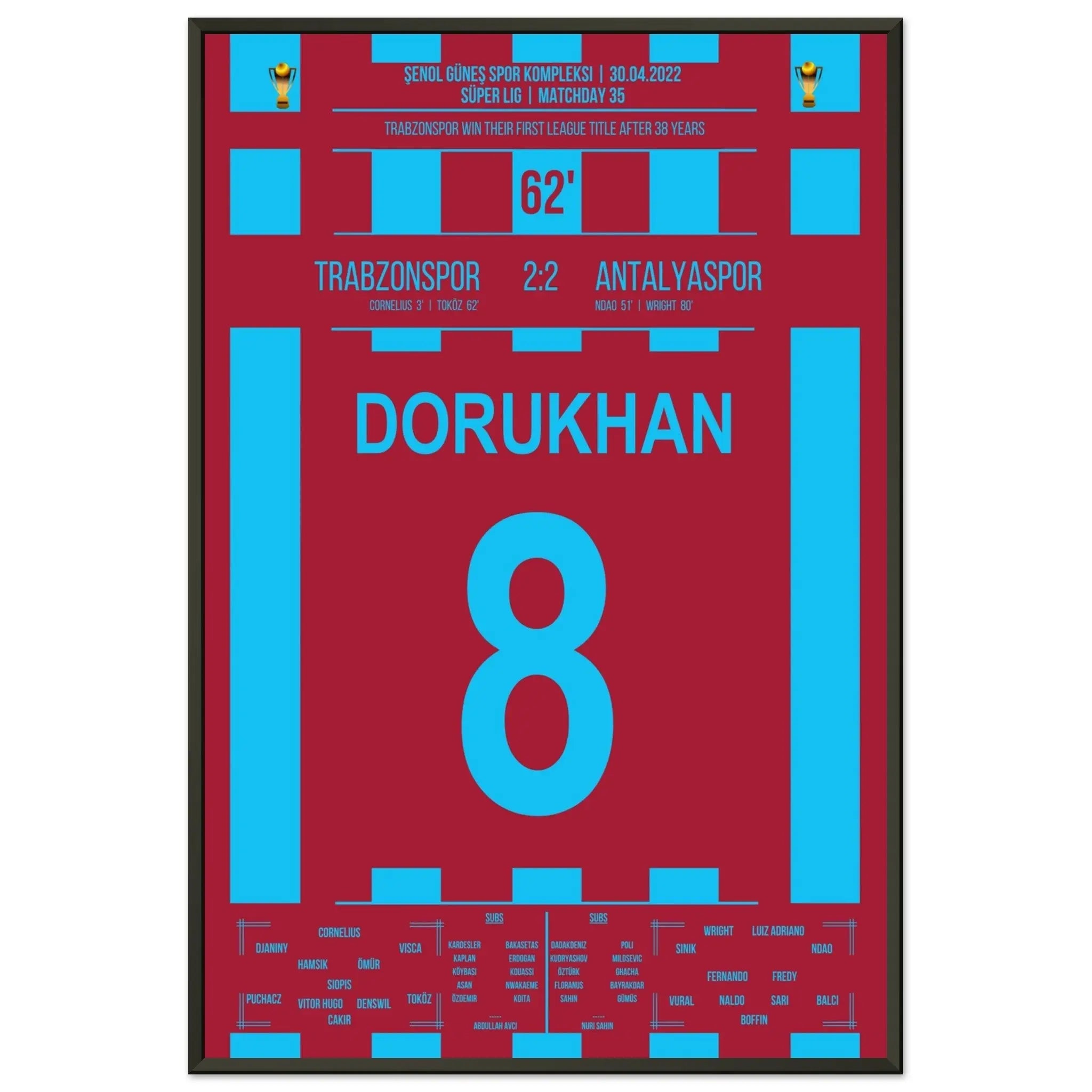 Hier kommt unser Premium-Druck dieses unvergesslichen Fußballmoments für das ultimative Fan-Erlebnis. Gedruckt auf schwerem, seidenmattem Premium-Papier, glänzt dieses Kunstwerk mit verstärkten Farben und einem subtilen Glanz, der jedes Detail zum Vorschein bringt.