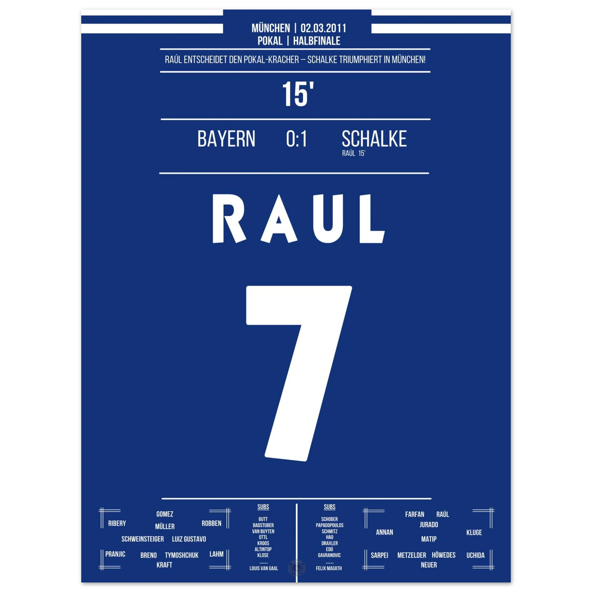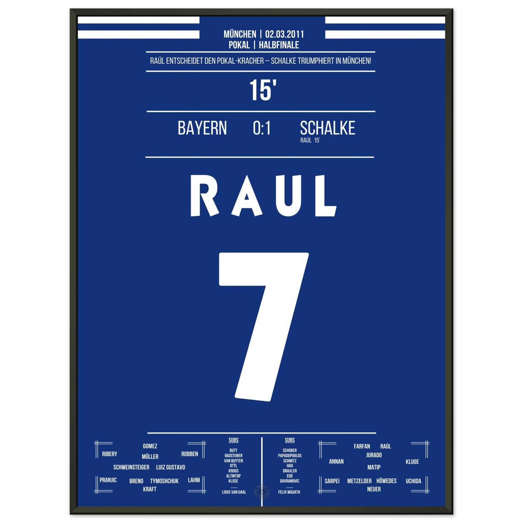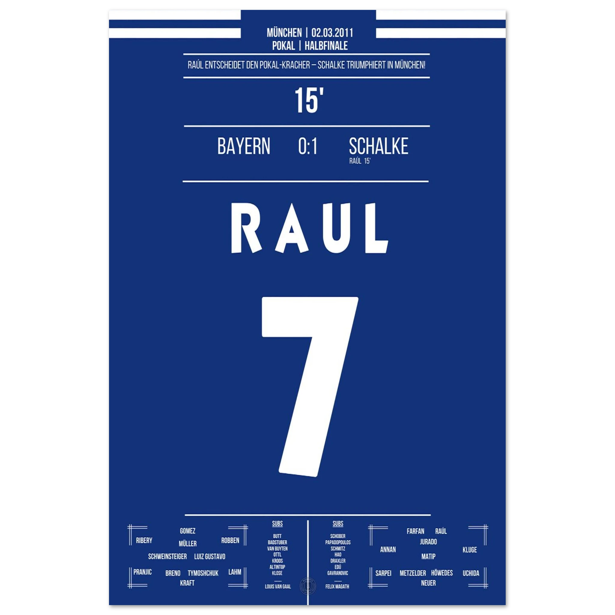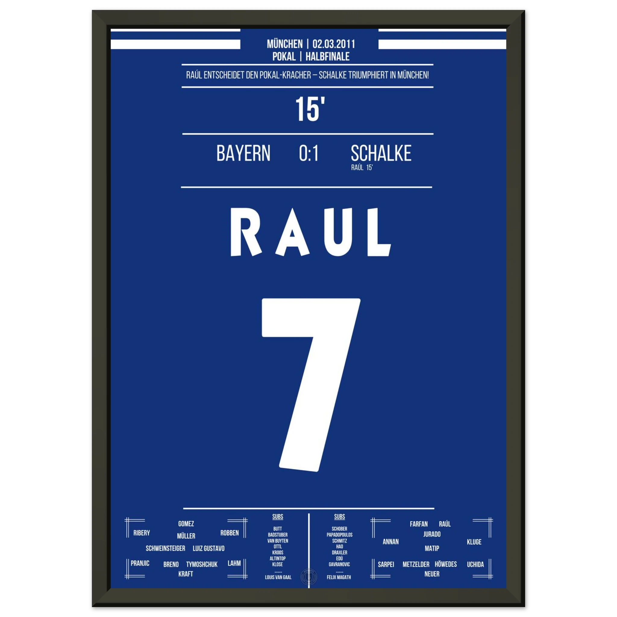 Im Pokal-Halbfinale in München schlägt die Stunde von Raúl. Der spanische Weltstar nutzt eine Unaufmerksamkeit der Bayern und trifft in der 15. Minute eiskalt – das einzige Tor des Abends. Schalke wirft den Favoriten raus und steht im Endspiel!