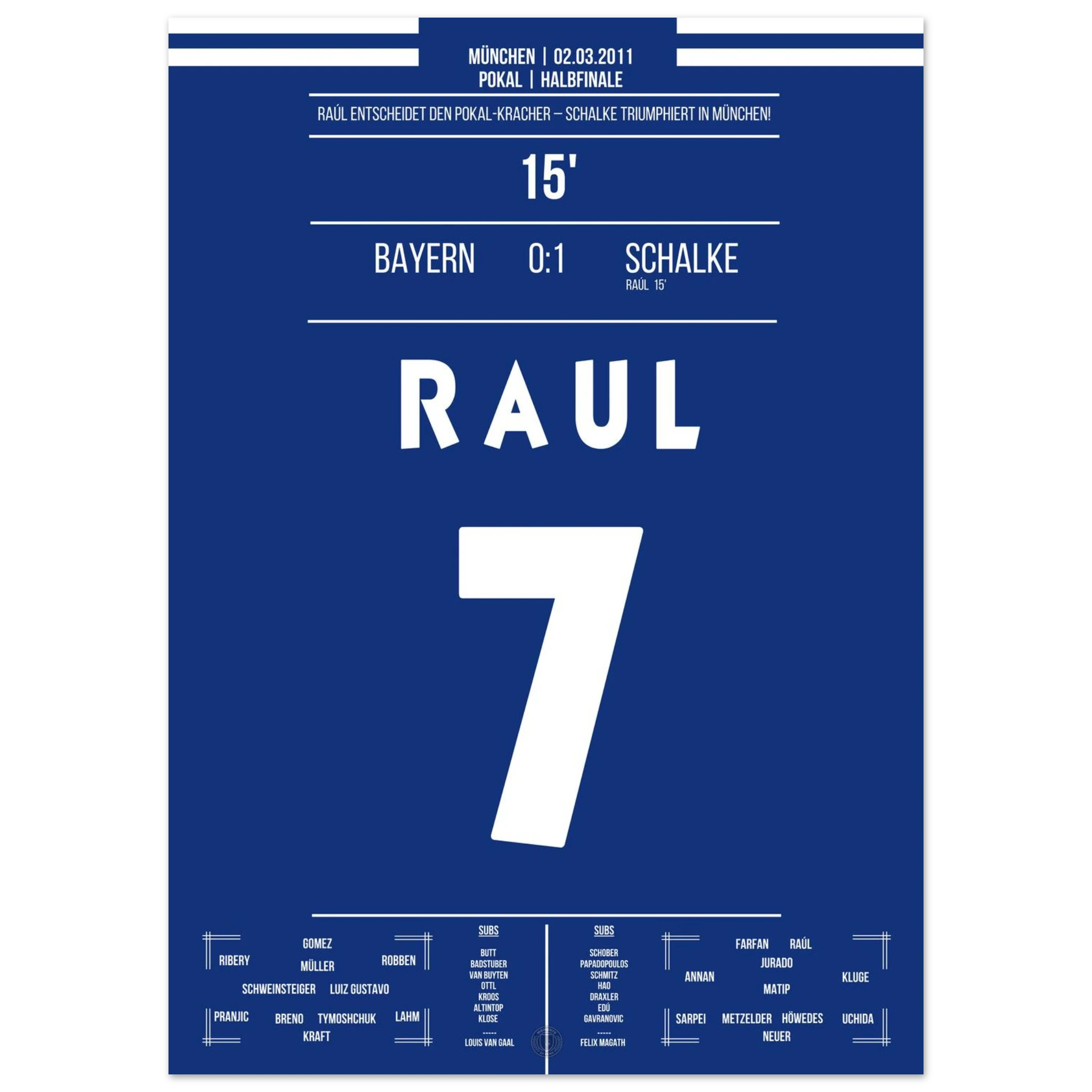 Ein Poster für die Ewigkeit – Raúl in Königsblau, Bayern am Boden.