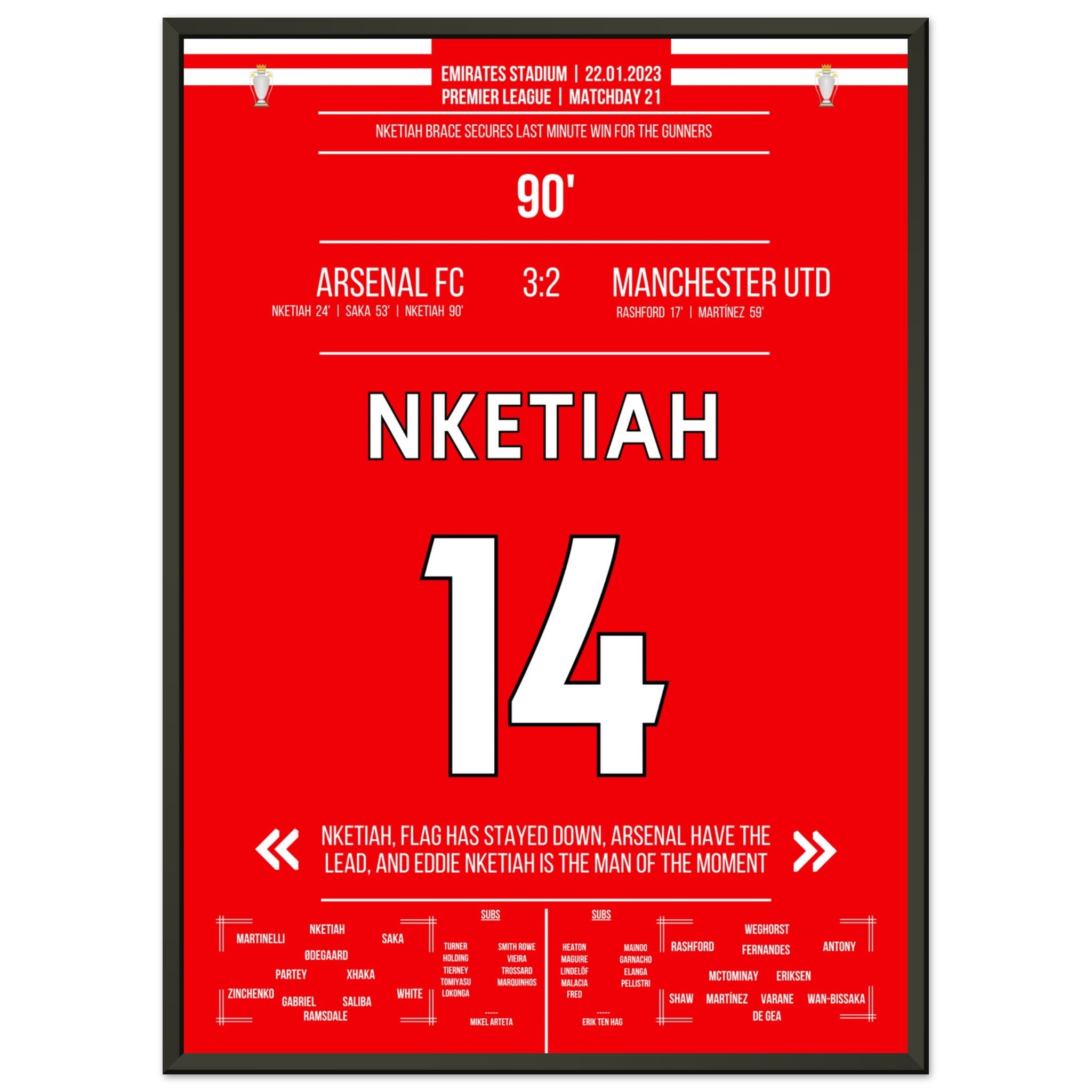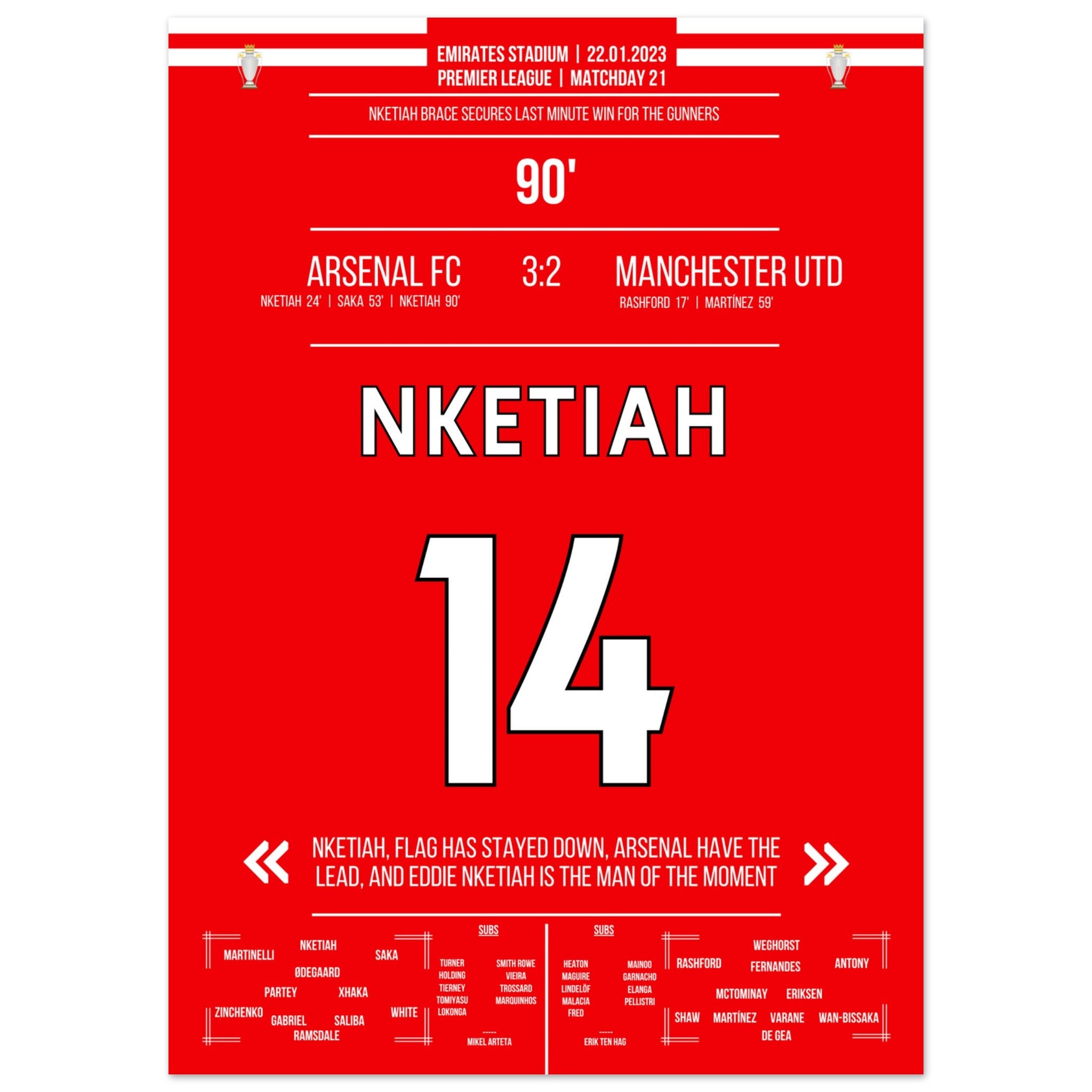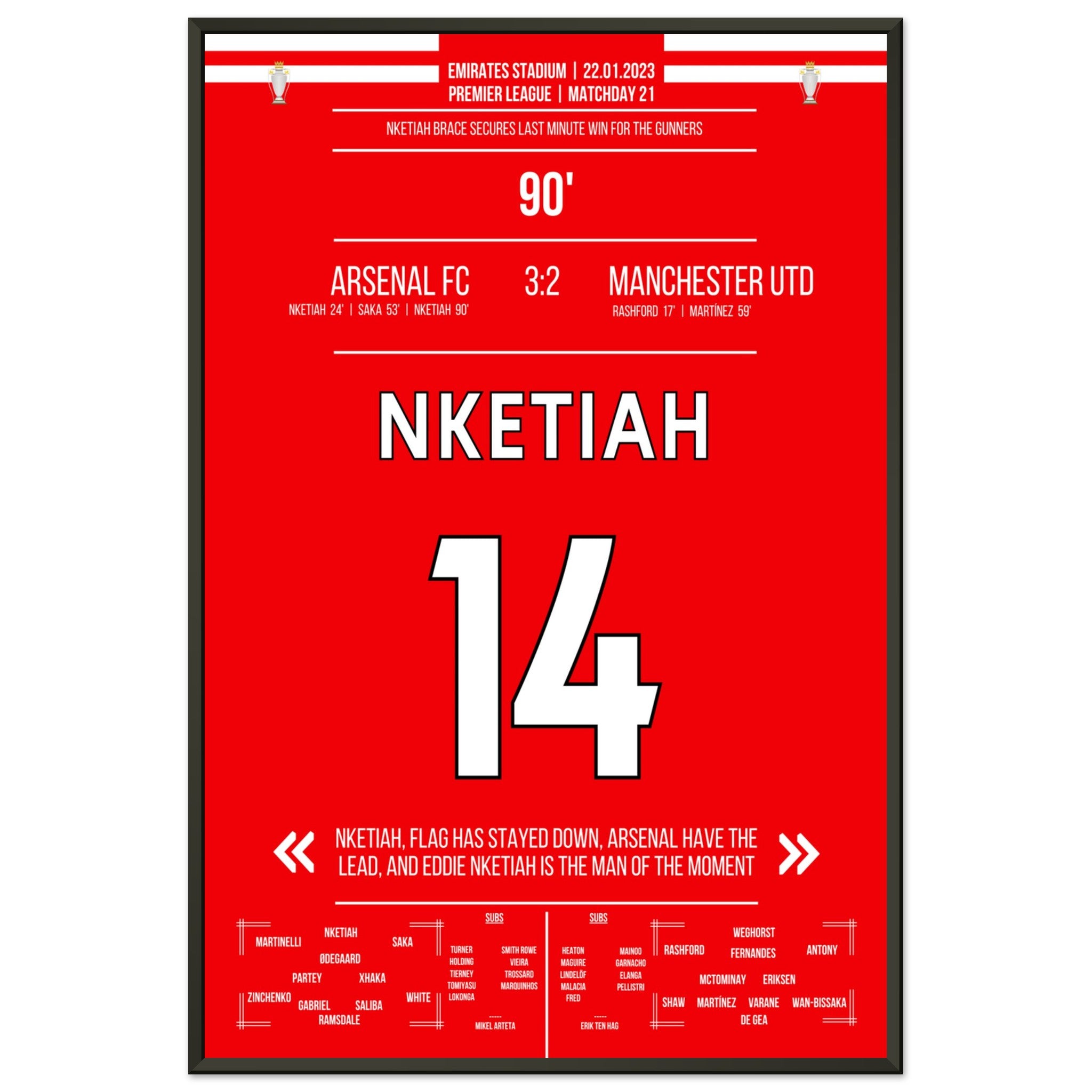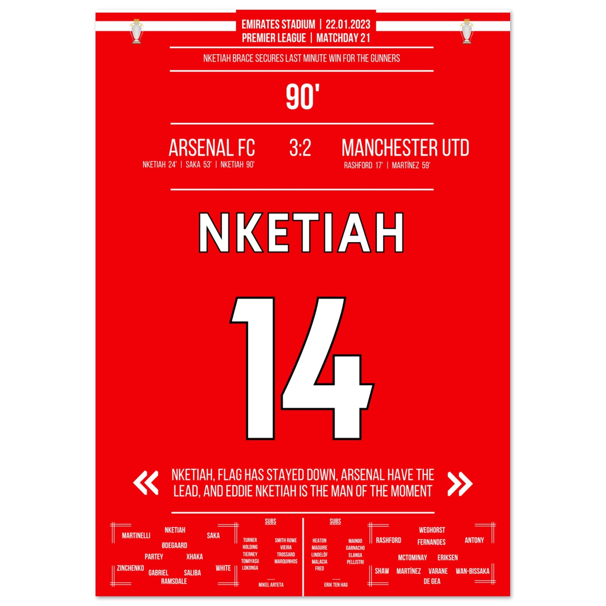 Nketiah scores the last-minute winner against Man Utd.