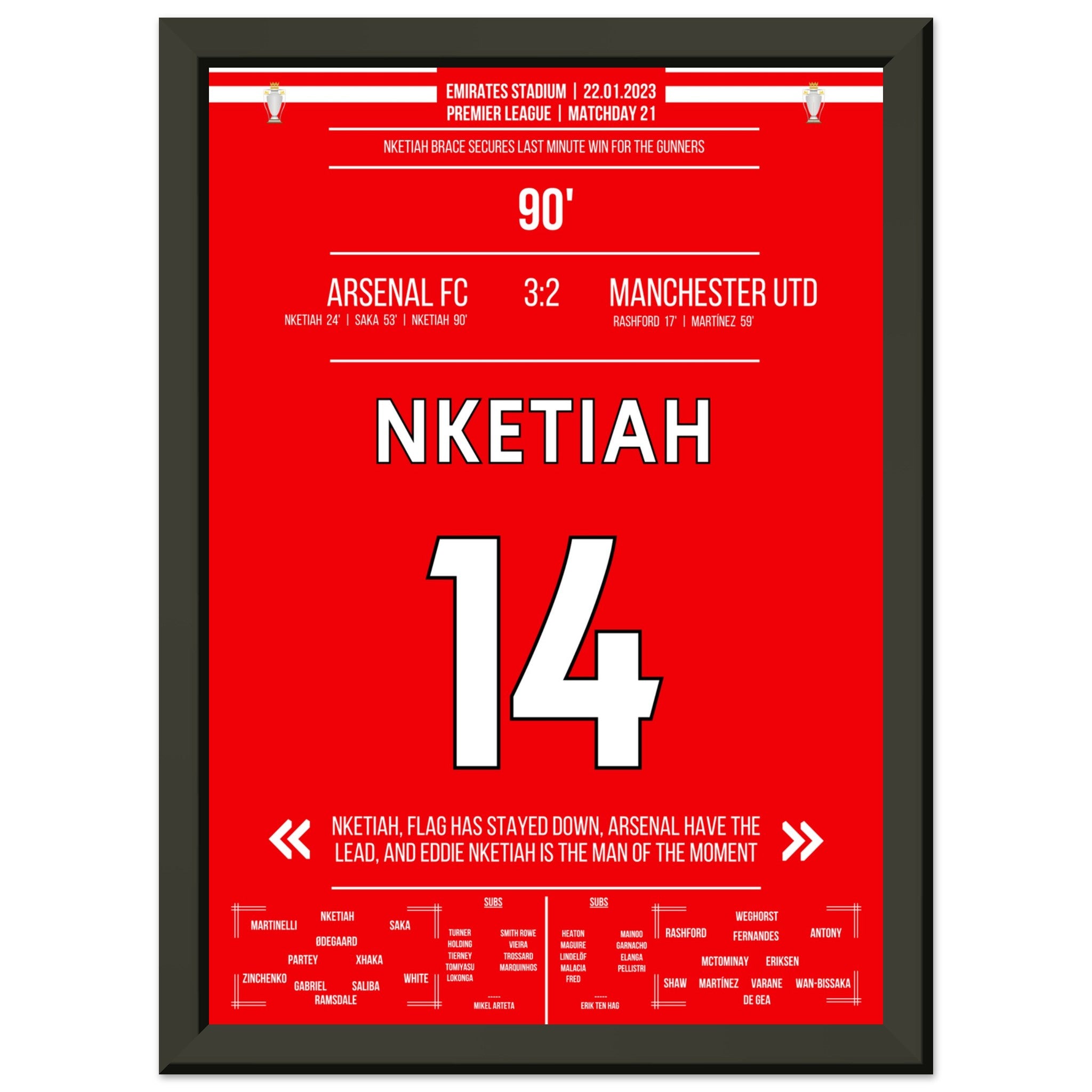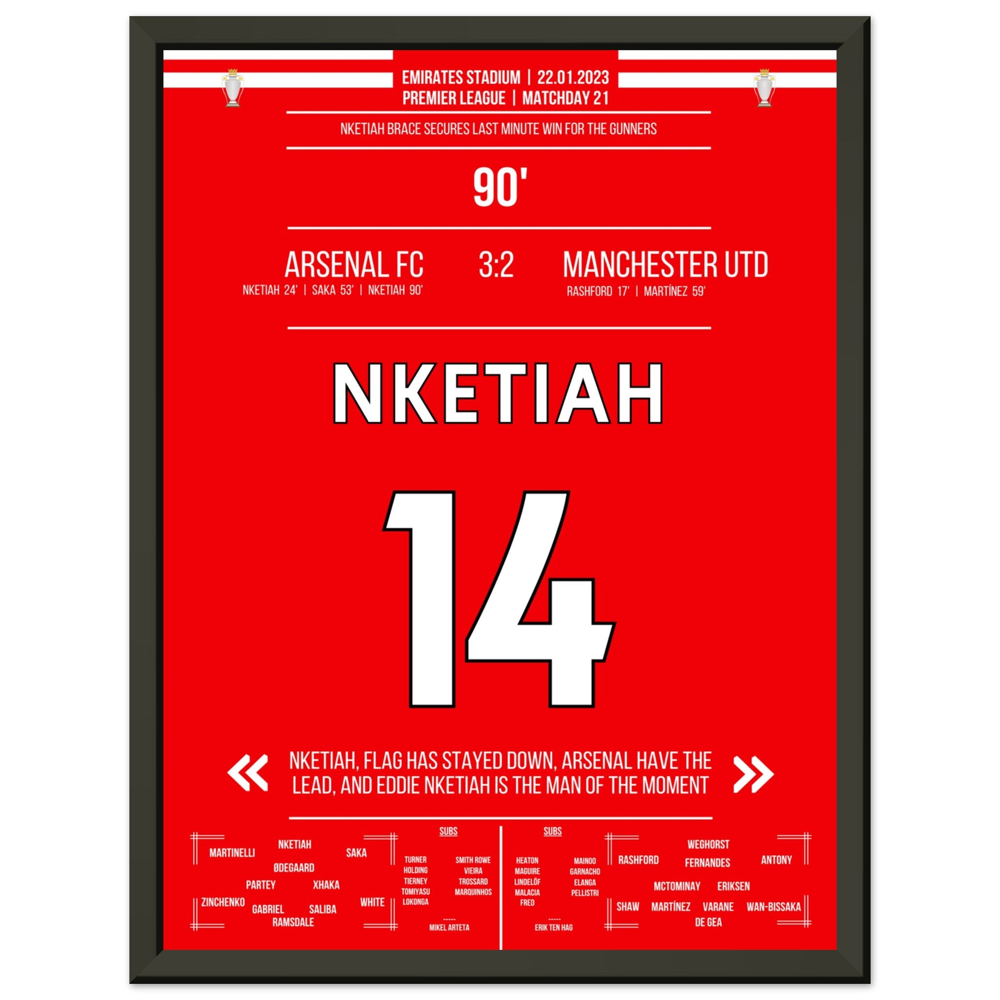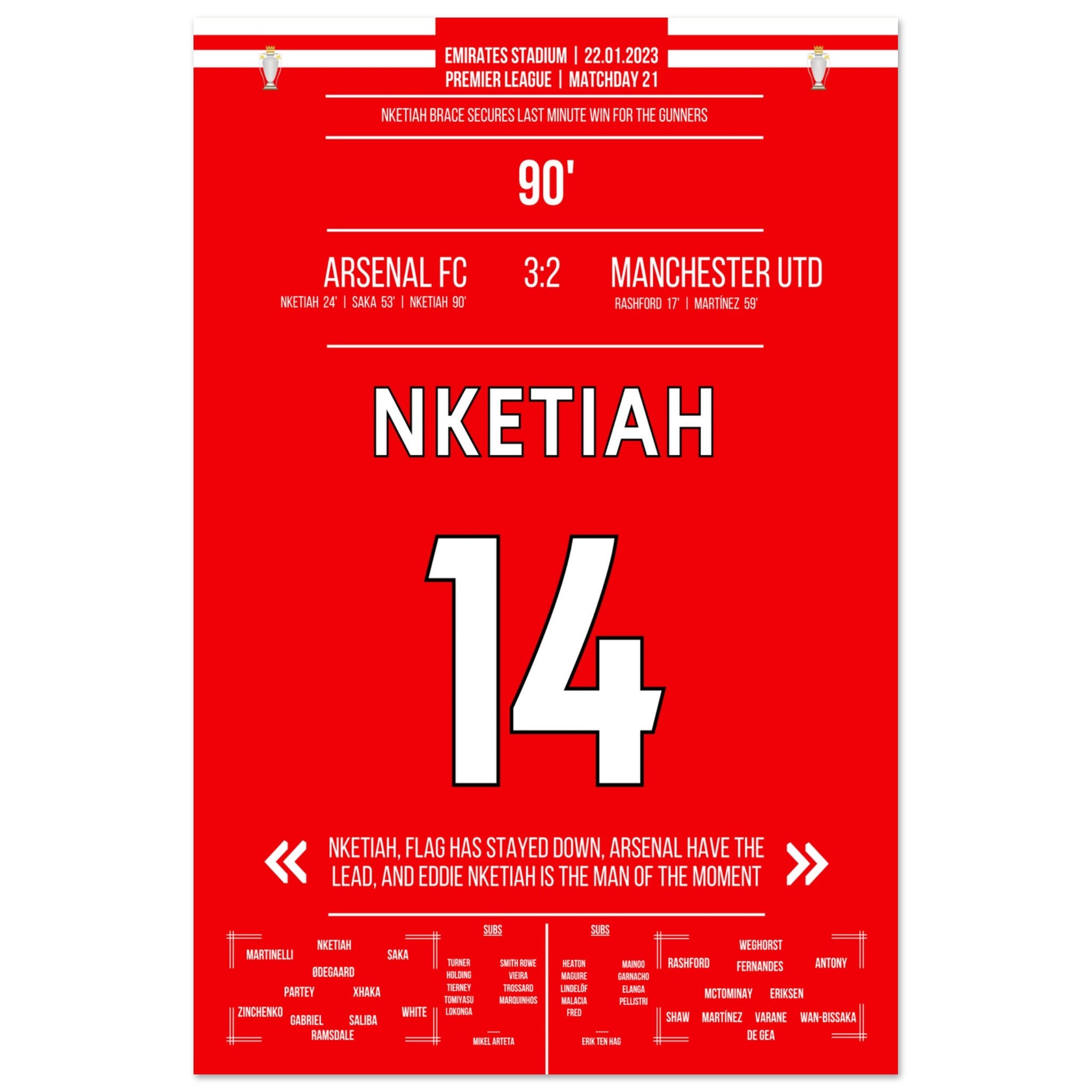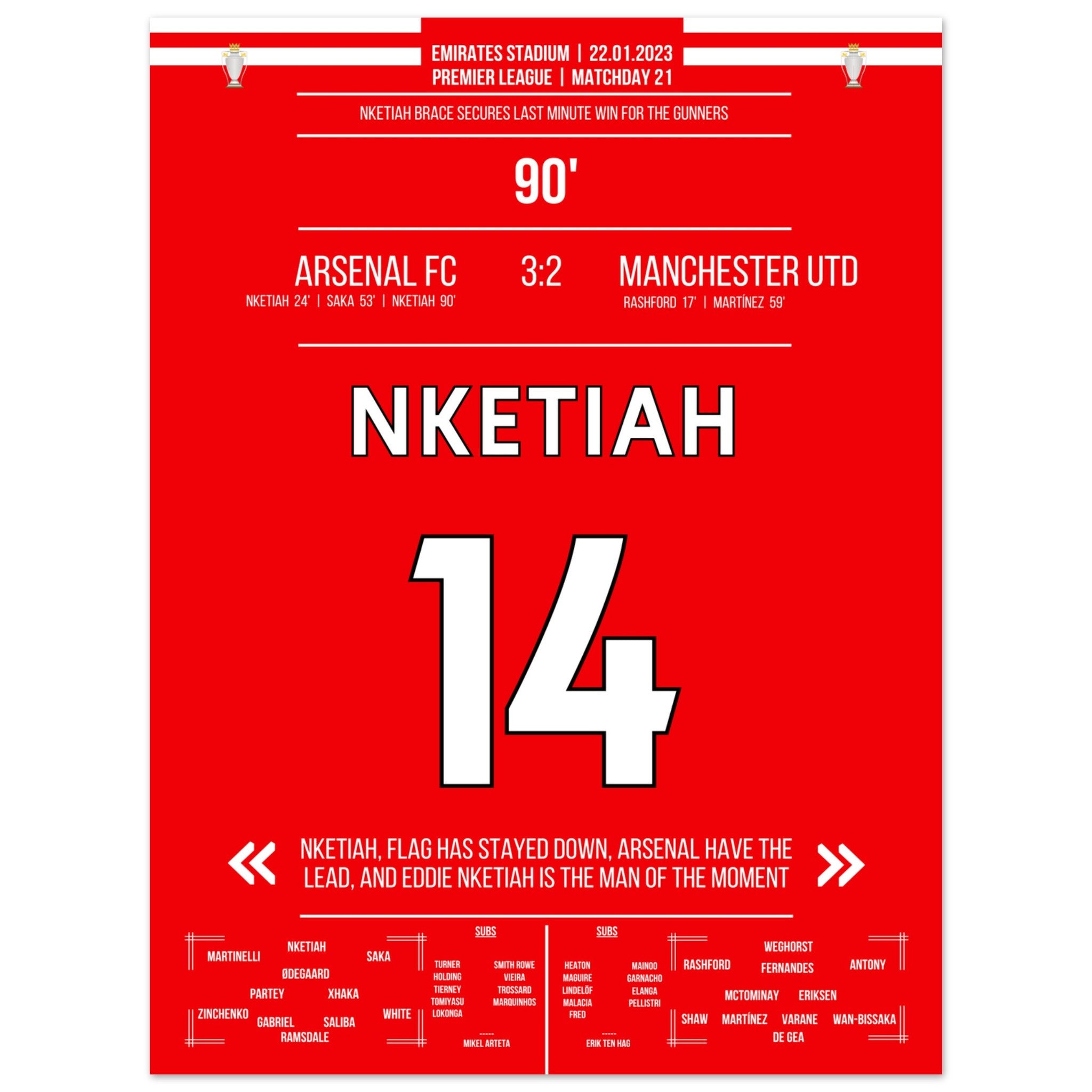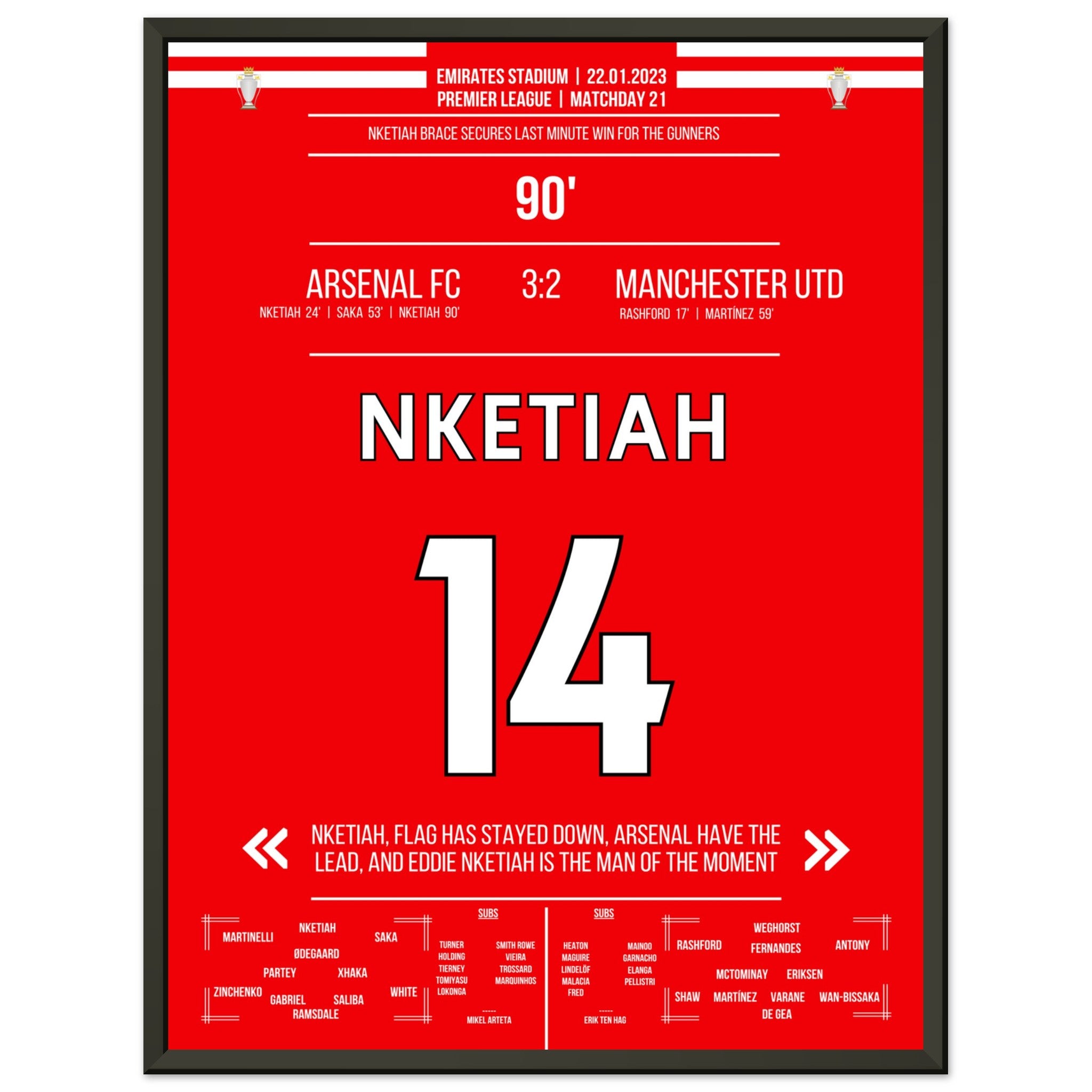 Nketiah scores the last-minute winner against Man Utd.