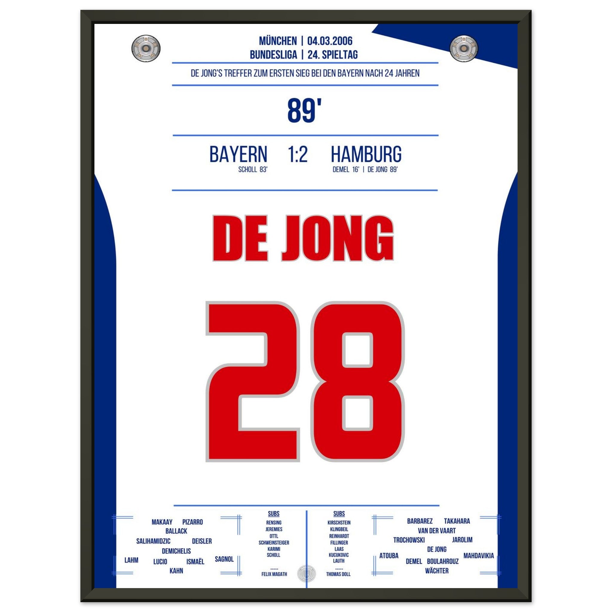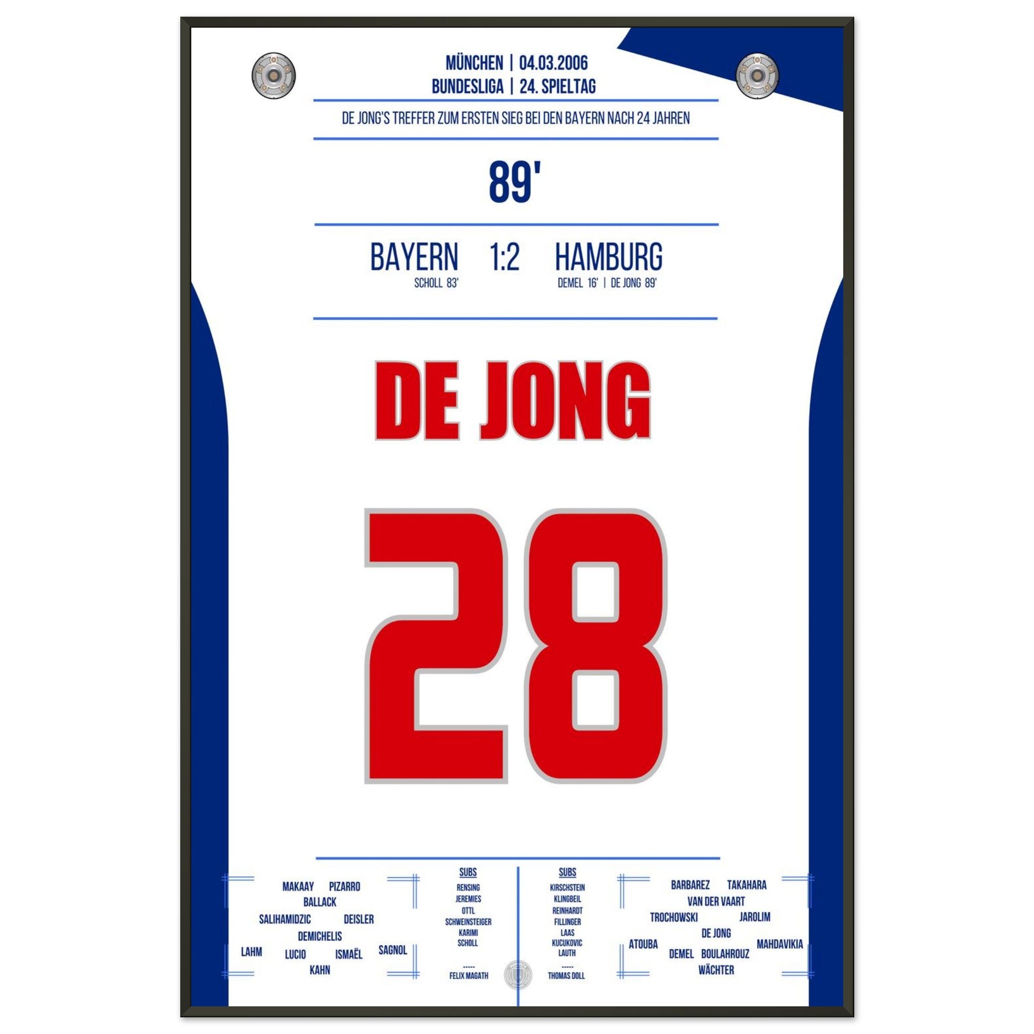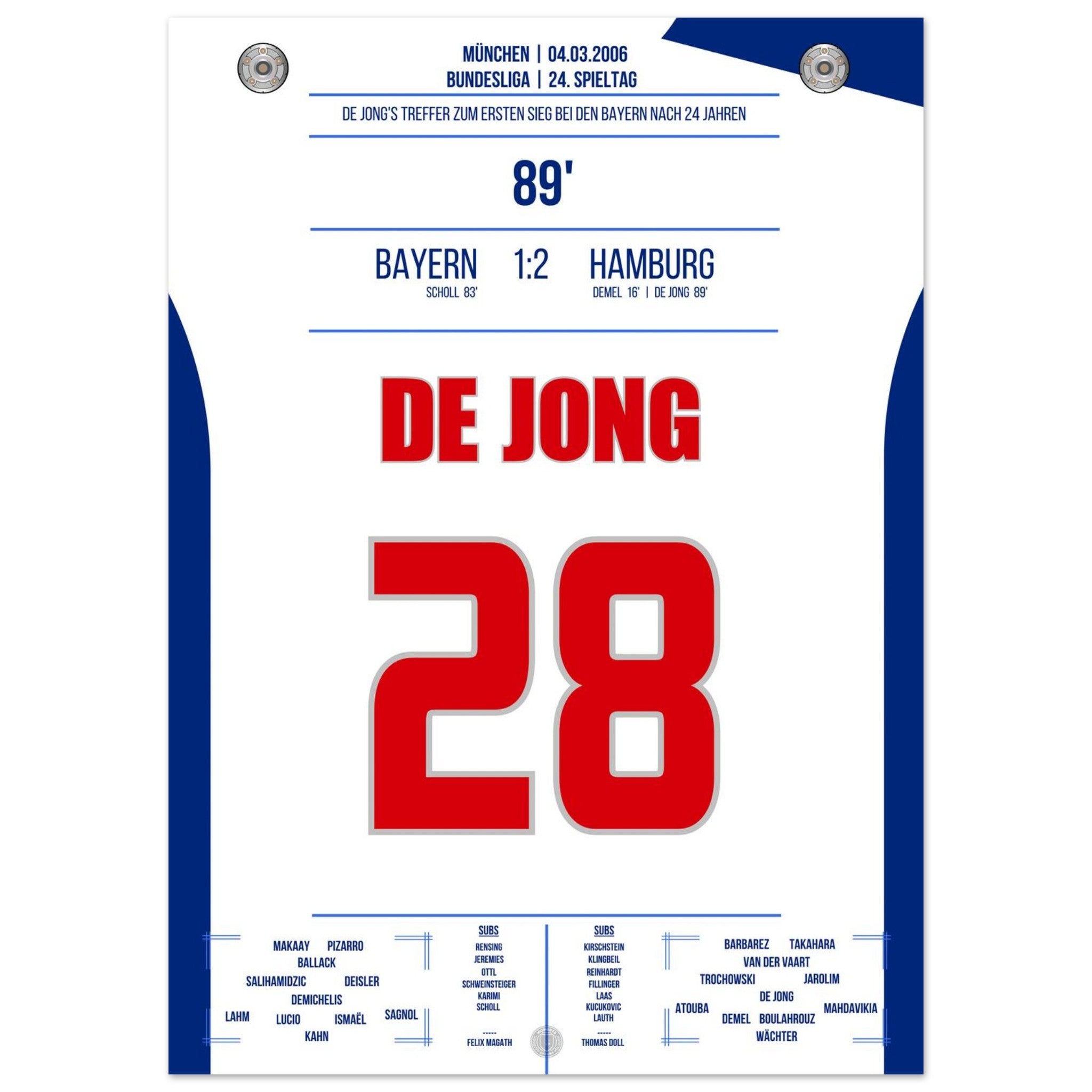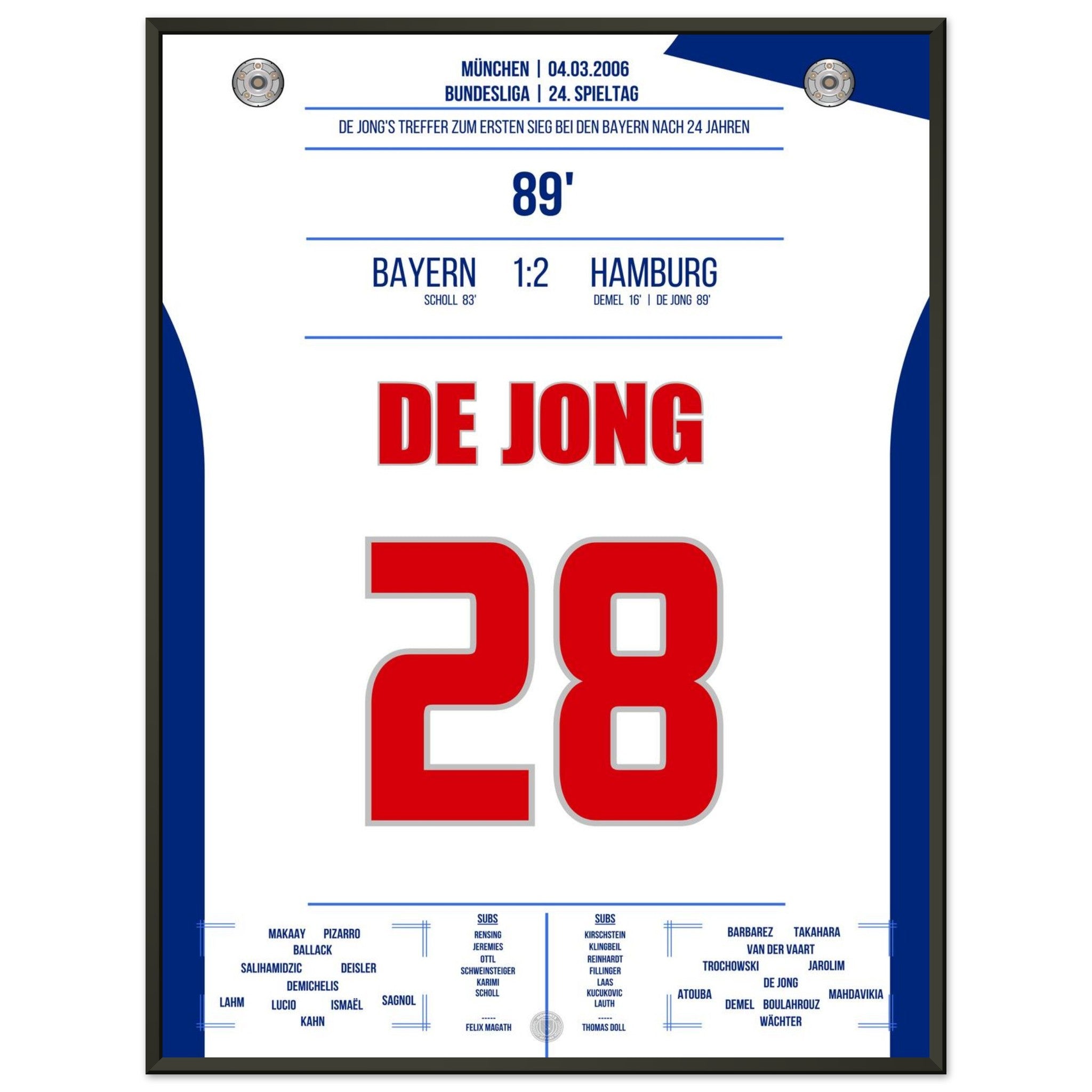 Vendor:Moments Of FameDe Jong's goal for the first Hamburg victory against <tc>Bayern</tc> after 24 years in 2006