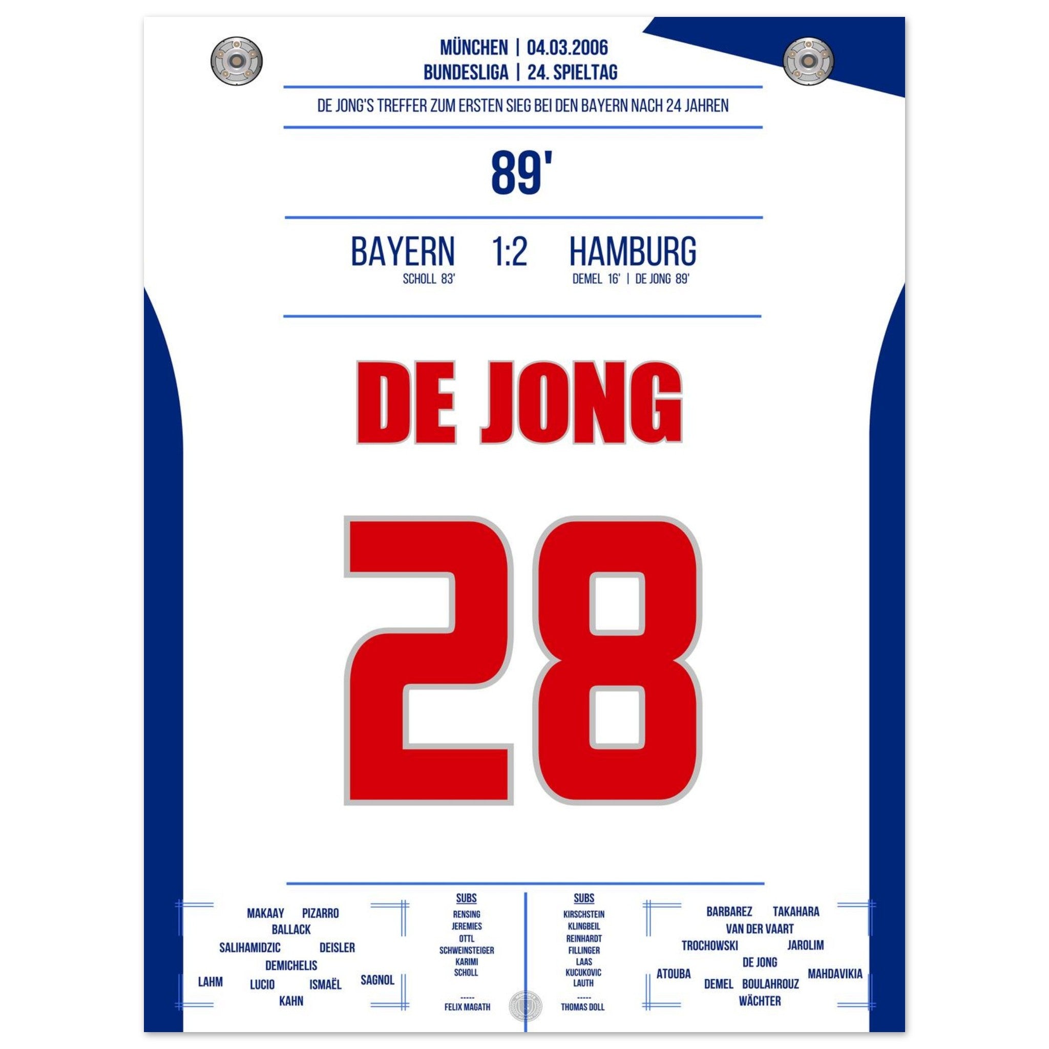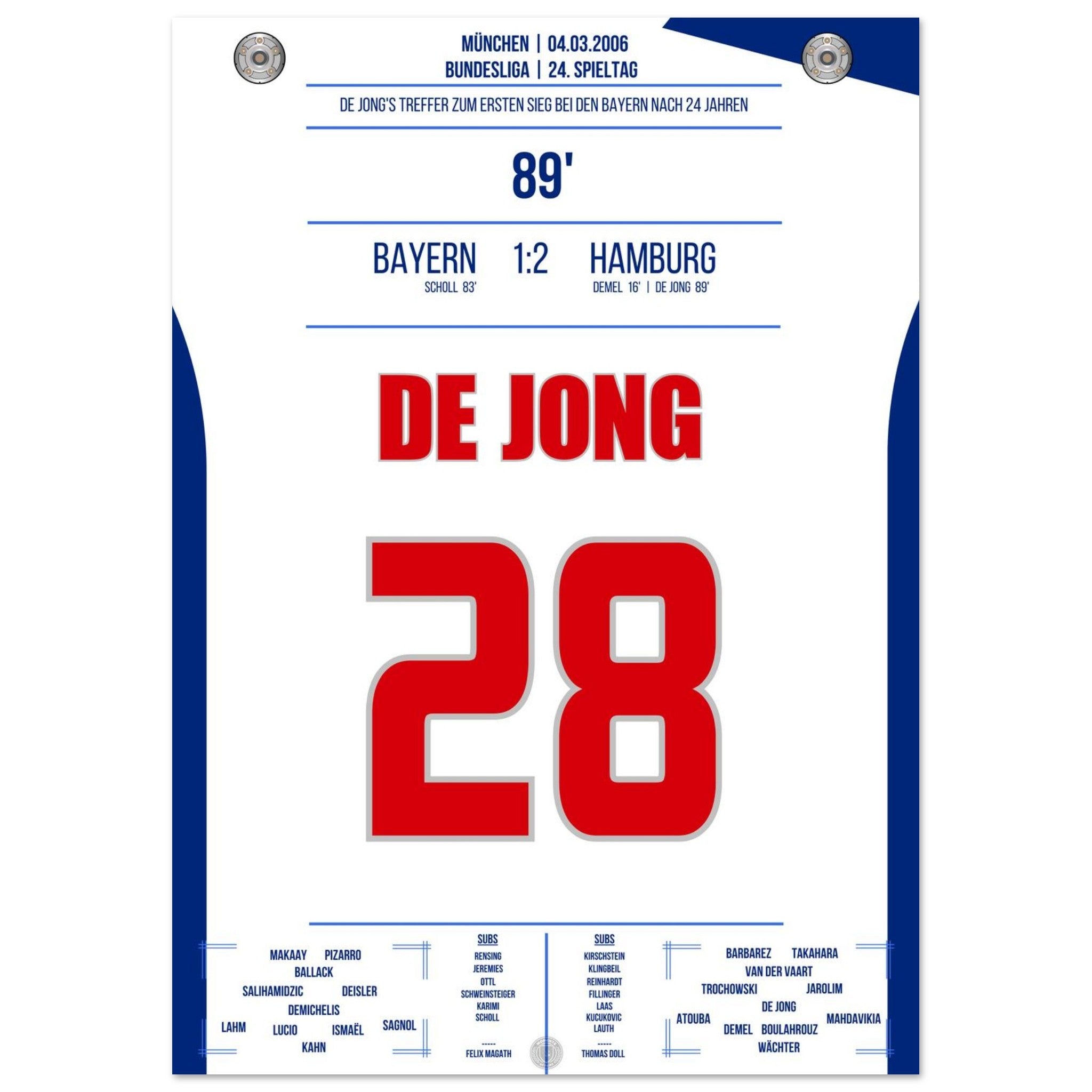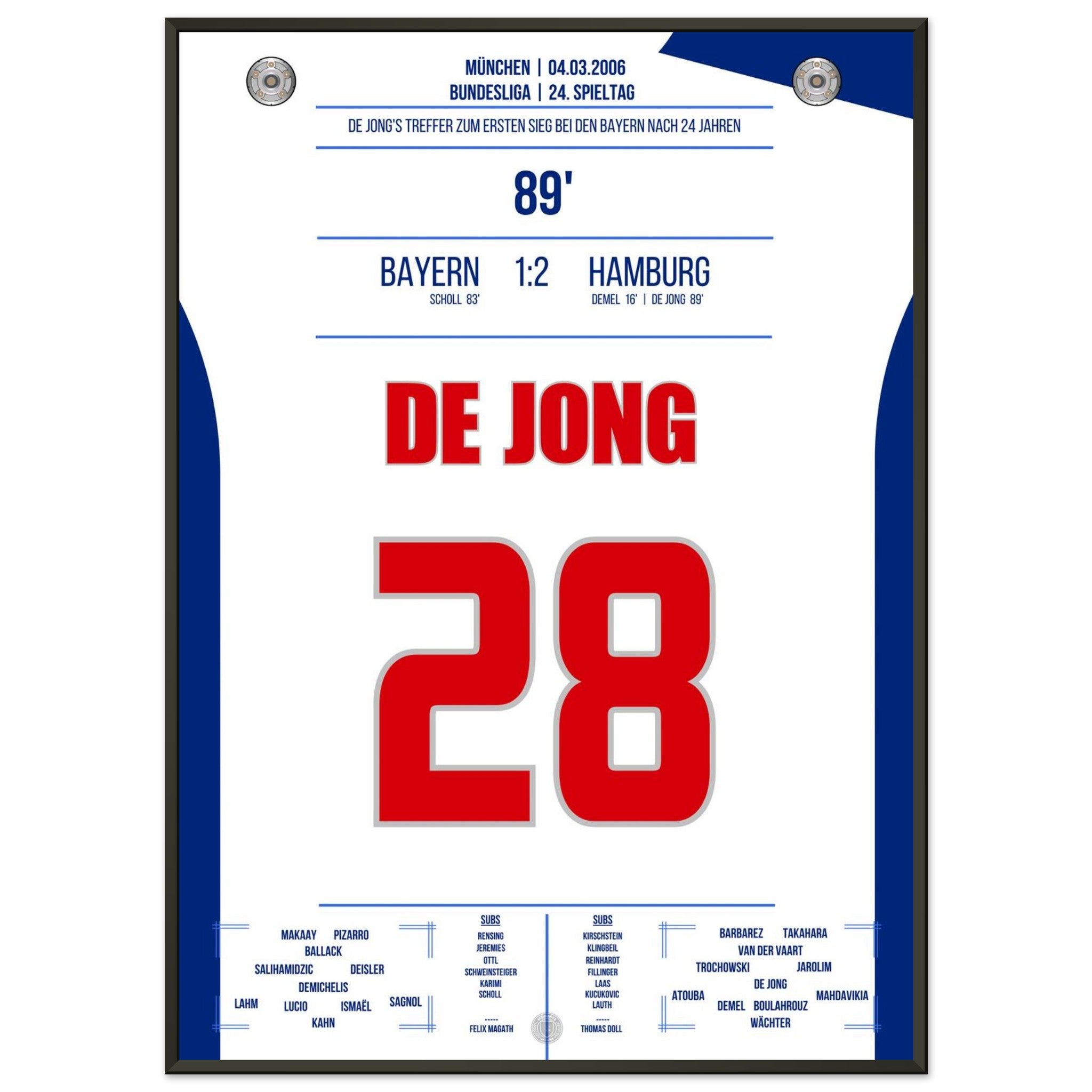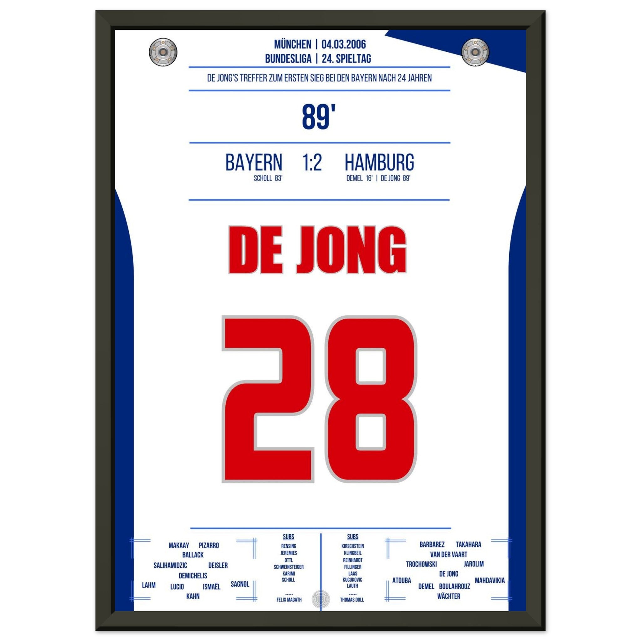 Vendor:Moments Of FameDe Jong's goal for the first Hamburg victory against <tc>Bayern</tc> after 24 years in 2006