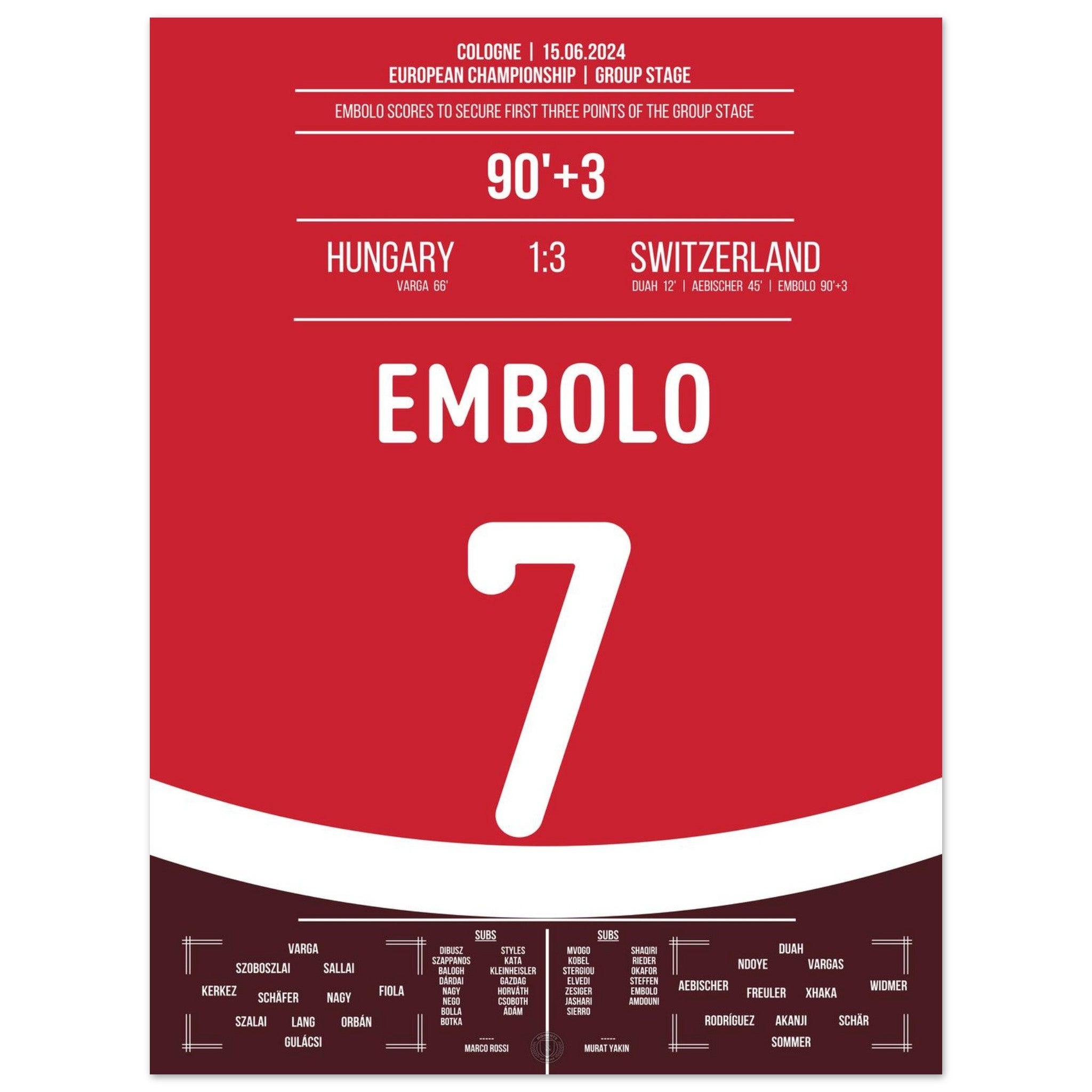 Embolo seals the deal and secures the first victory at the 2024 European Championship.