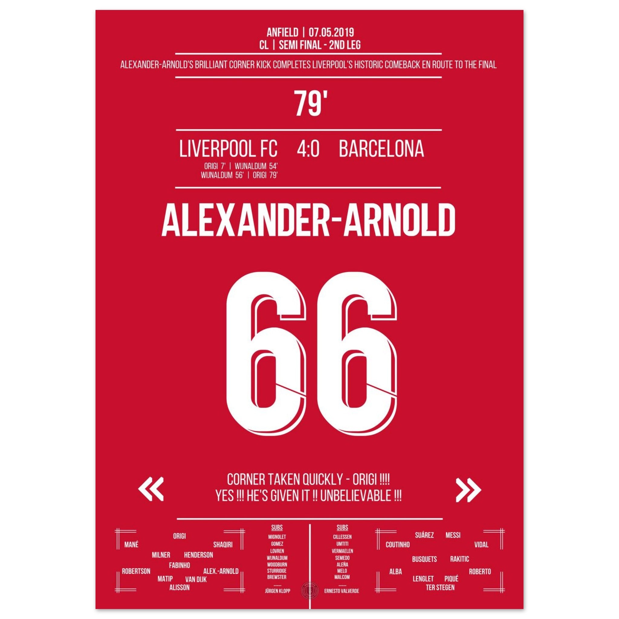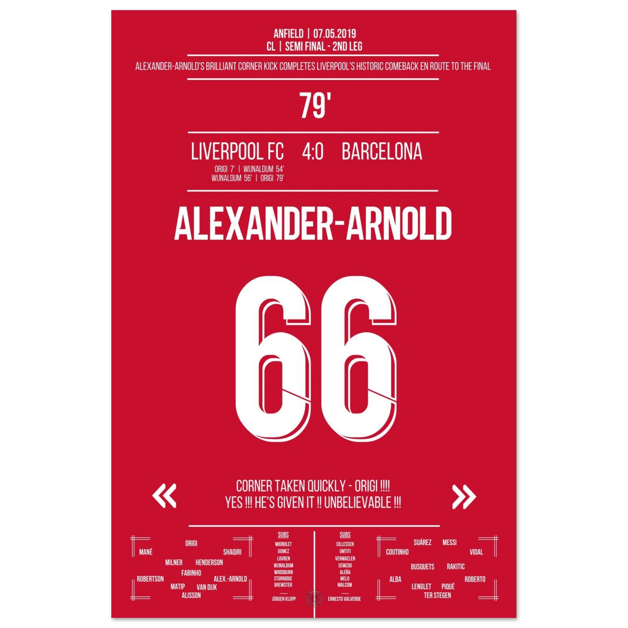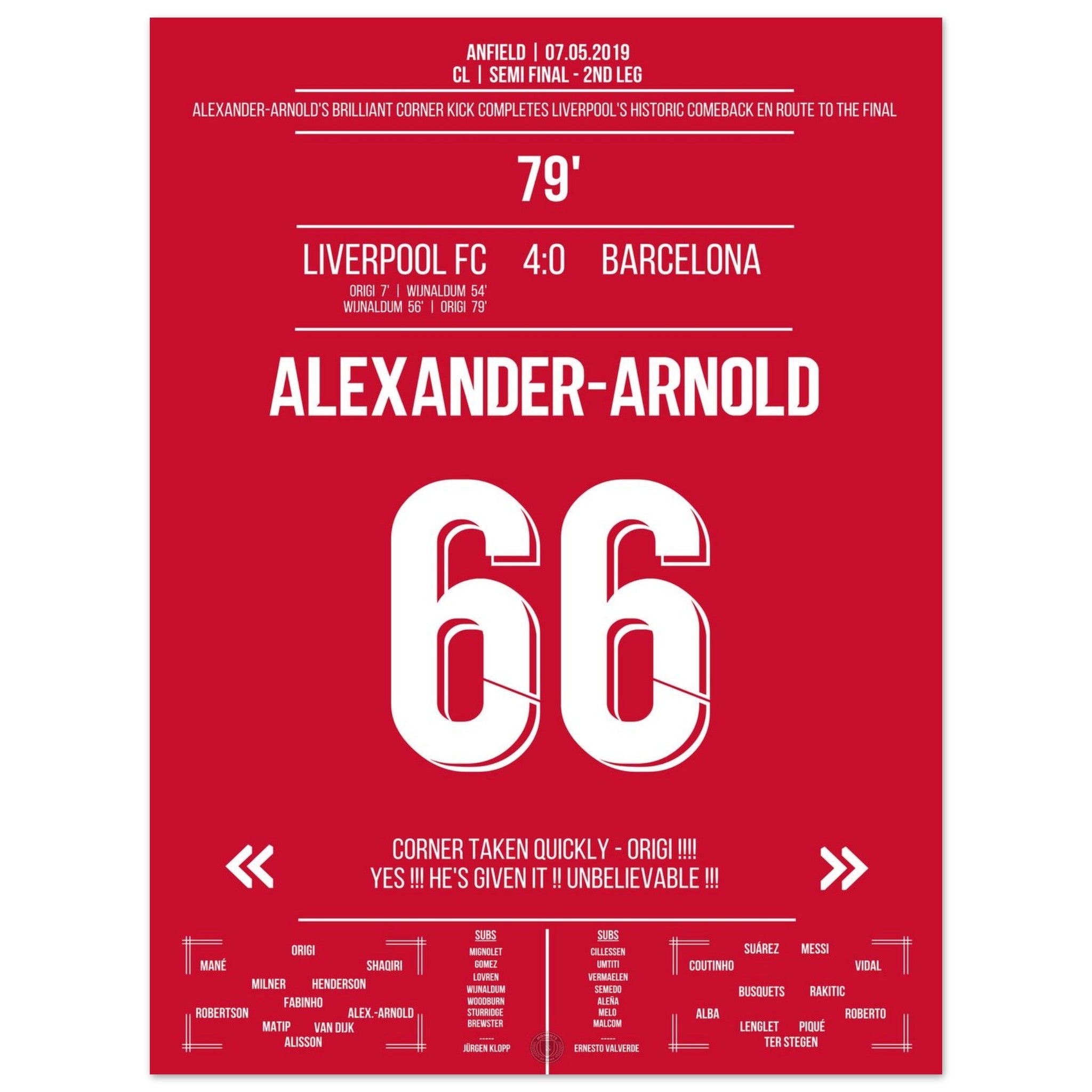 Alexander-Arnold's quickly taken corner in the semifinal against Barca