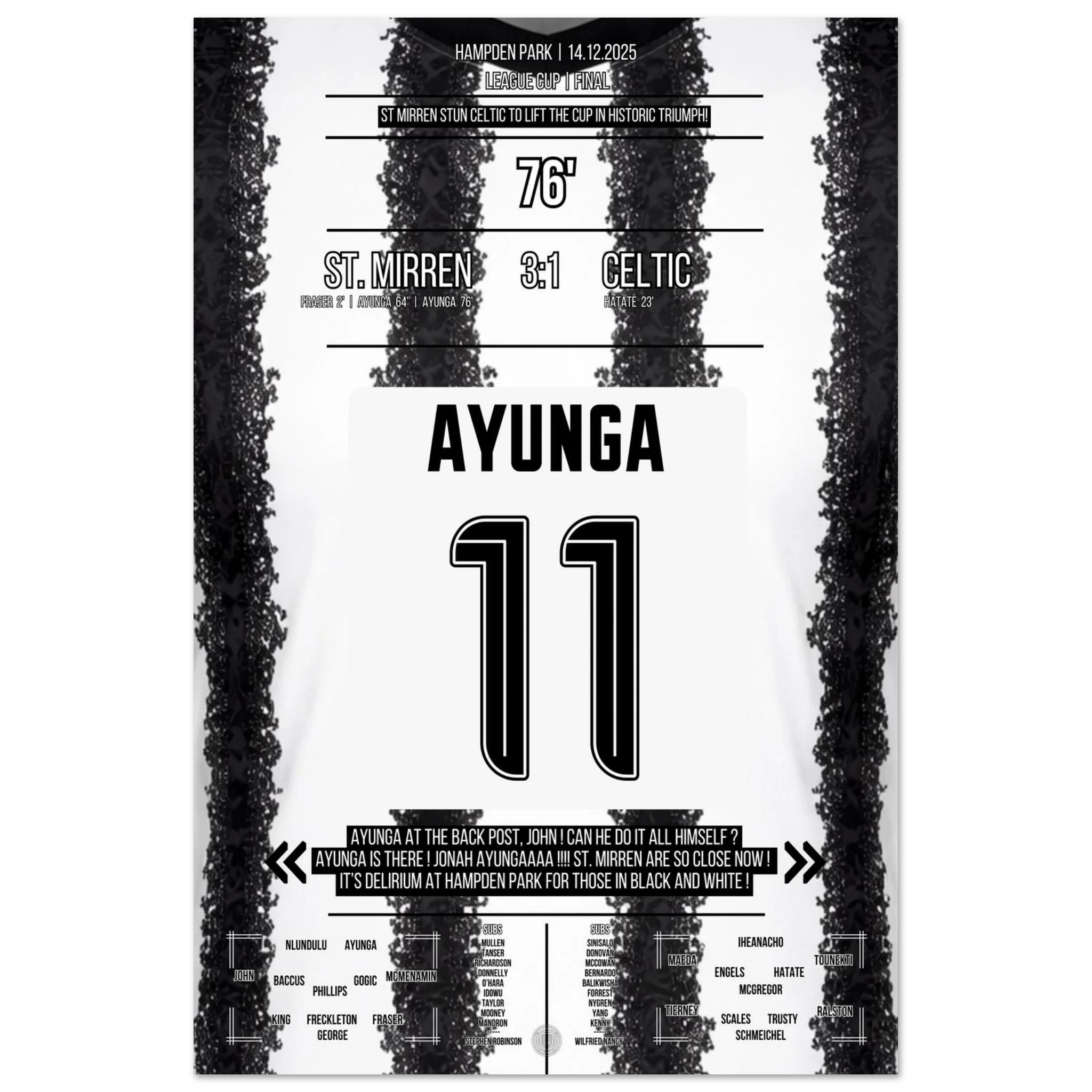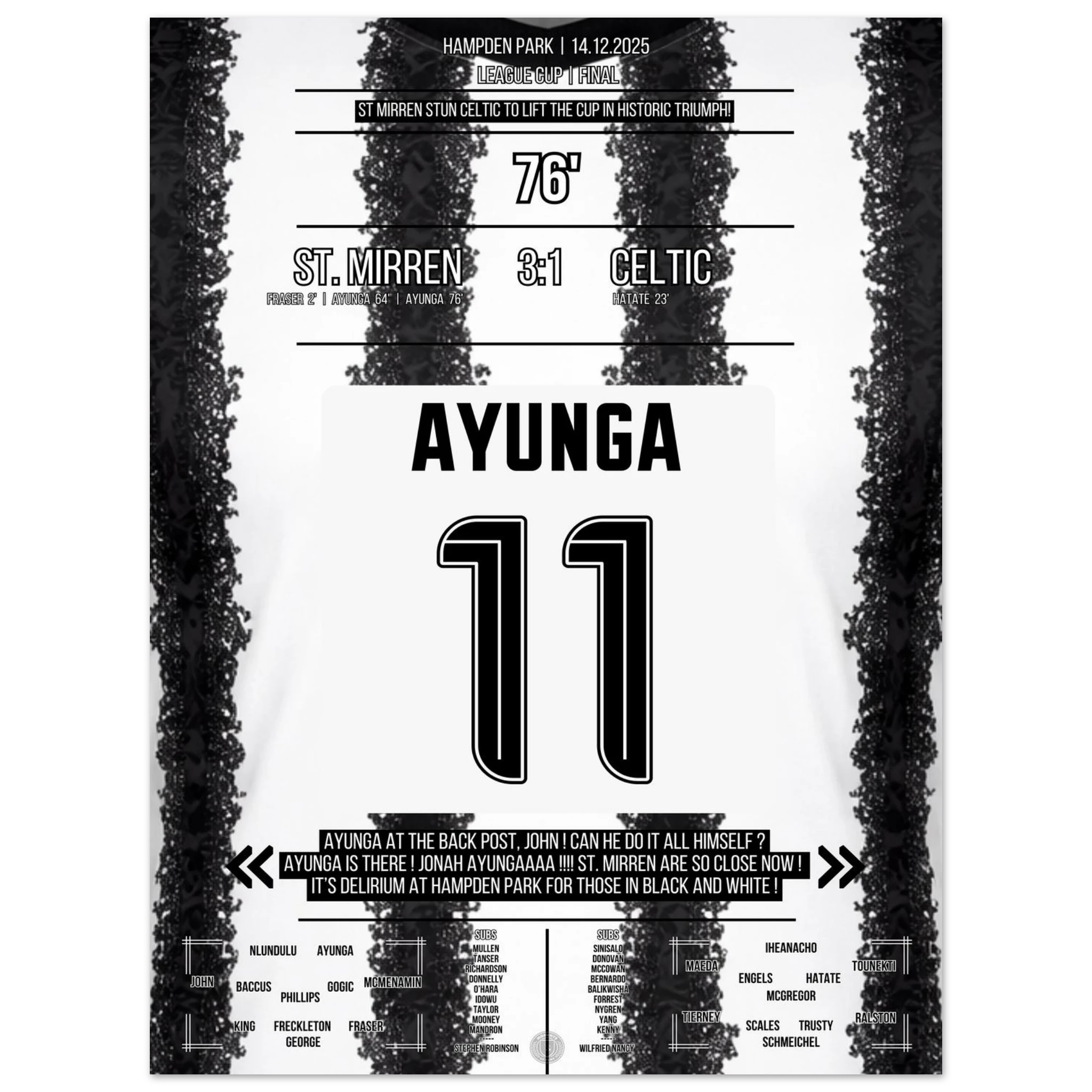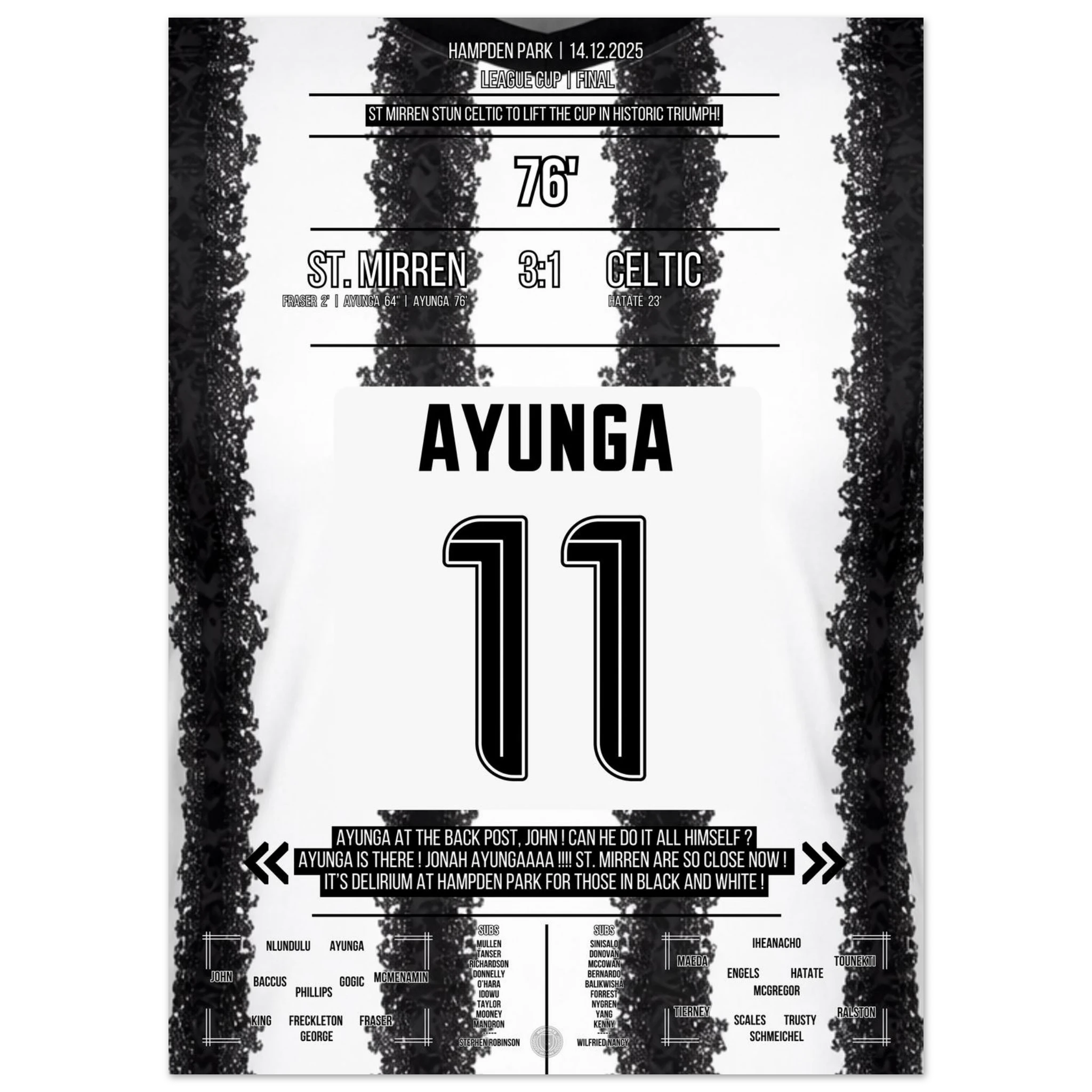 Unser Poster hält diesen historischen Triumph fest – den Tag, an dem ganz Paisley an Wunder glaubte. 🖤🤍⚽
