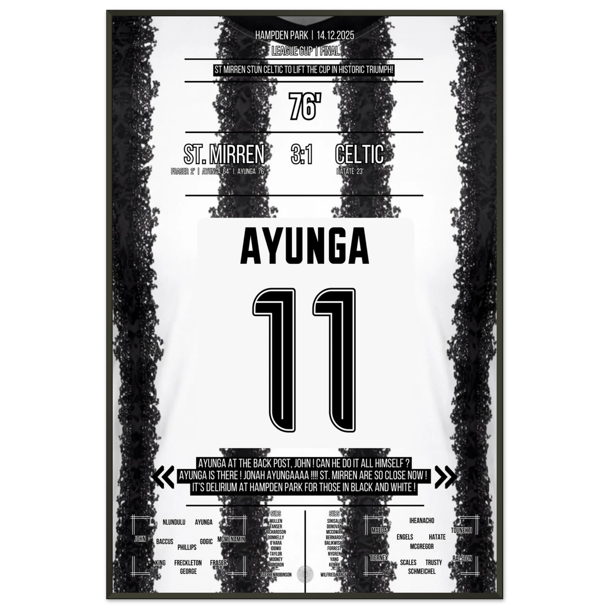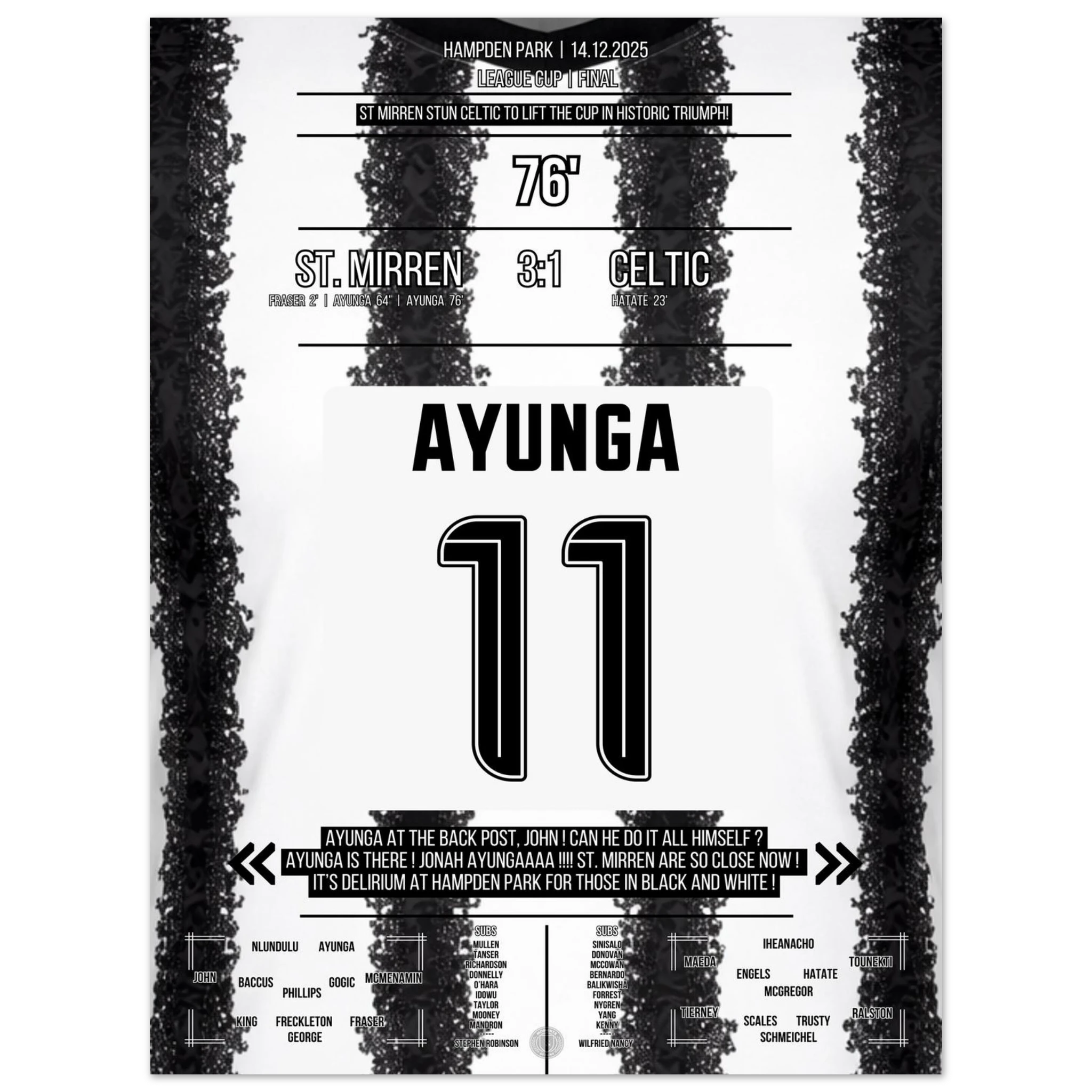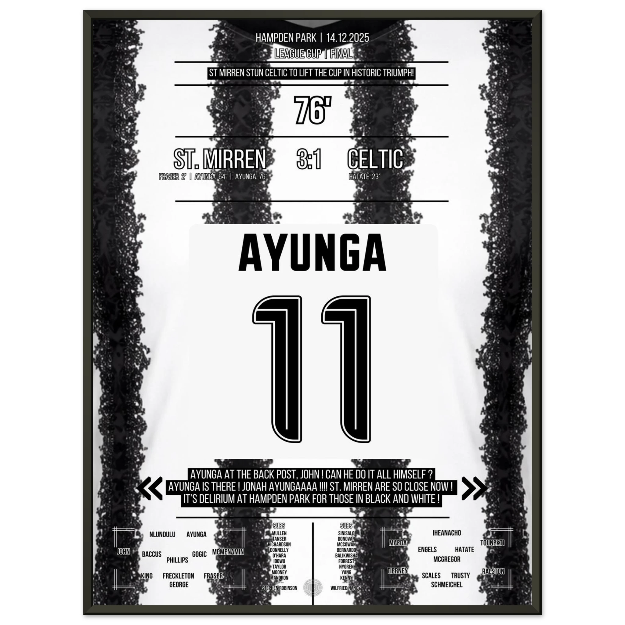 Unser Poster hält diesen historischen Triumph fest – den Tag, an dem ganz Paisley an Wunder glaubte. 🖤🤍⚽