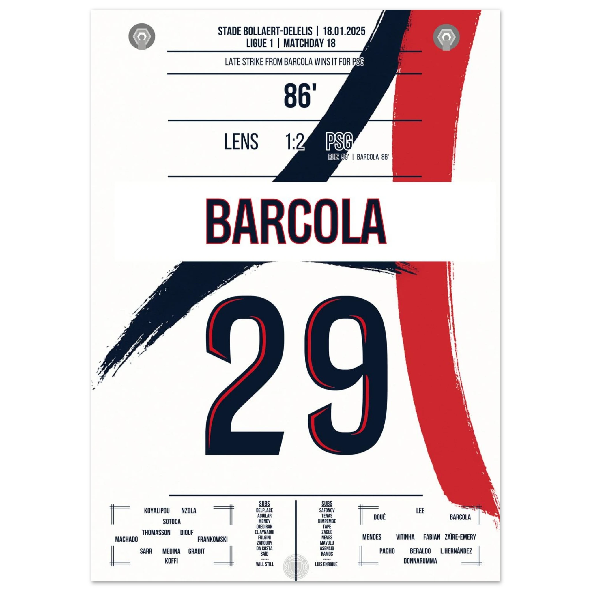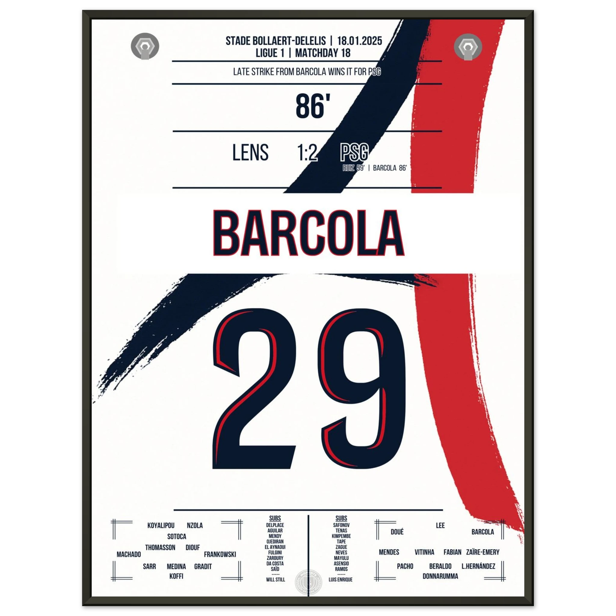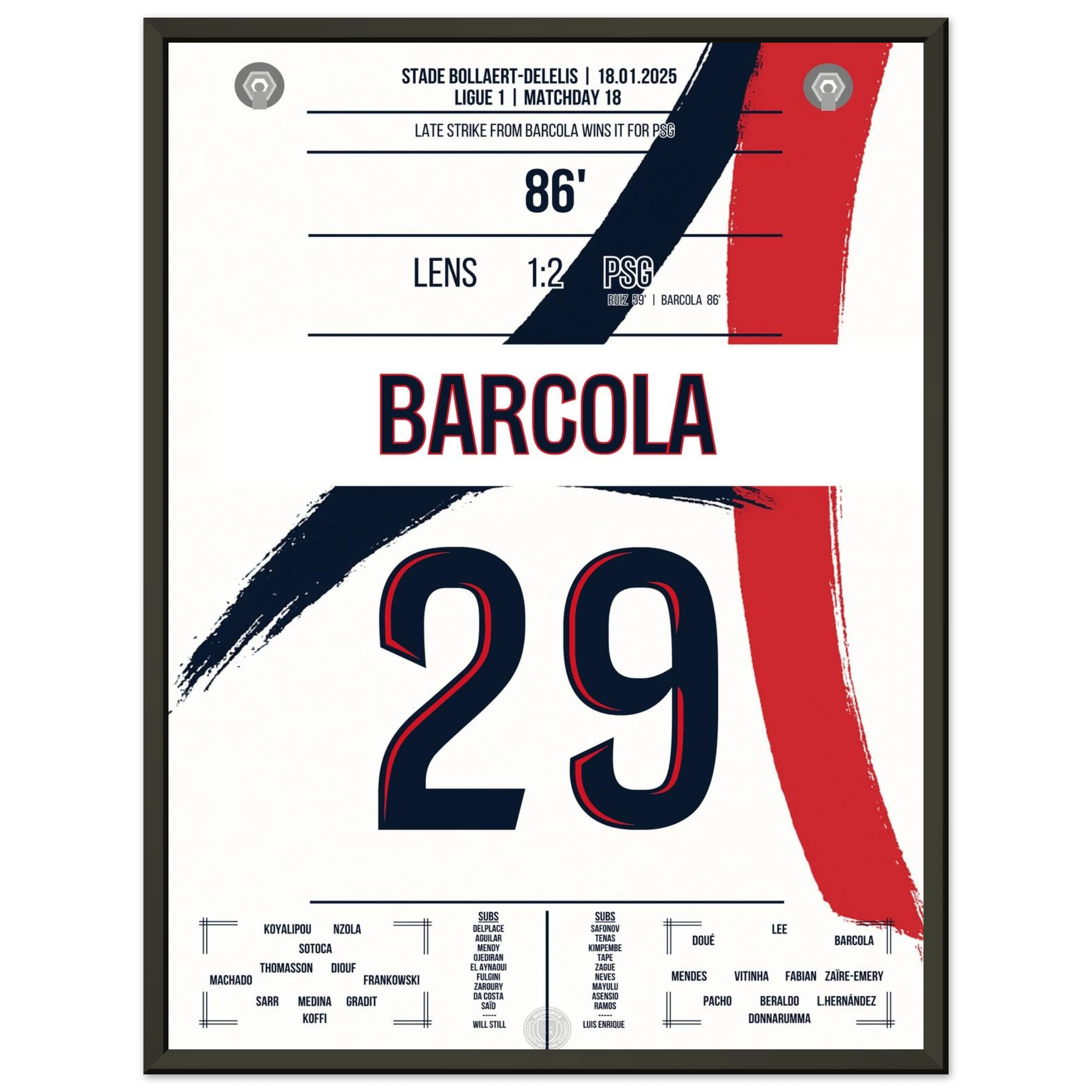 In einem intensiven Auswärtsspiel bei Lens avanciert Bradley Barcola zum Matchwinner. Mit seinem Treffer zum 2:1 sichert er Paris drei wichtige Punkte – ein kraftvoller Schlusspunkt in einer Partie, die Pariser Titelambitionen unterstreicht.