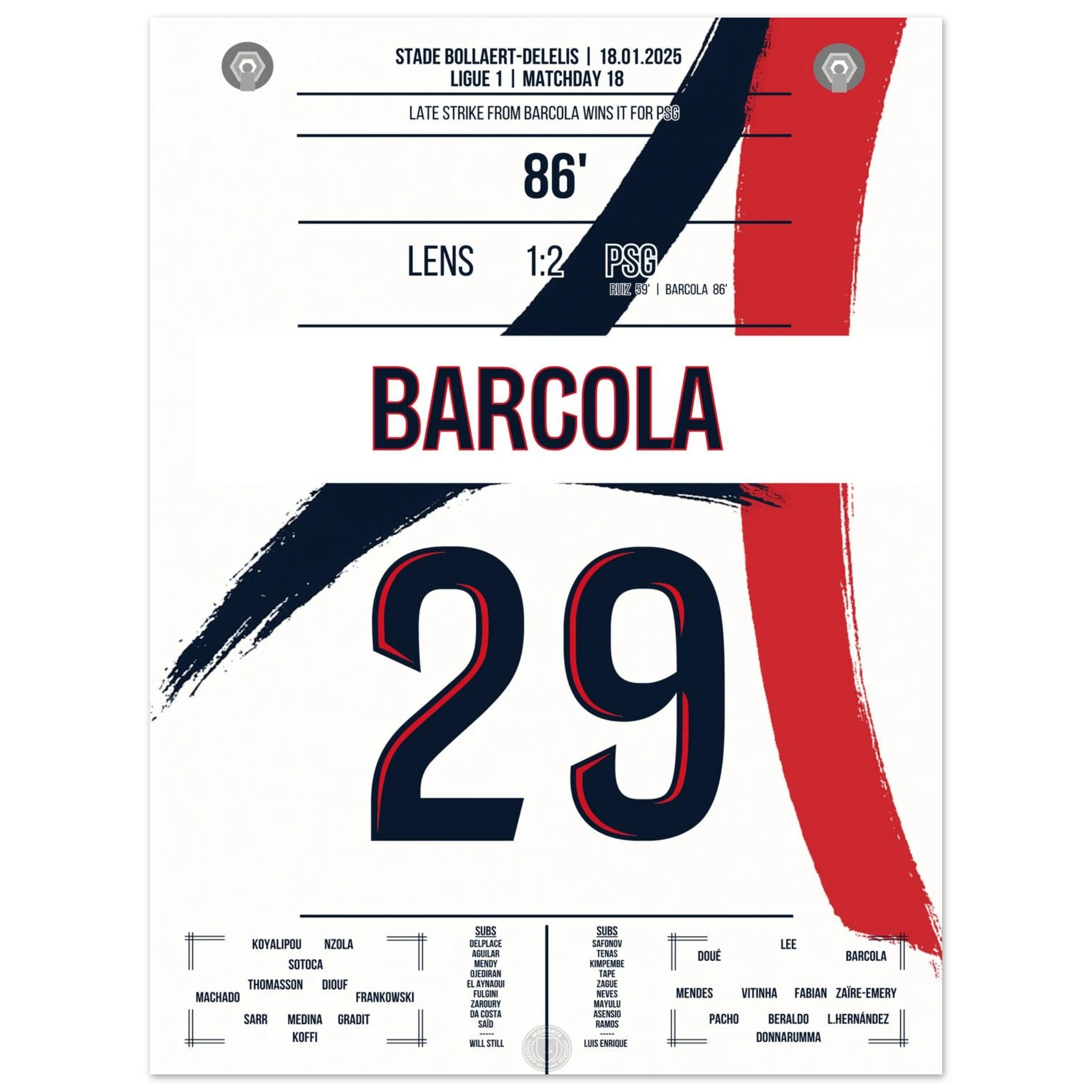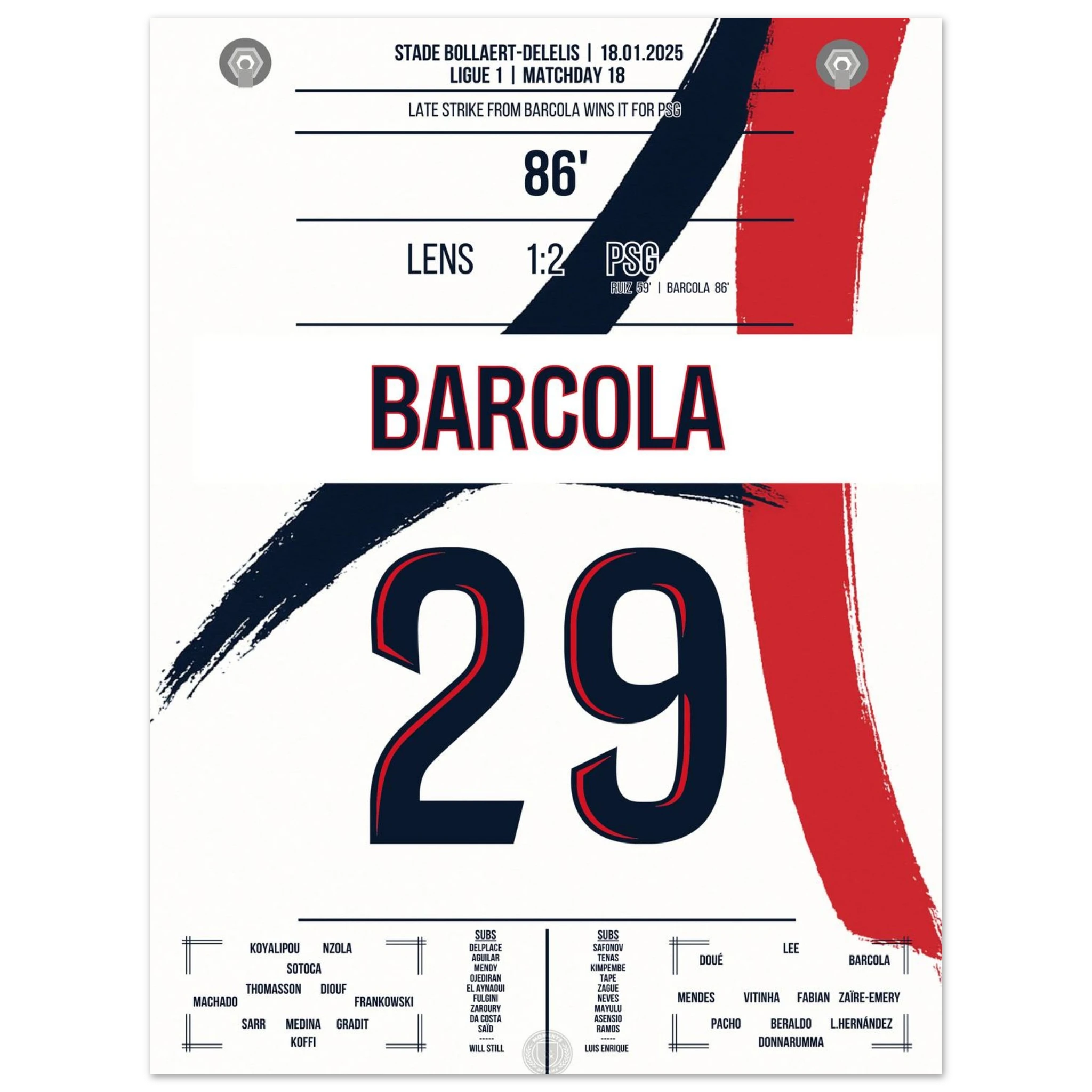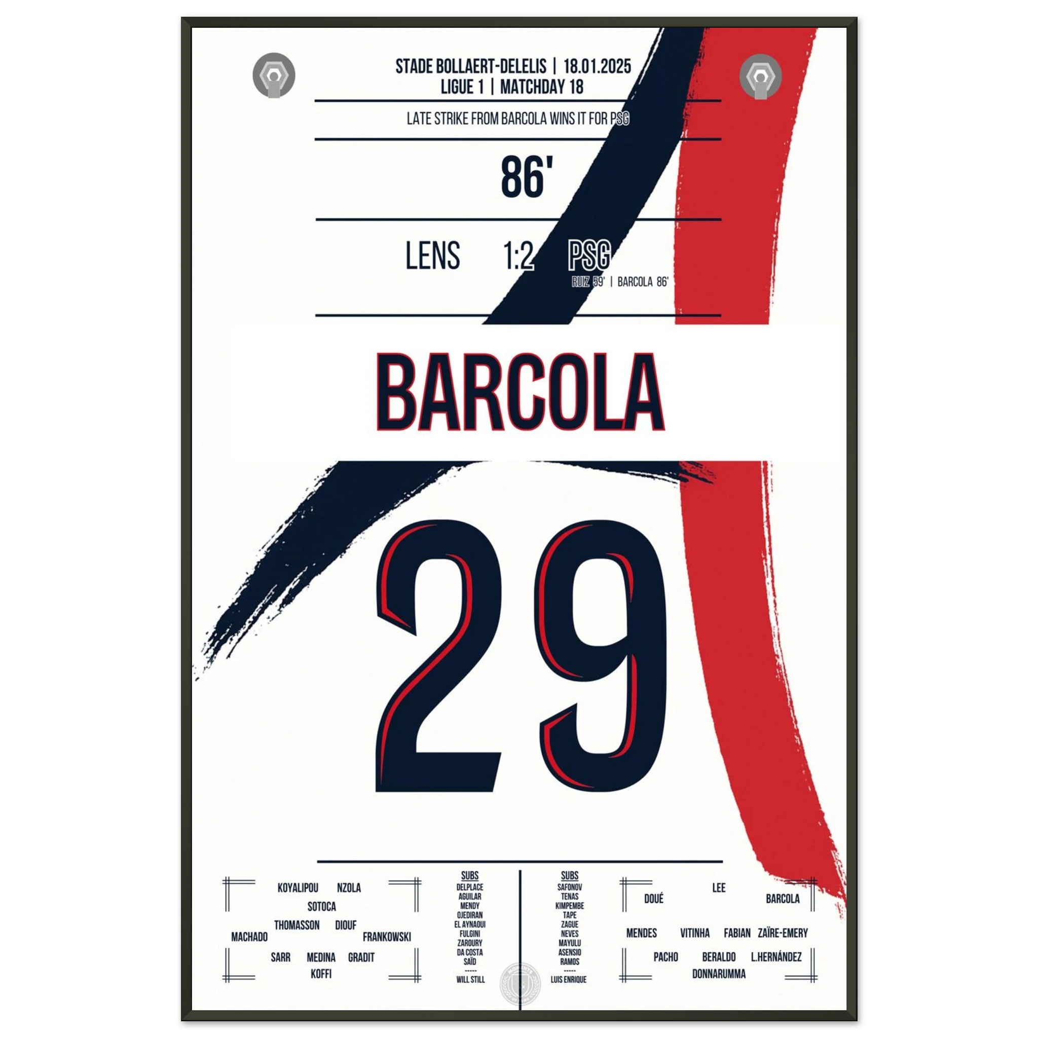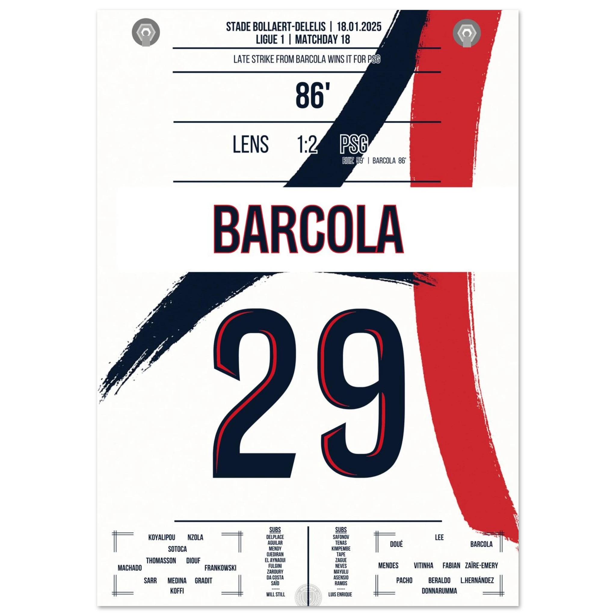In einem intensiven Auswärtsspiel bei Lens avanciert Bradley Barcola zum Matchwinner. Mit seinem Treffer zum 2:1 sichert er Paris drei wichtige Punkte – ein kraftvoller Schlusspunkt in einer Partie, die Pariser Titelambitionen unterstreicht.