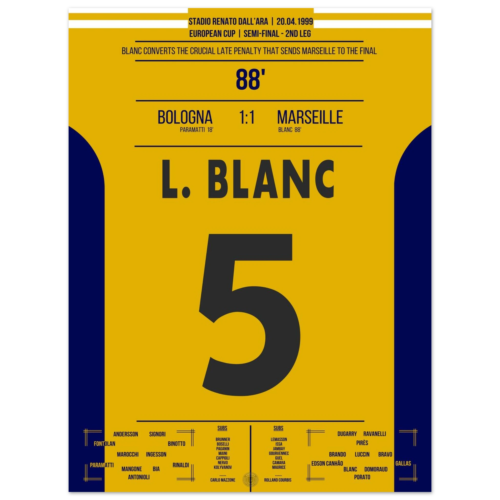 20. April 1999 – Bologna vs. Marseille 1:1 – Blancs goldener Moment!