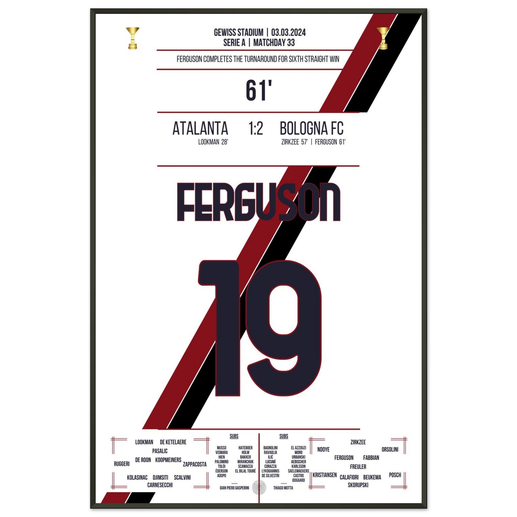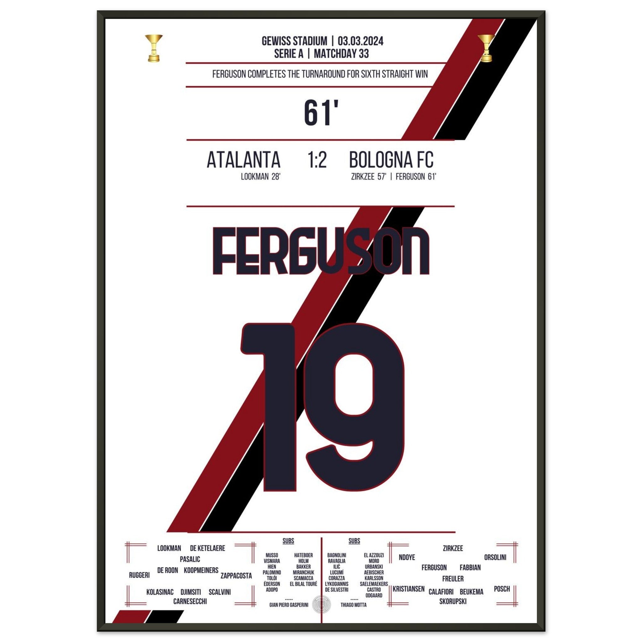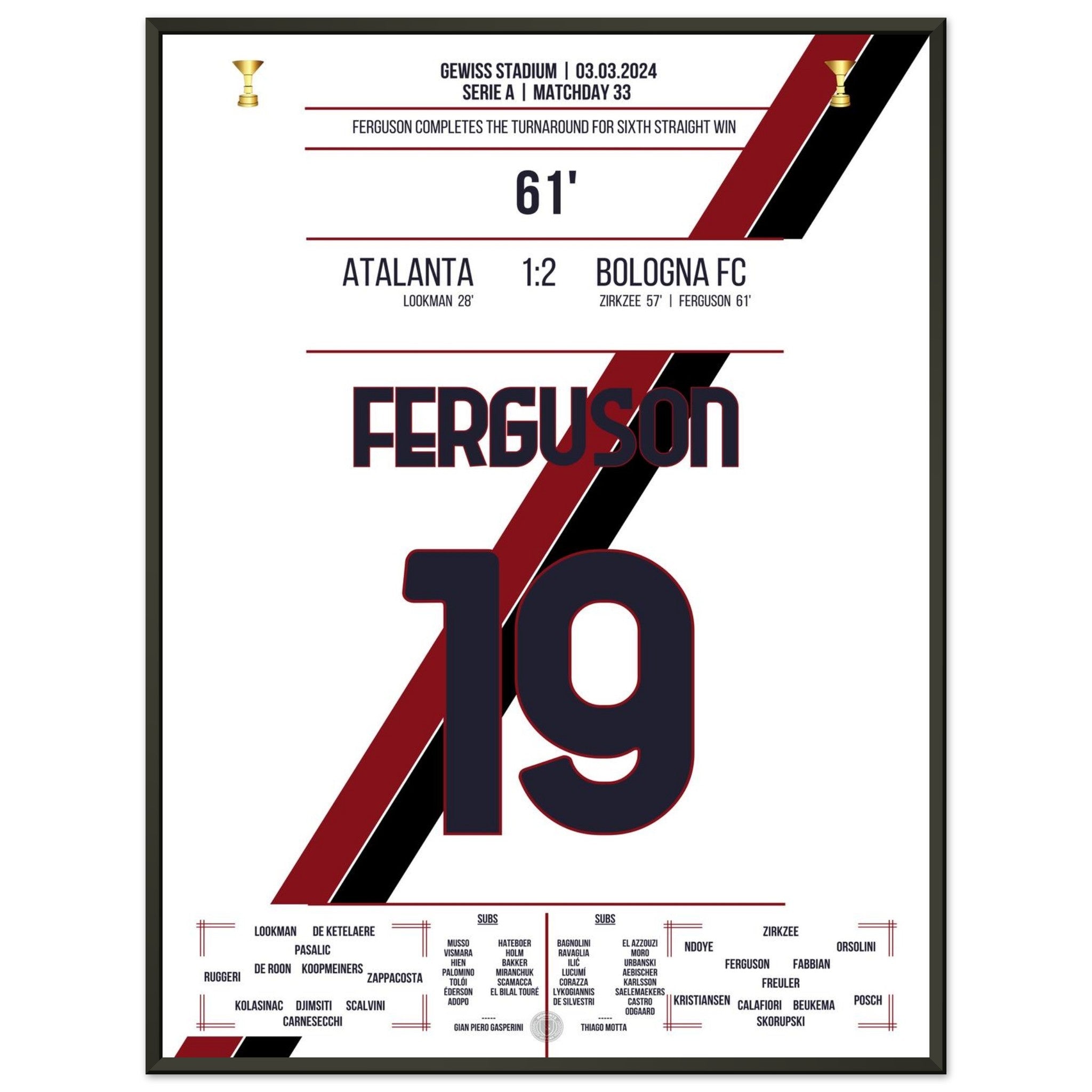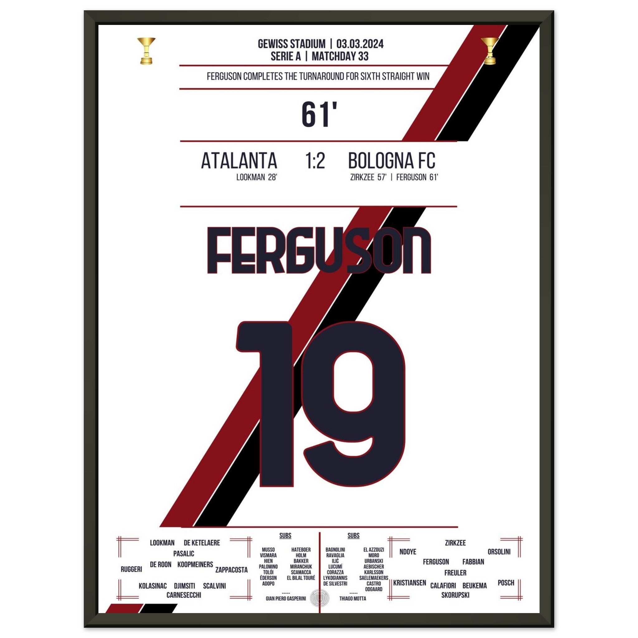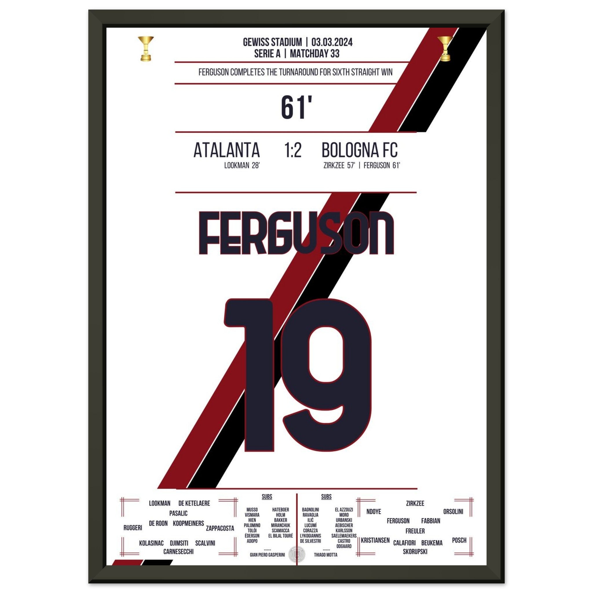 You can be assured that each poster and frame is shipped in sturdy packaging to ensure it arrives in pristine condition. It's the perfect addition to any football fan's collection or the perfect gift for that diehard football fan in your circle of friends or family.
