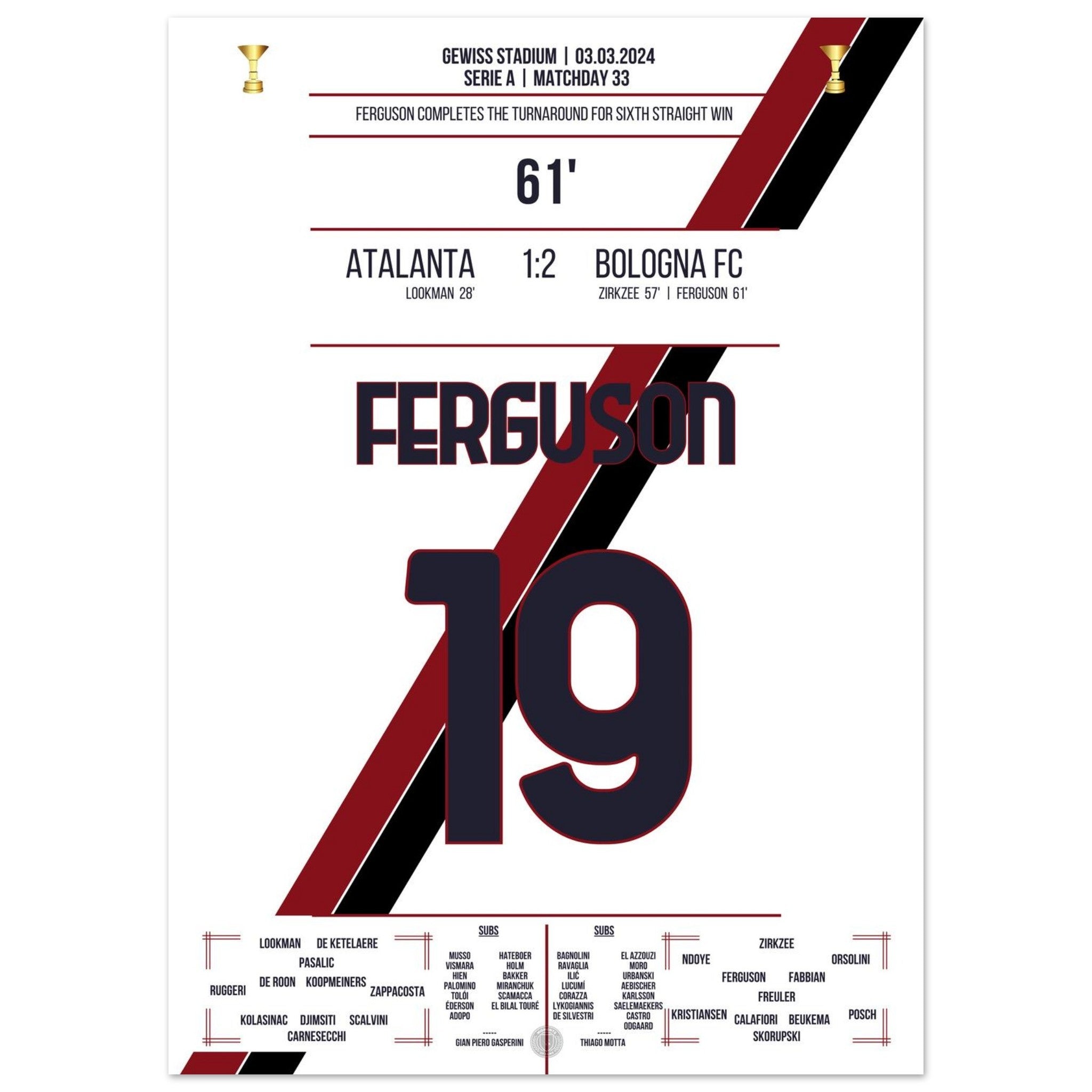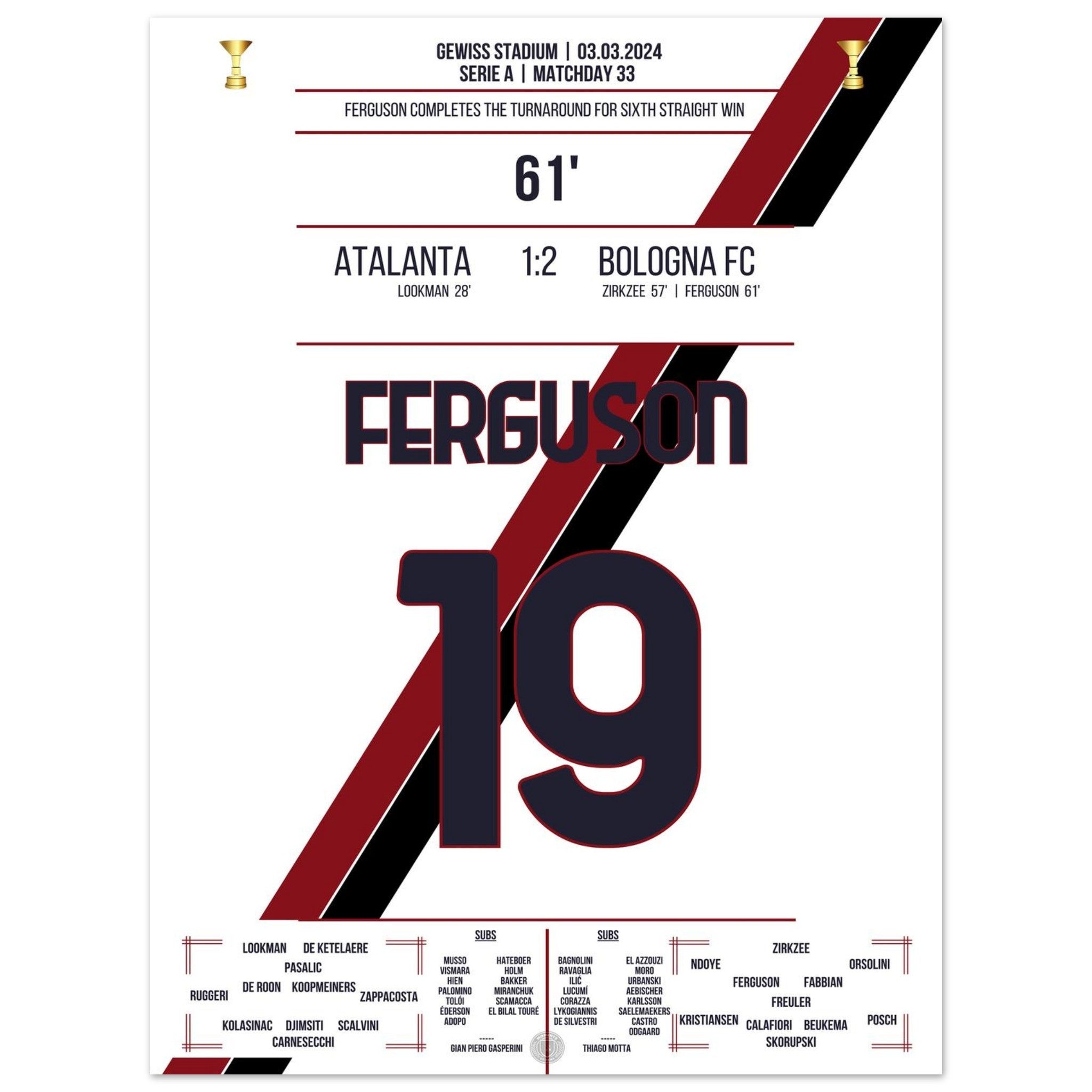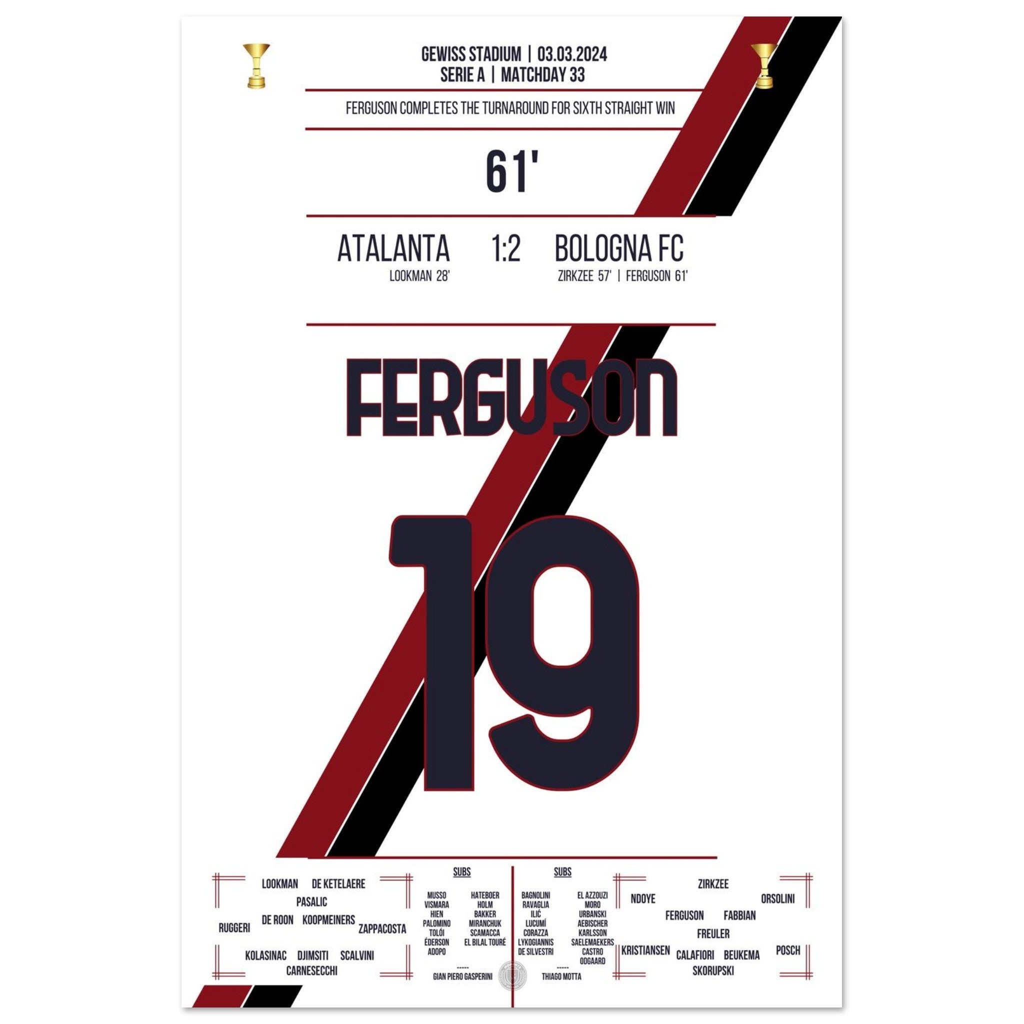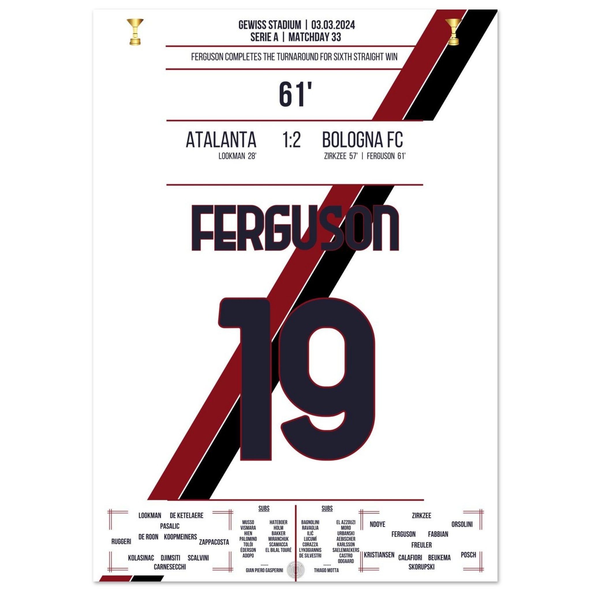 Bologna turns the game around for their 6th consecutive win.