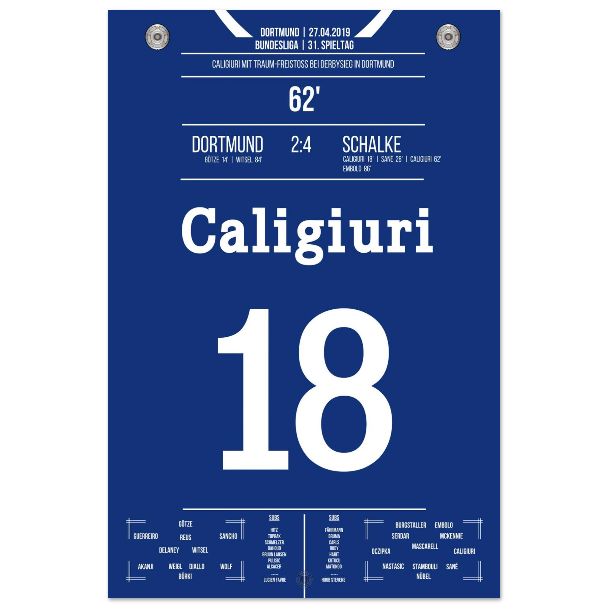 Unser Poster hält den Moment fest, als das Revierderby völlig eskalierte – ein Spiel, das in die Geschichte beider Städte eingraviert ist.