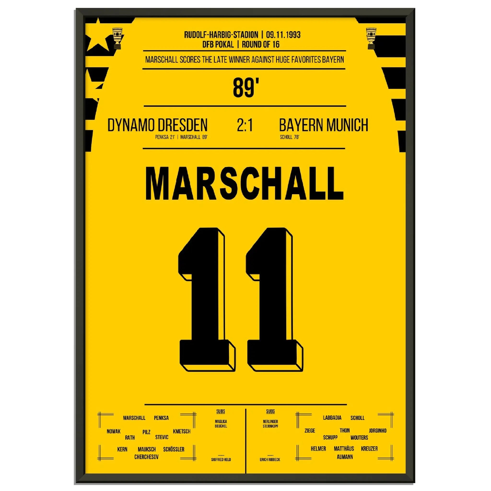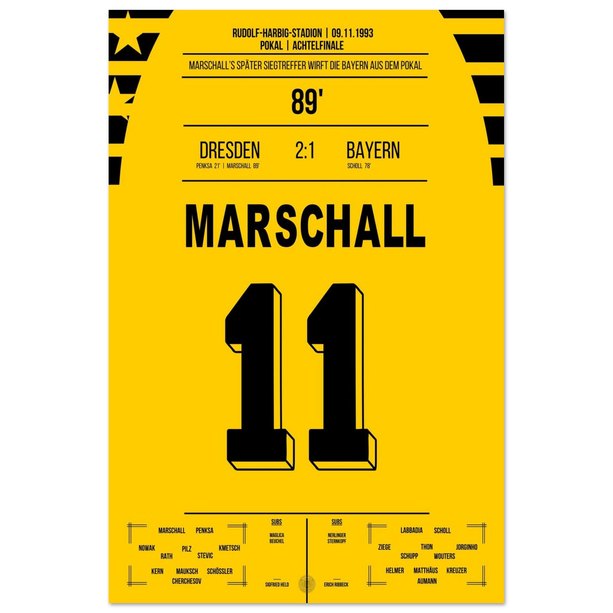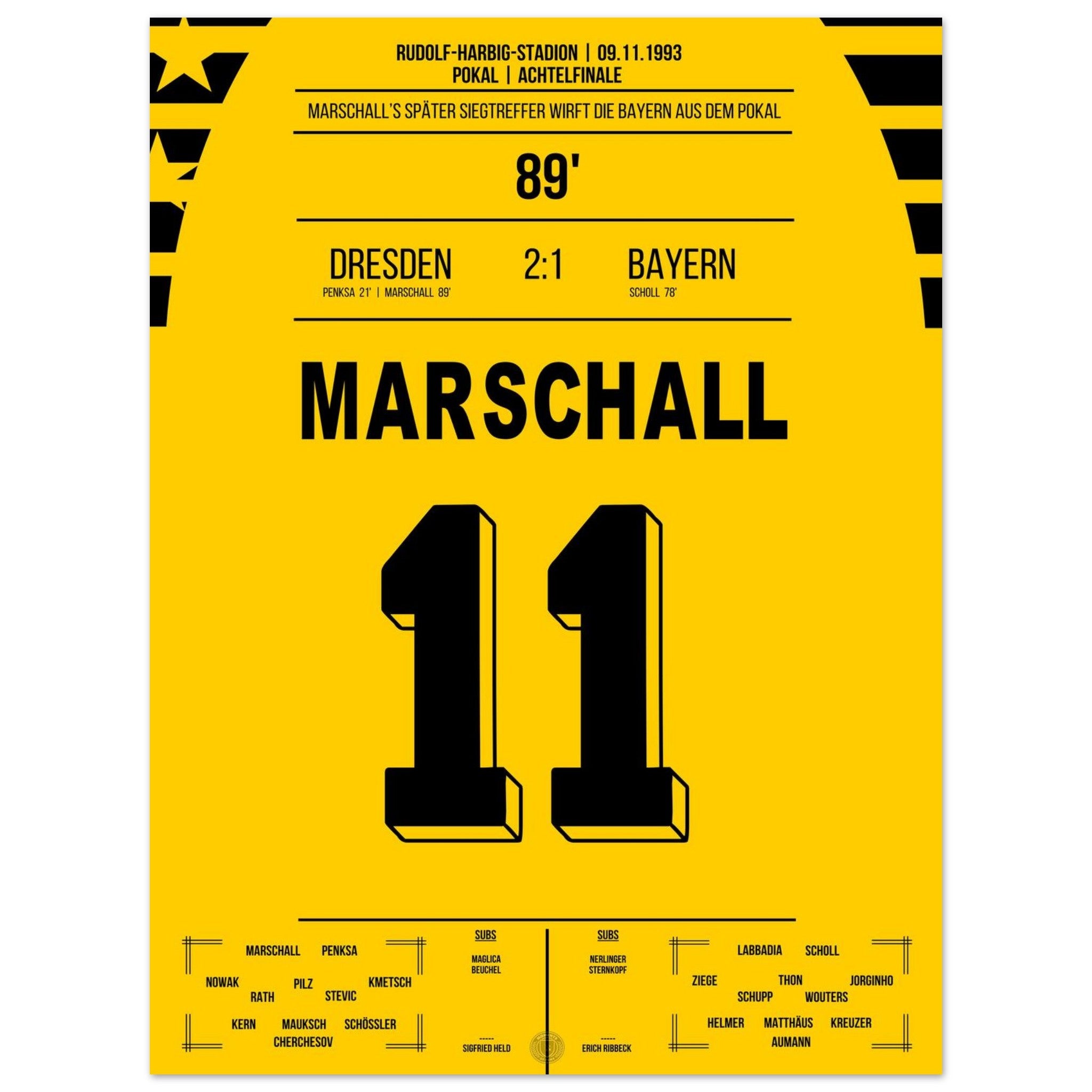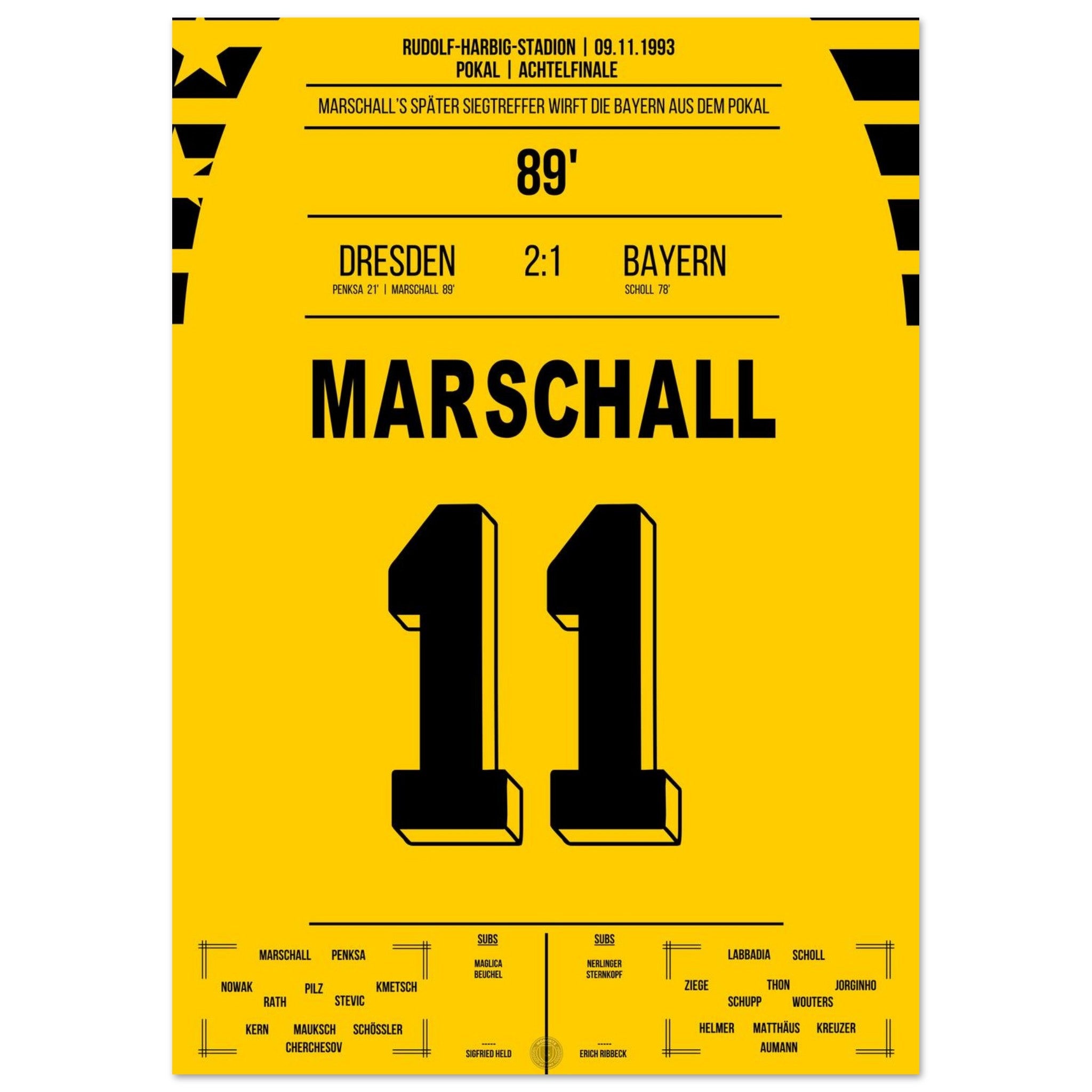 Cup sensation by Marschall - Dresden defeats <tc>Bayern</tc> in the DFB Cup Round of 16 1993
