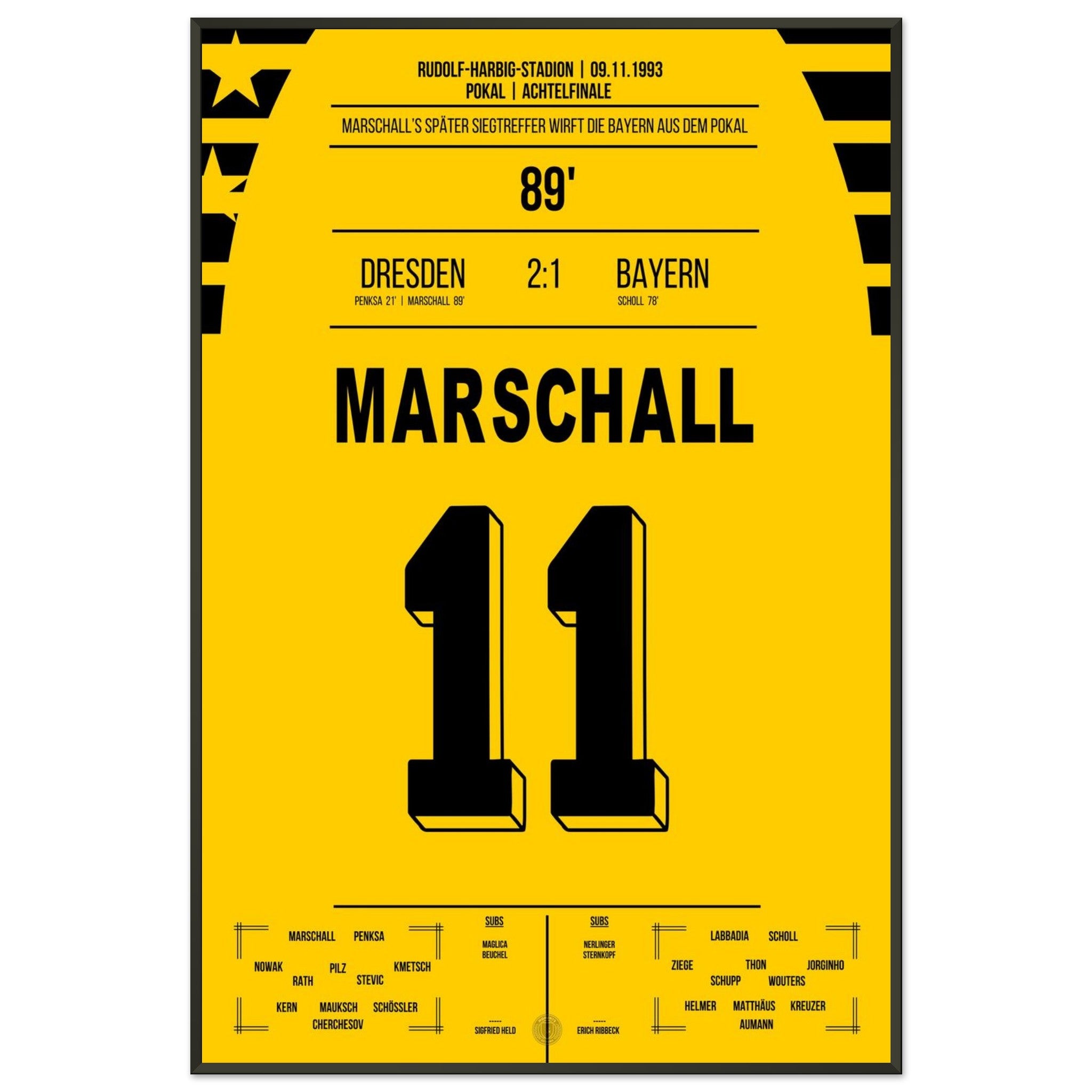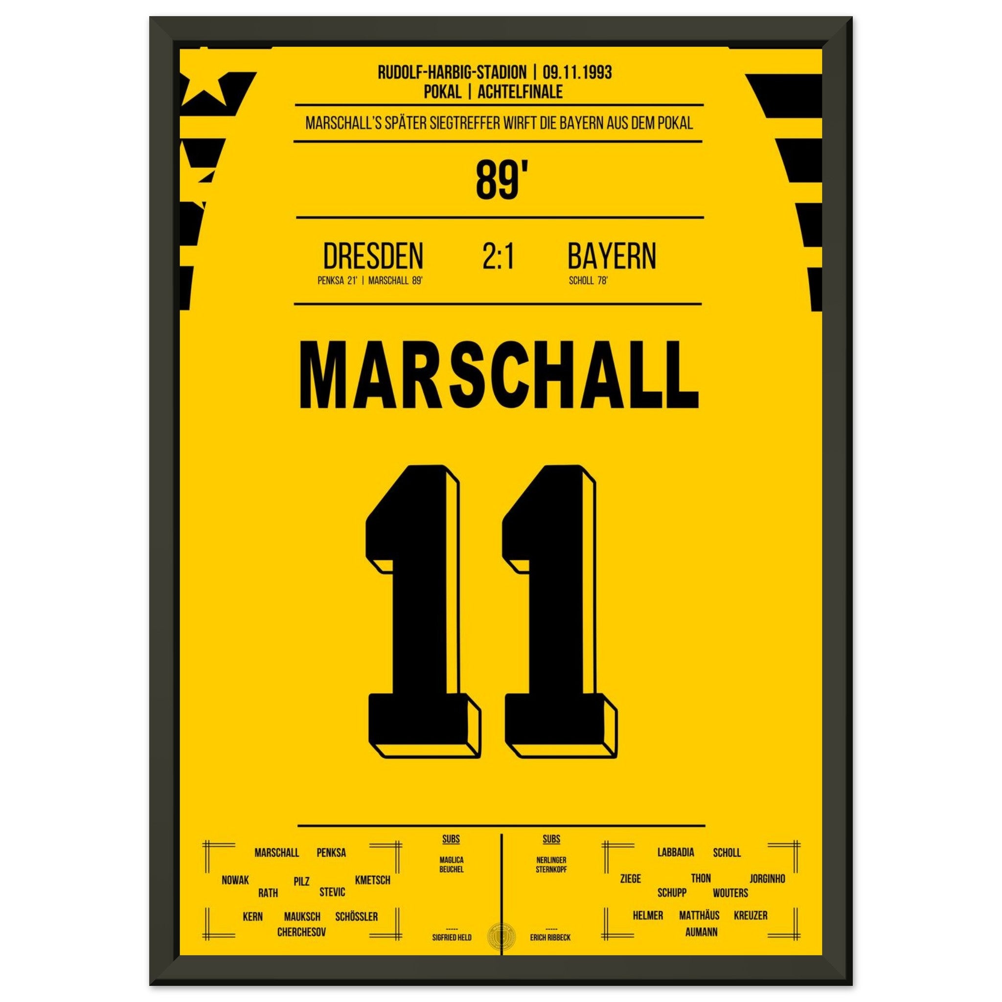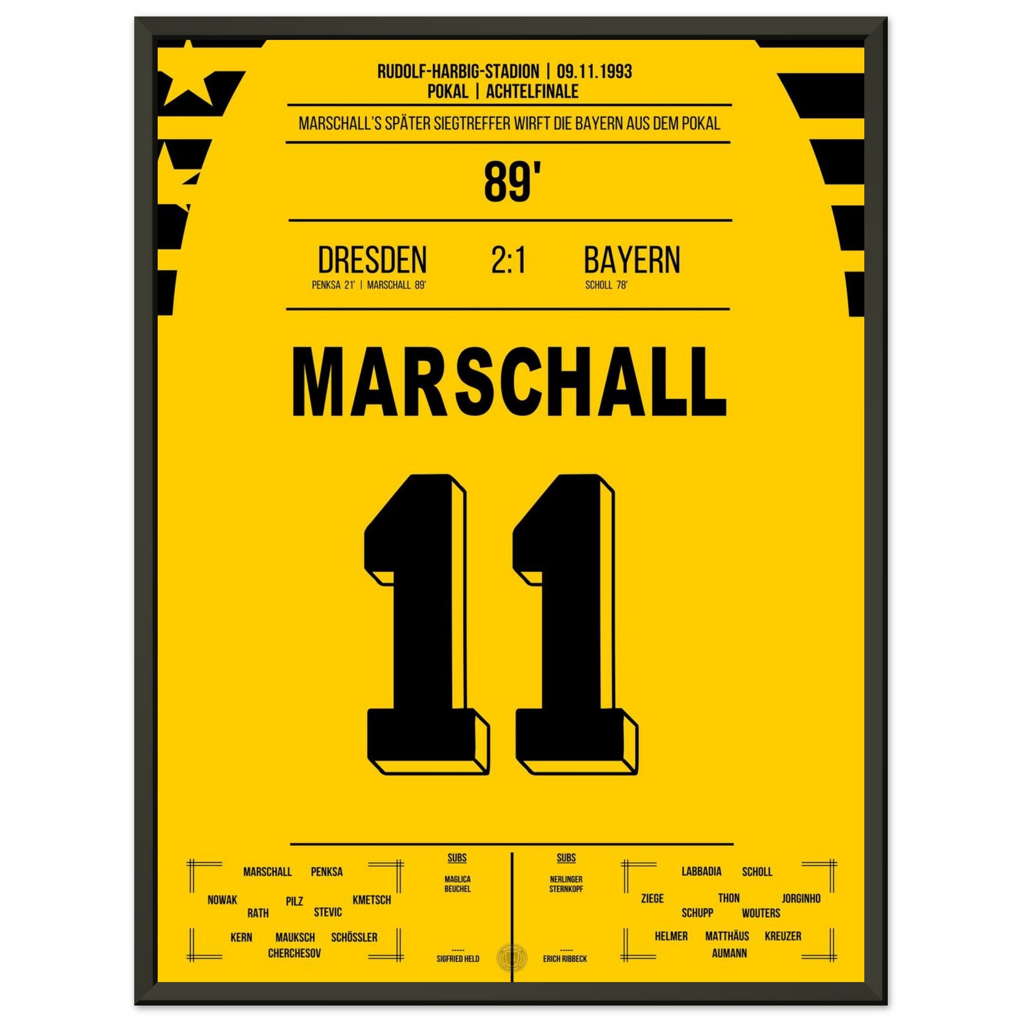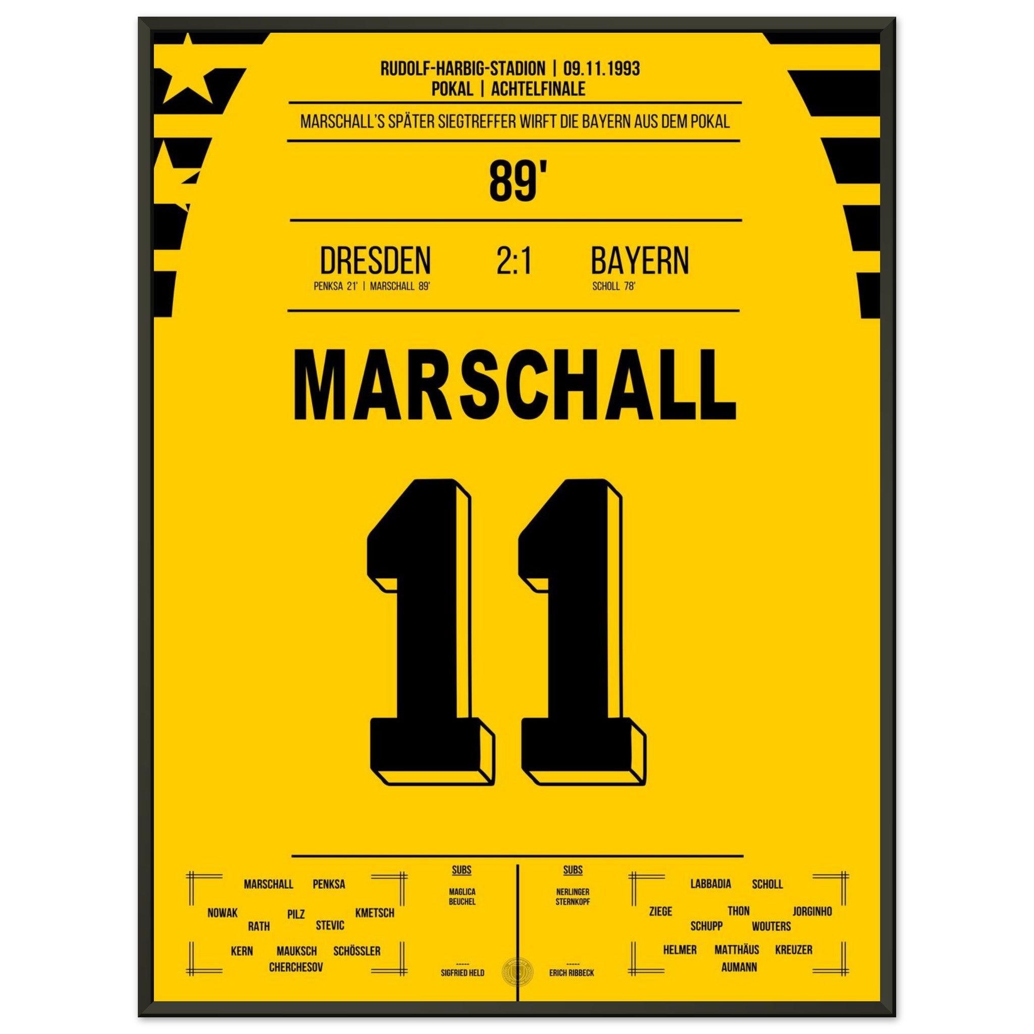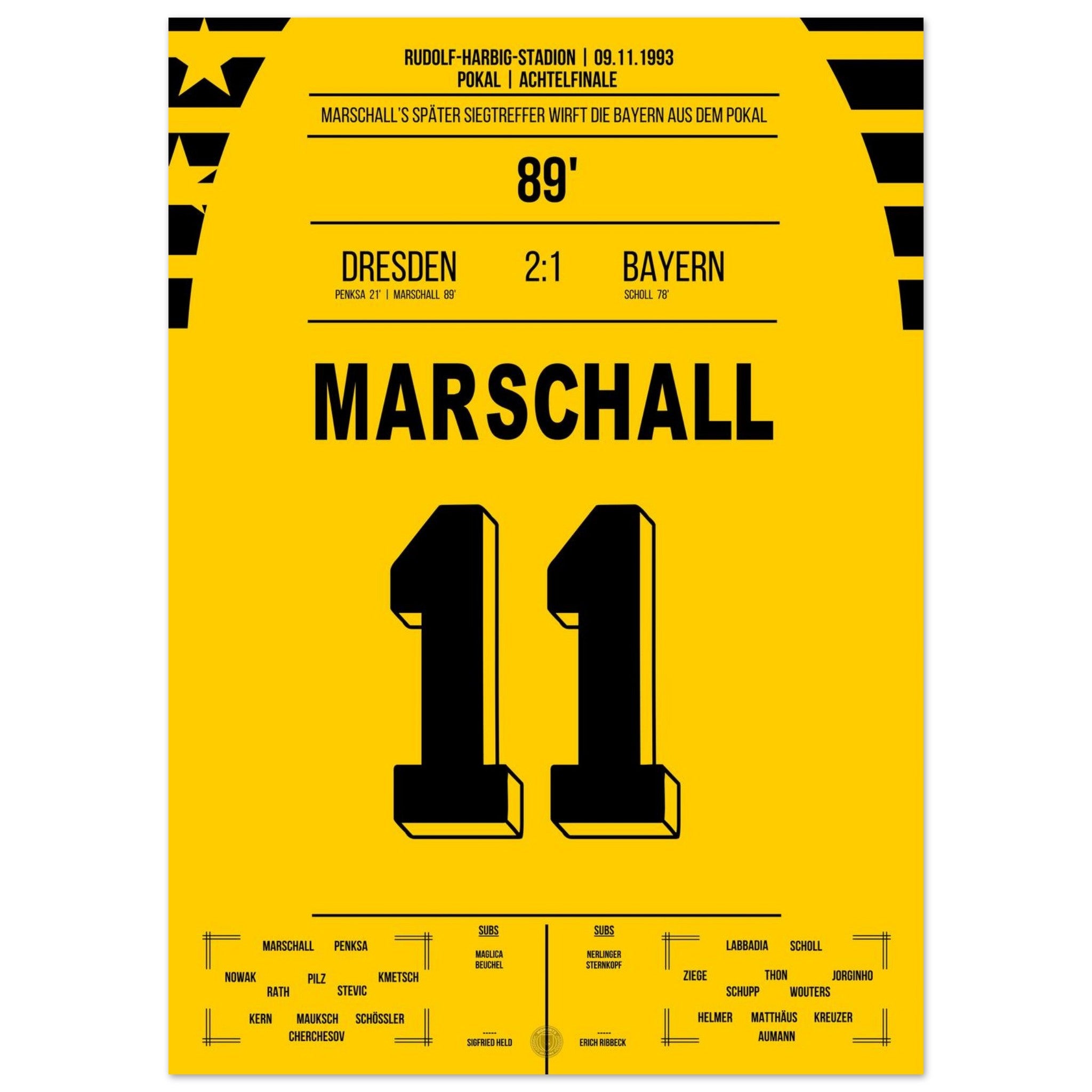 Cup sensation by Marschall - Dresden defeats <tc>Bayern</tc> in the DFB Cup Round of 16 1993