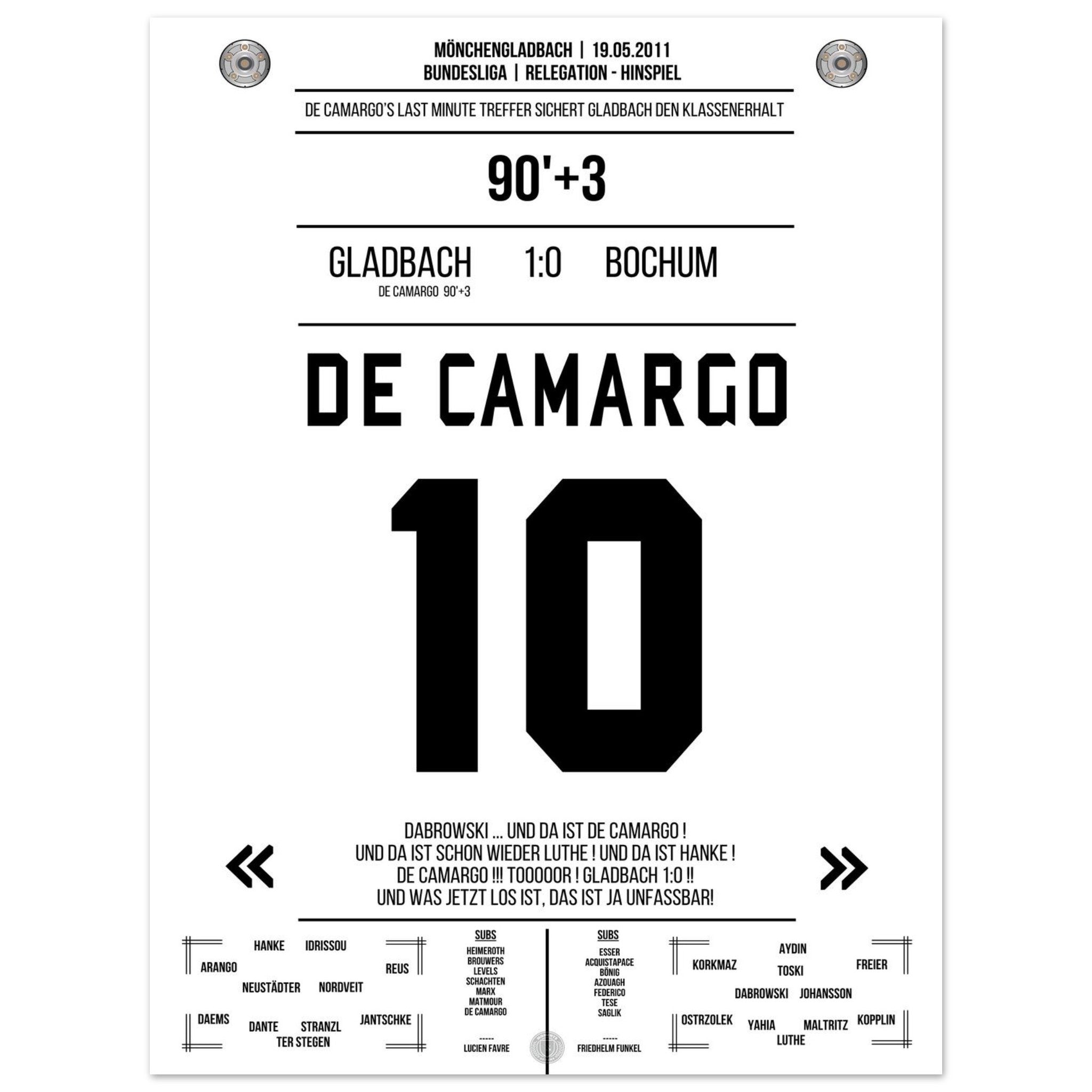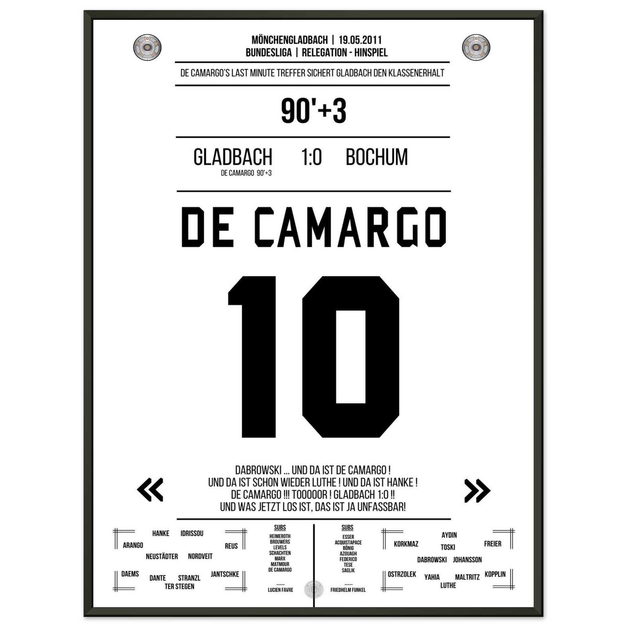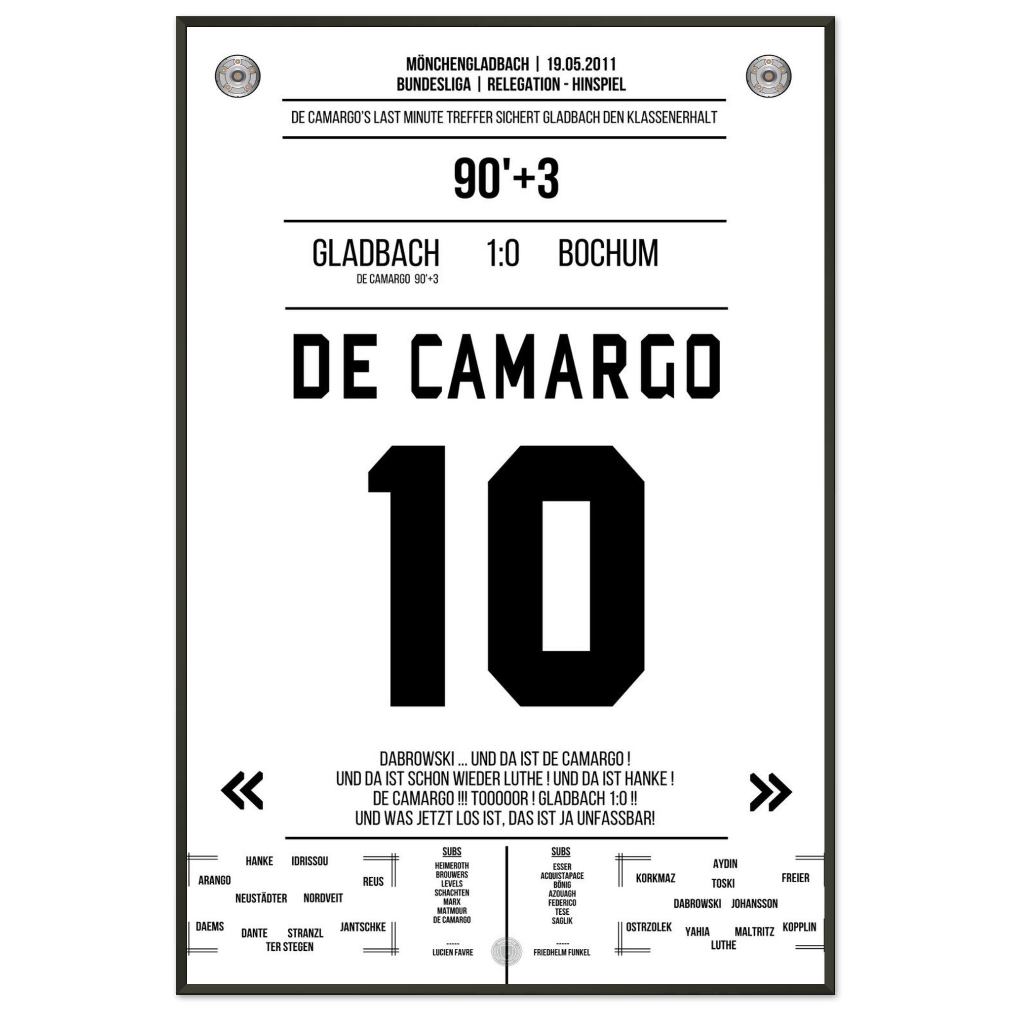 De Camargo scores and keeps Mönchengladbach in the Bundesliga.