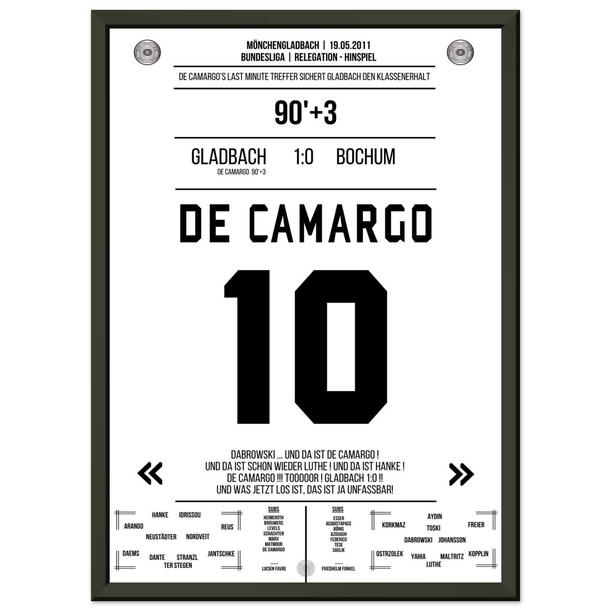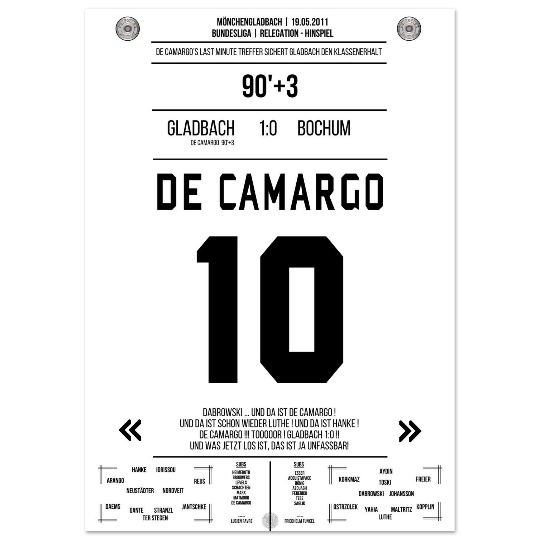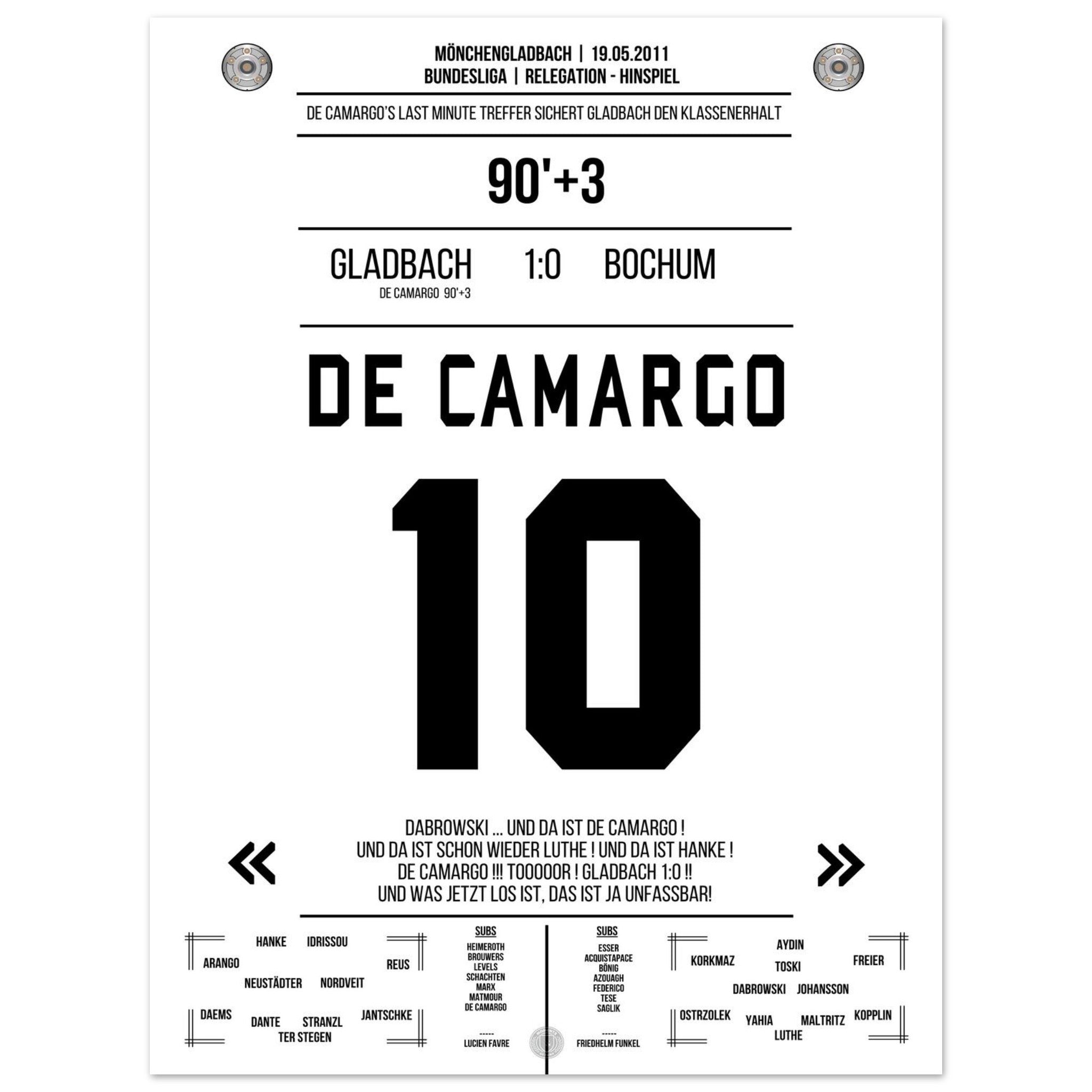 De Camargo scores and keeps Mönchengladbach in the Bundesliga.
