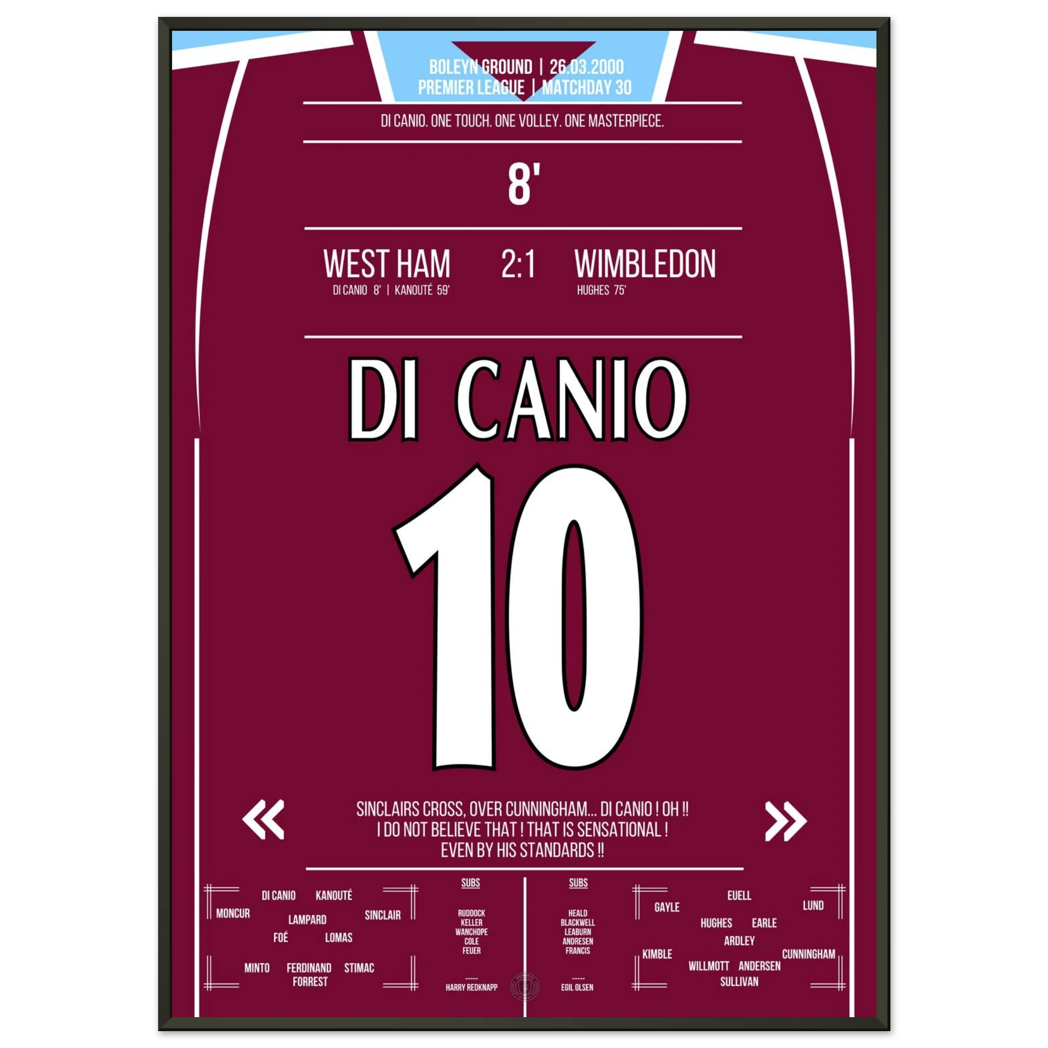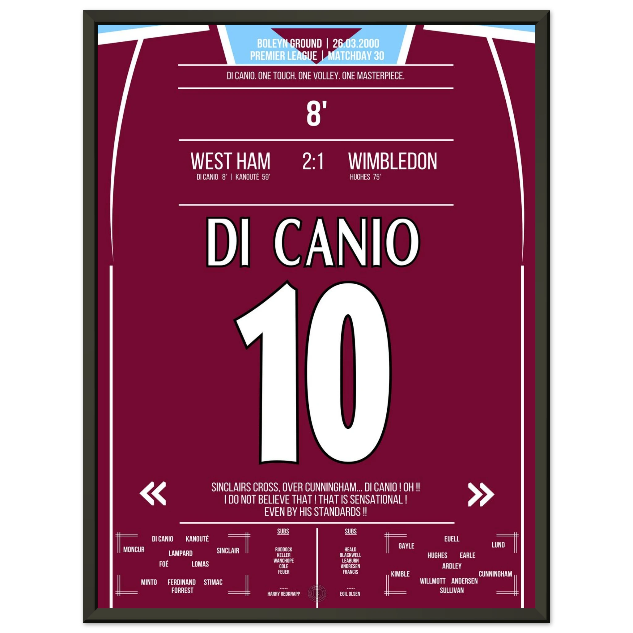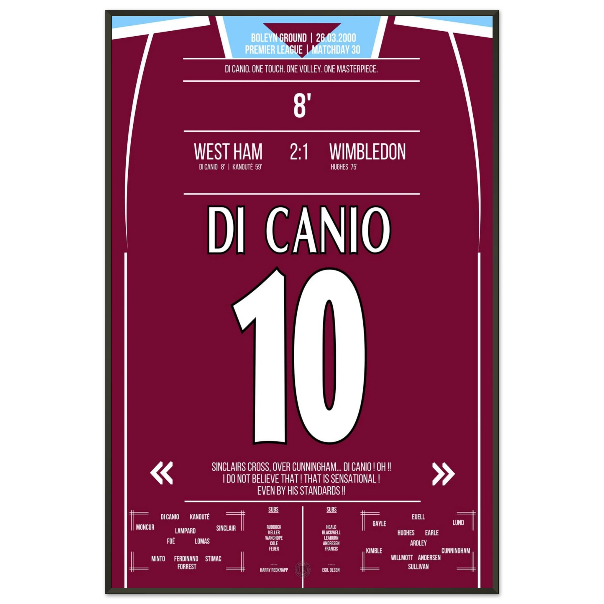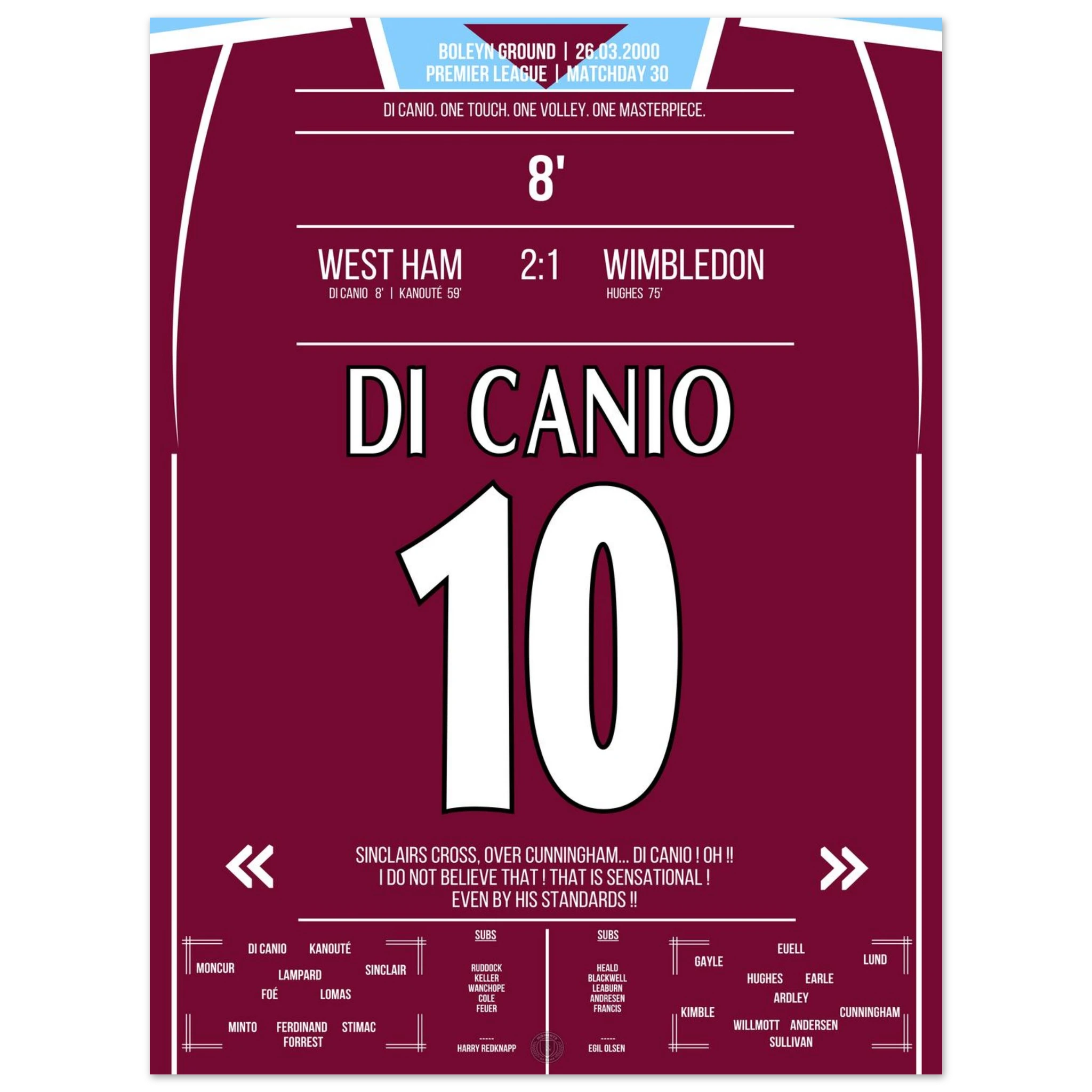 Unser Poster hält diesen magischen Moment fest – Di Canios Kunstwerk in Claret and Blue.