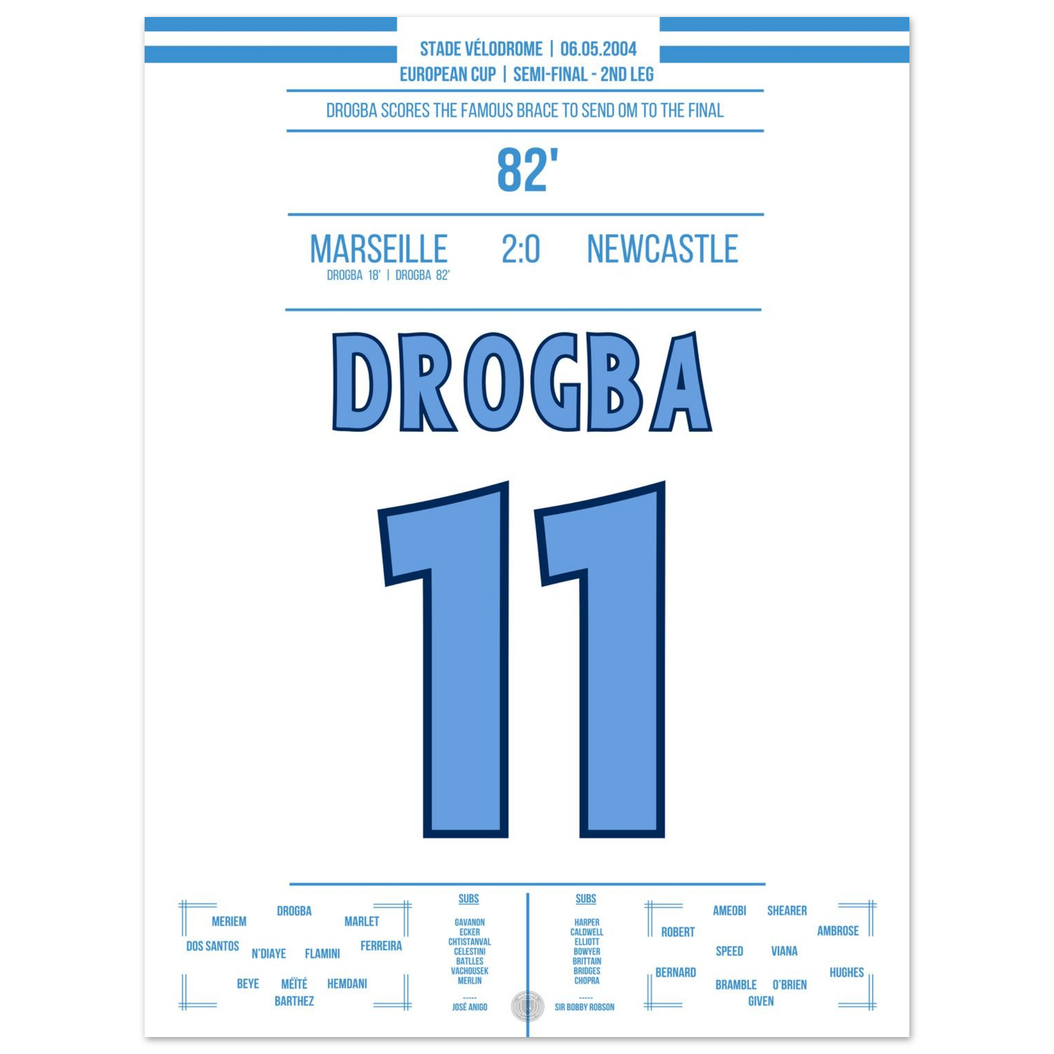 Dieses Poster fängt den Moment ein, in dem Drogba Marseille in Ekstase versetzte – pure Magie an der Mittelmeerküste.