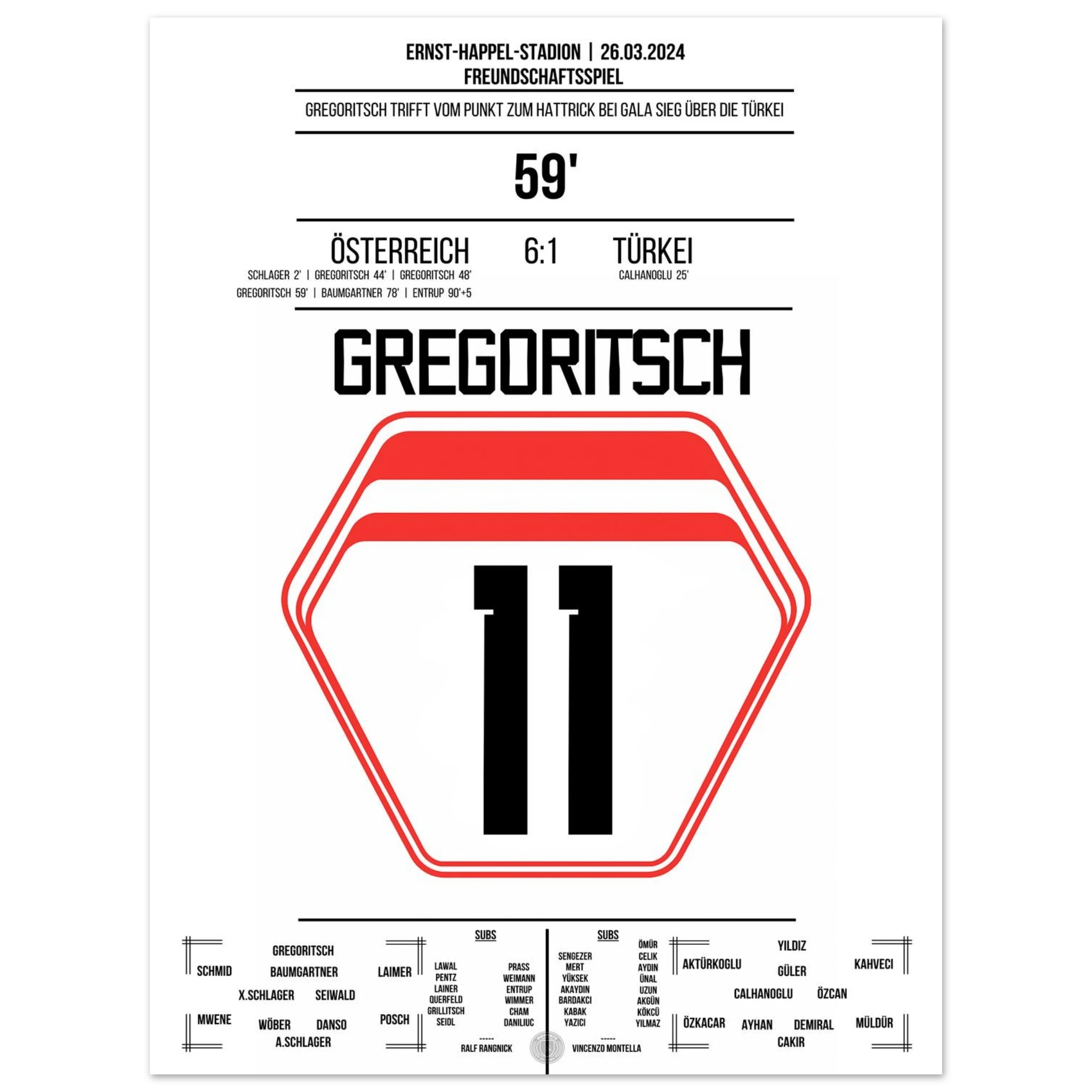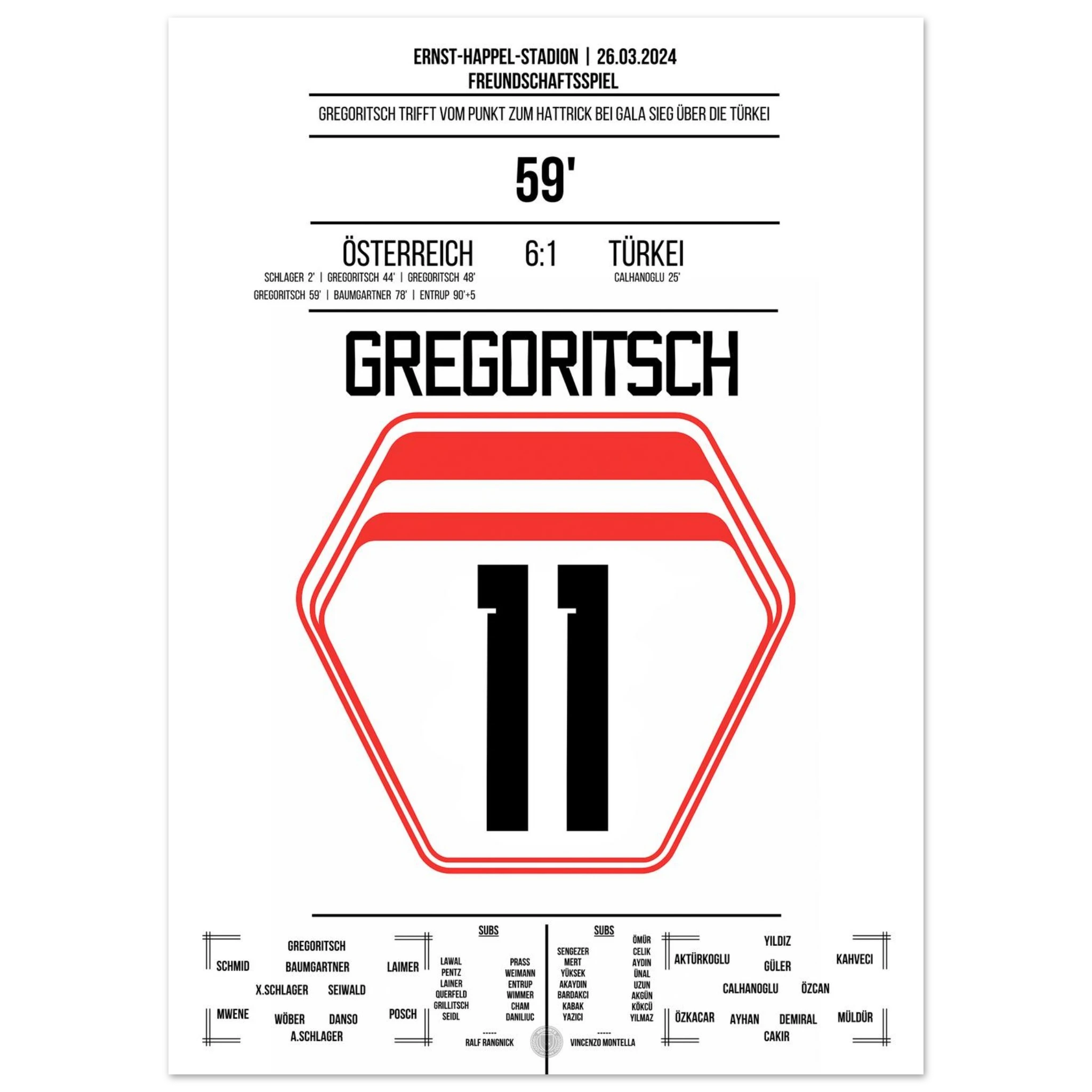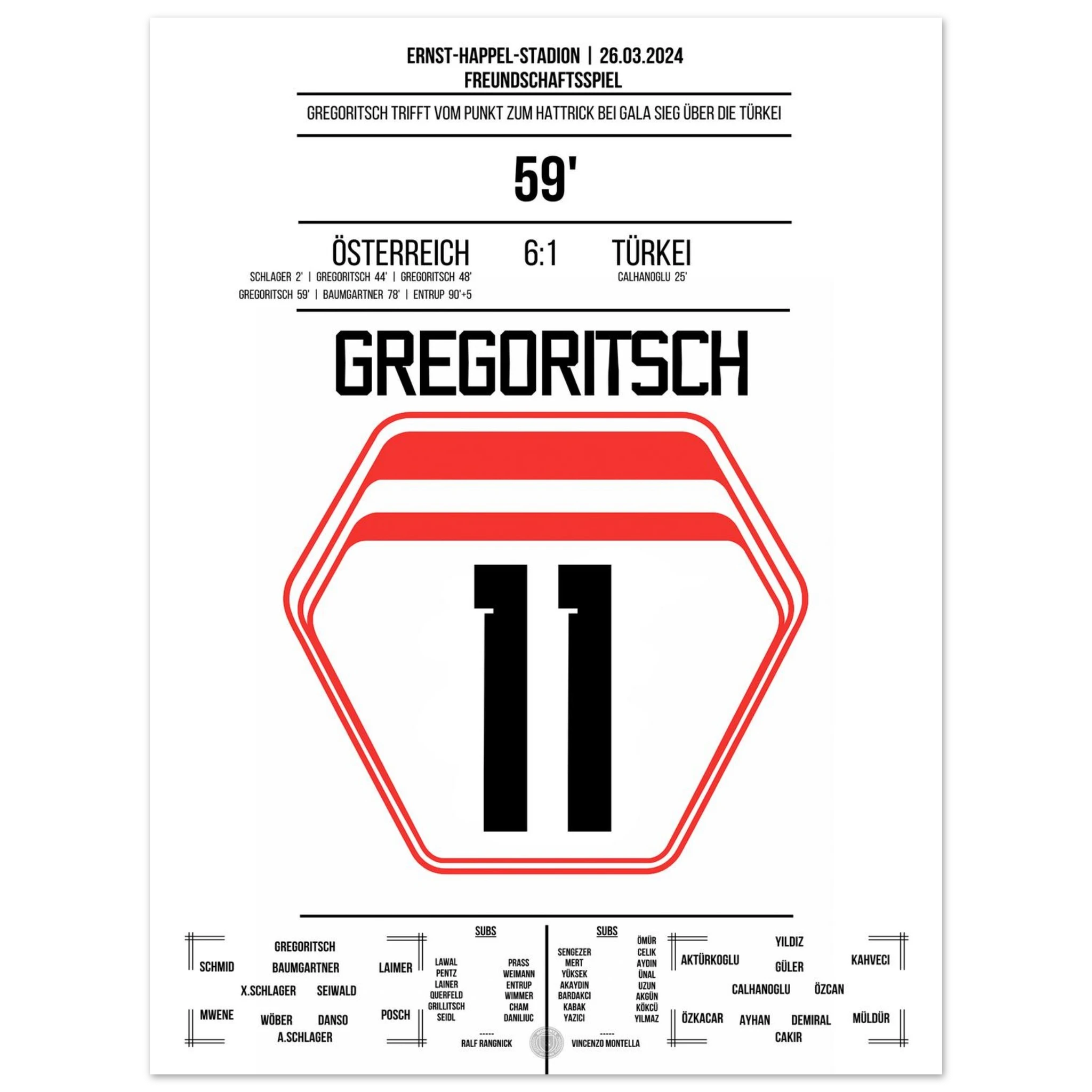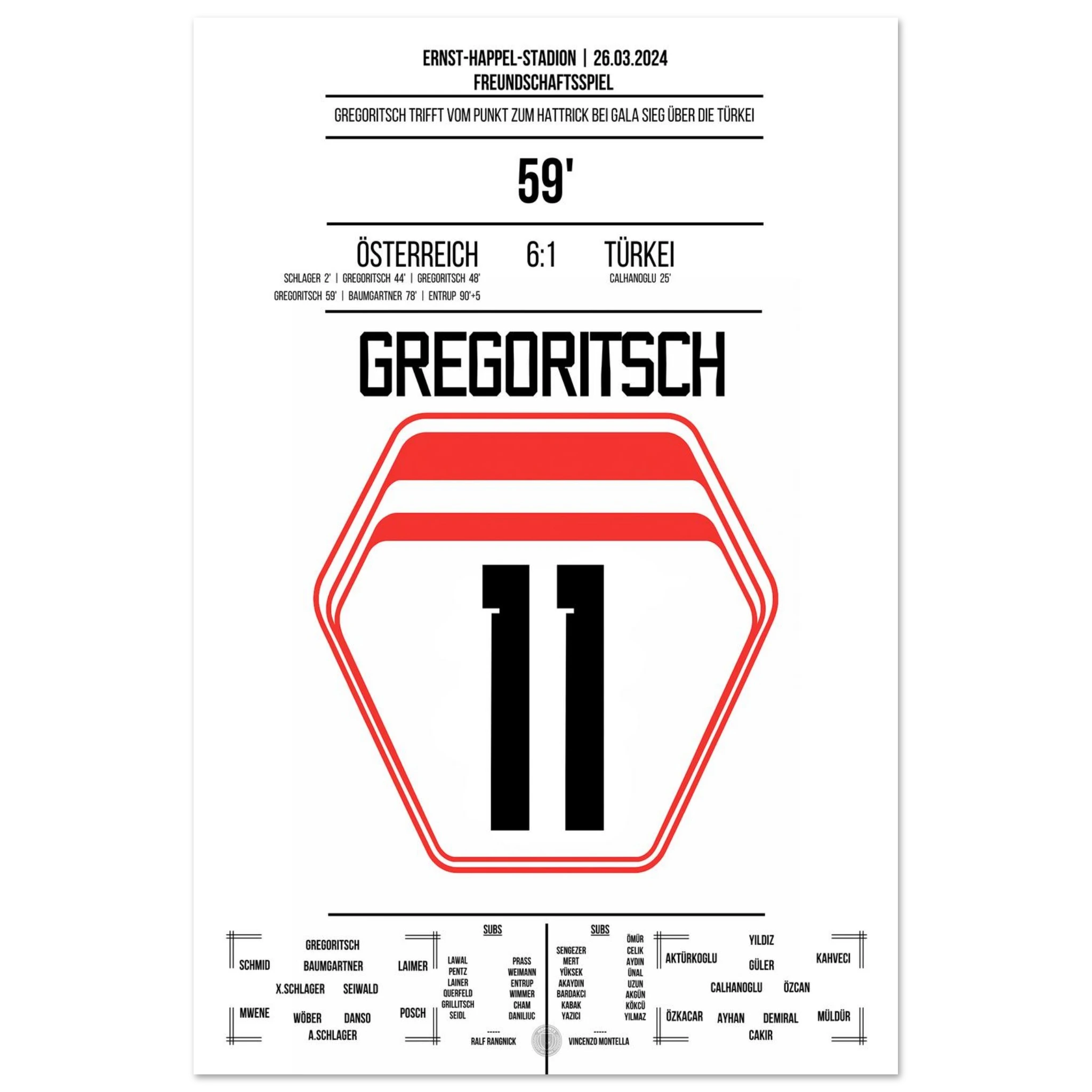 <tc>Gregoritsch's hat trick in the 6-1 victory against Turkey </tc>