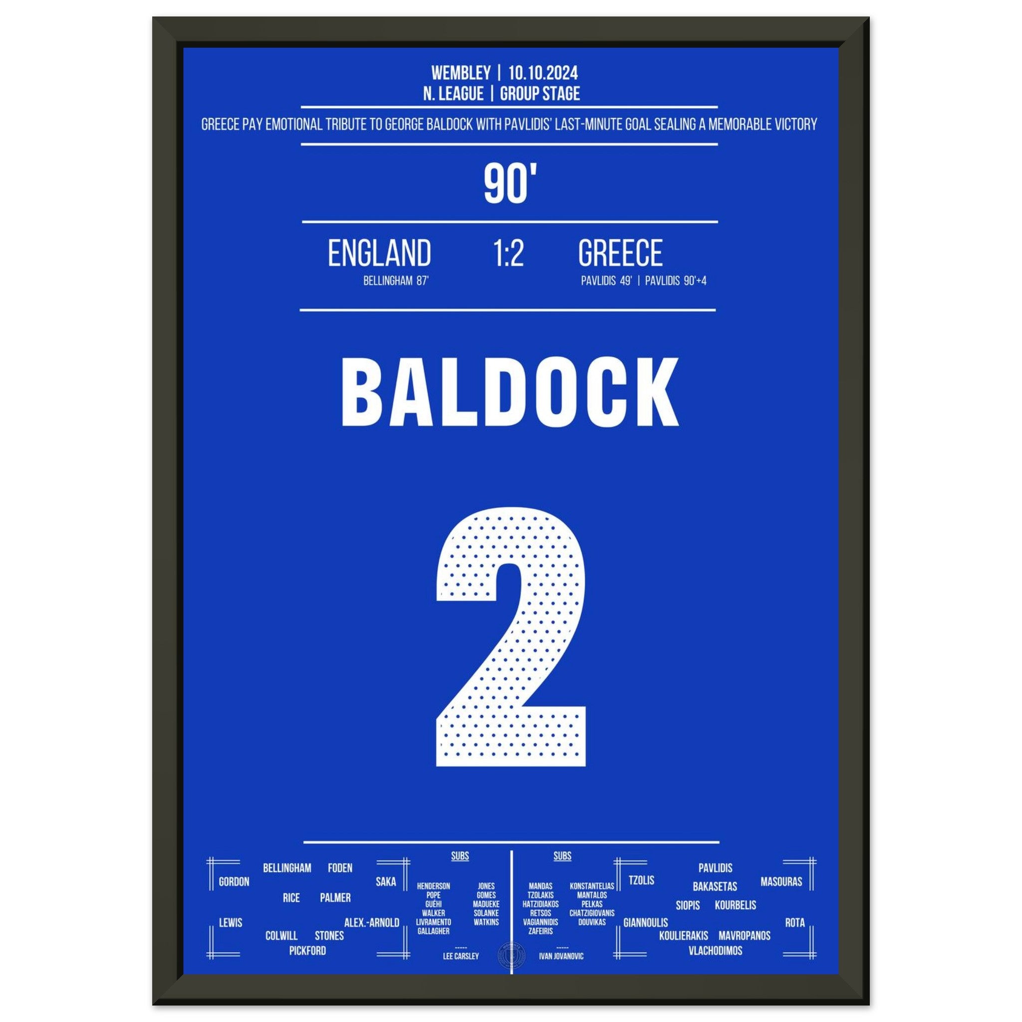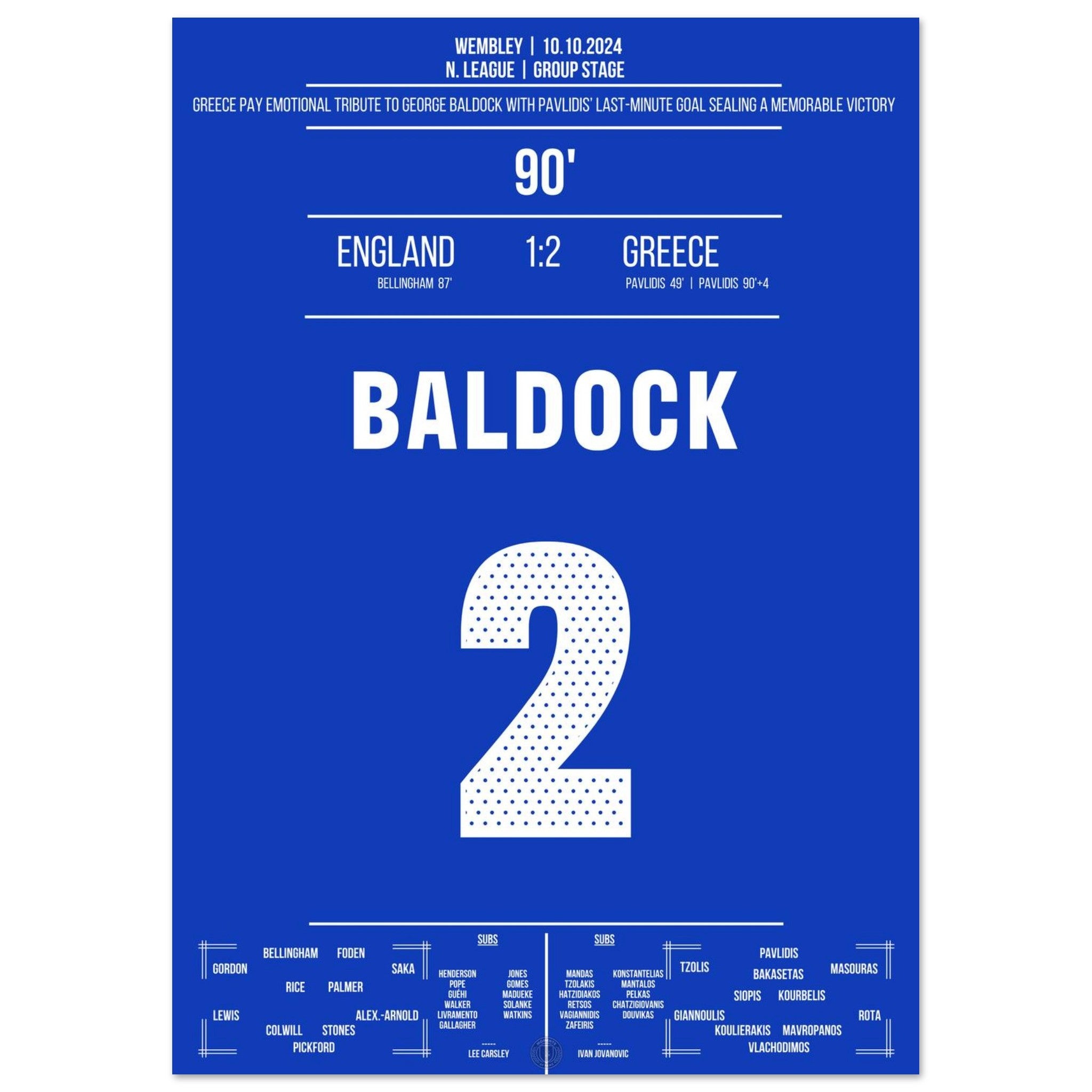 Greece dedicates George Baldock's historic victory at Wembley.