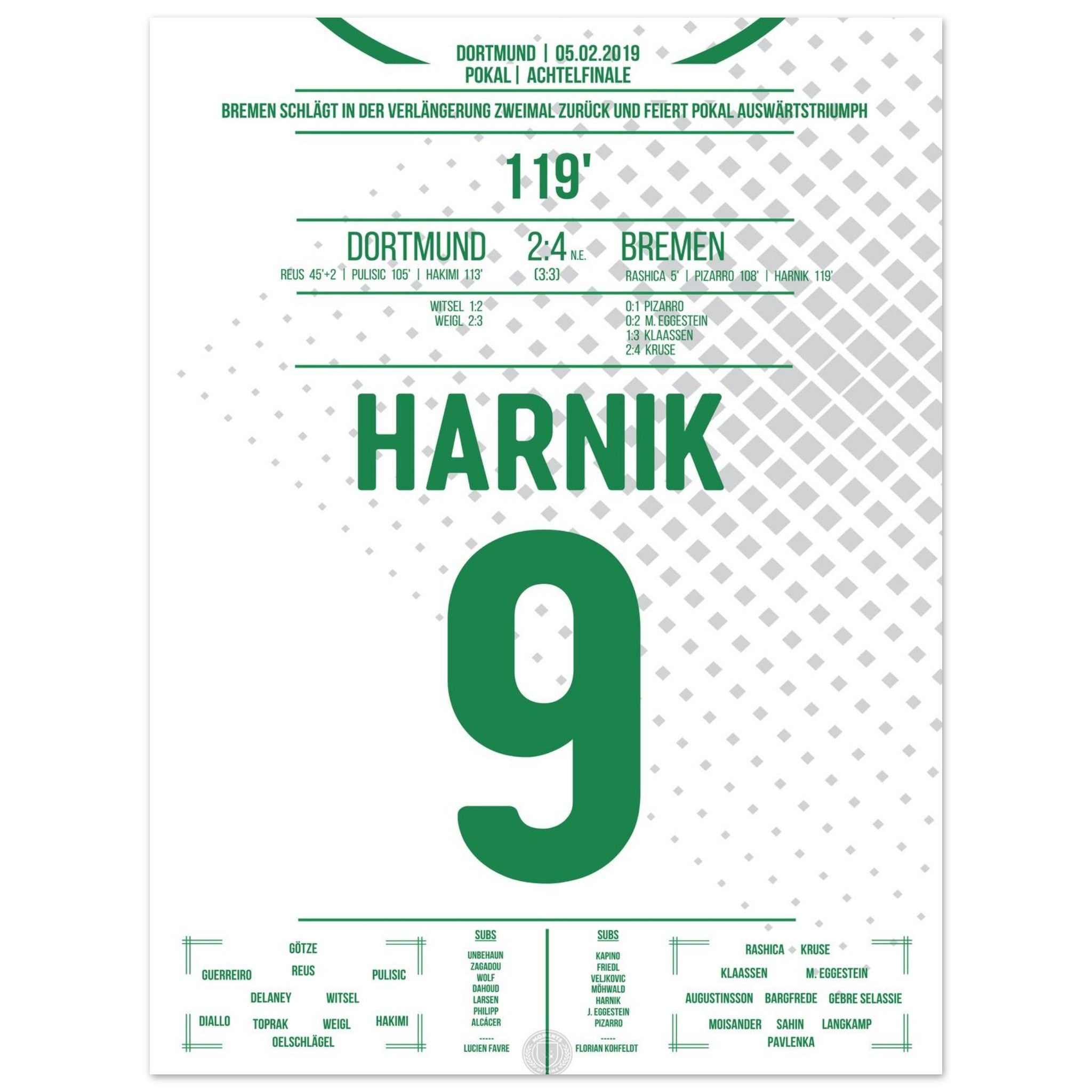 Harnik shoots Bremen into the penalty shootout of the DFB Cup quarter-finals 2019.