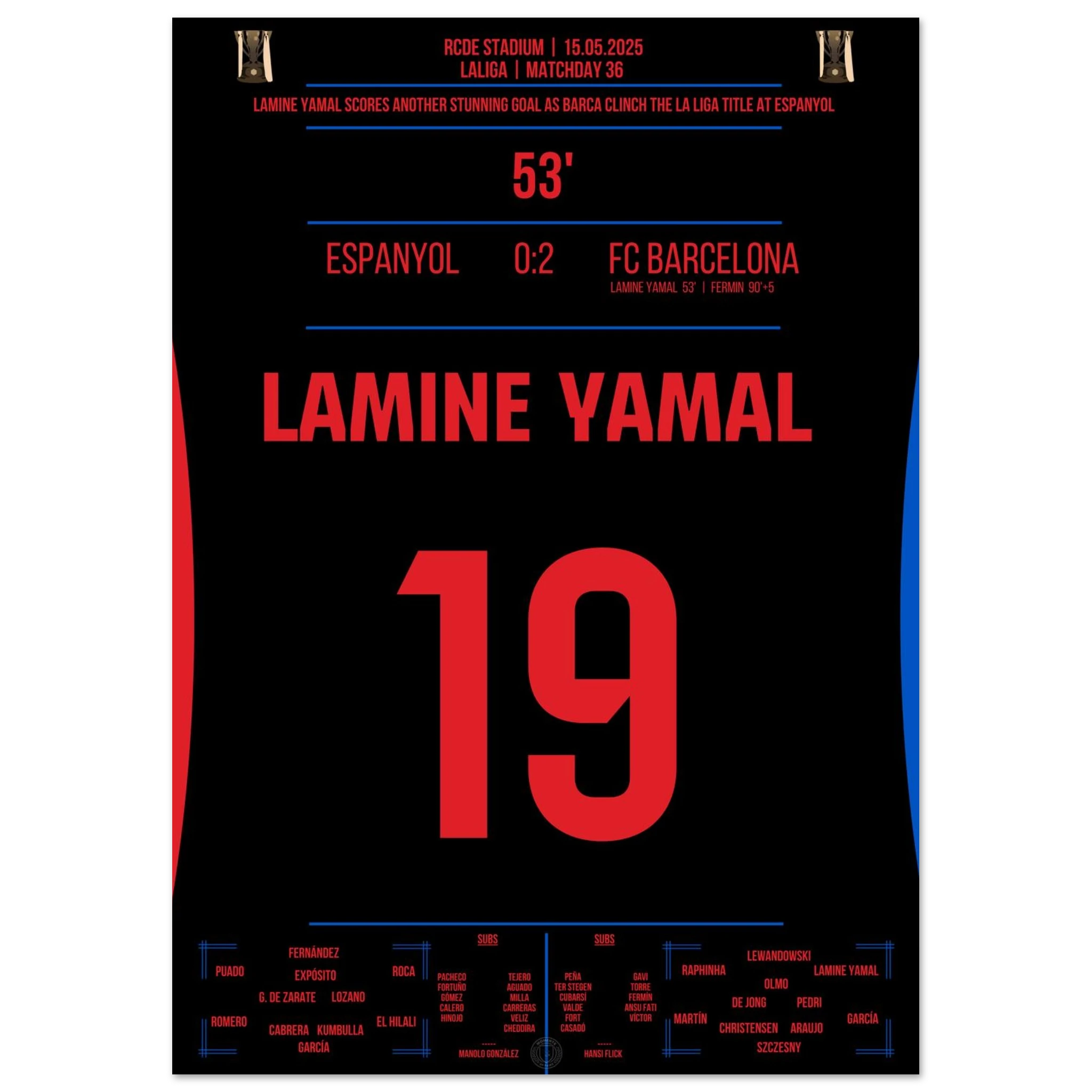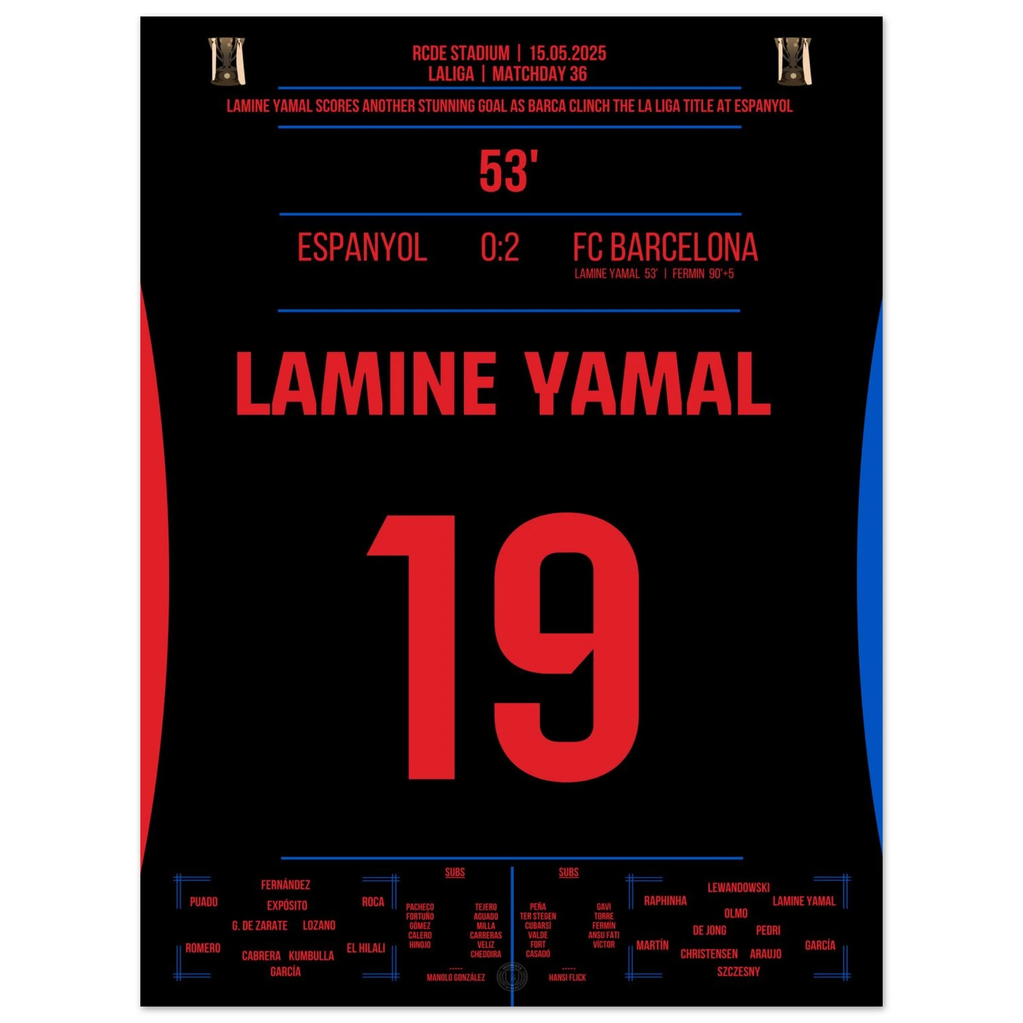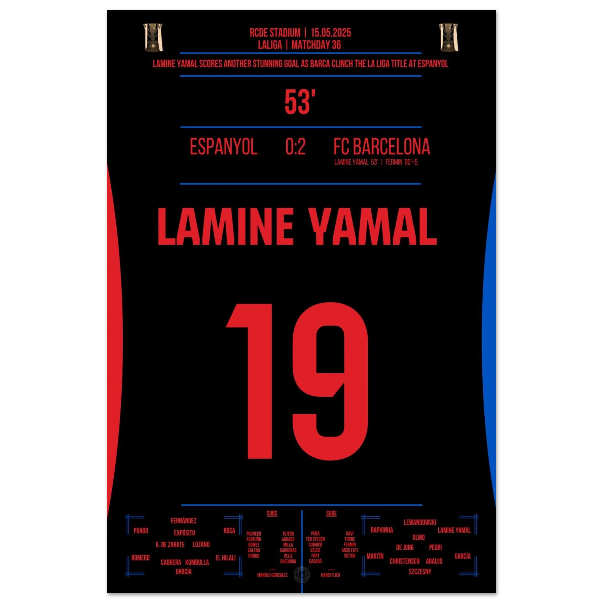 Lamine Yamal fires Barcelona to the championship in the derby at Espanyol.