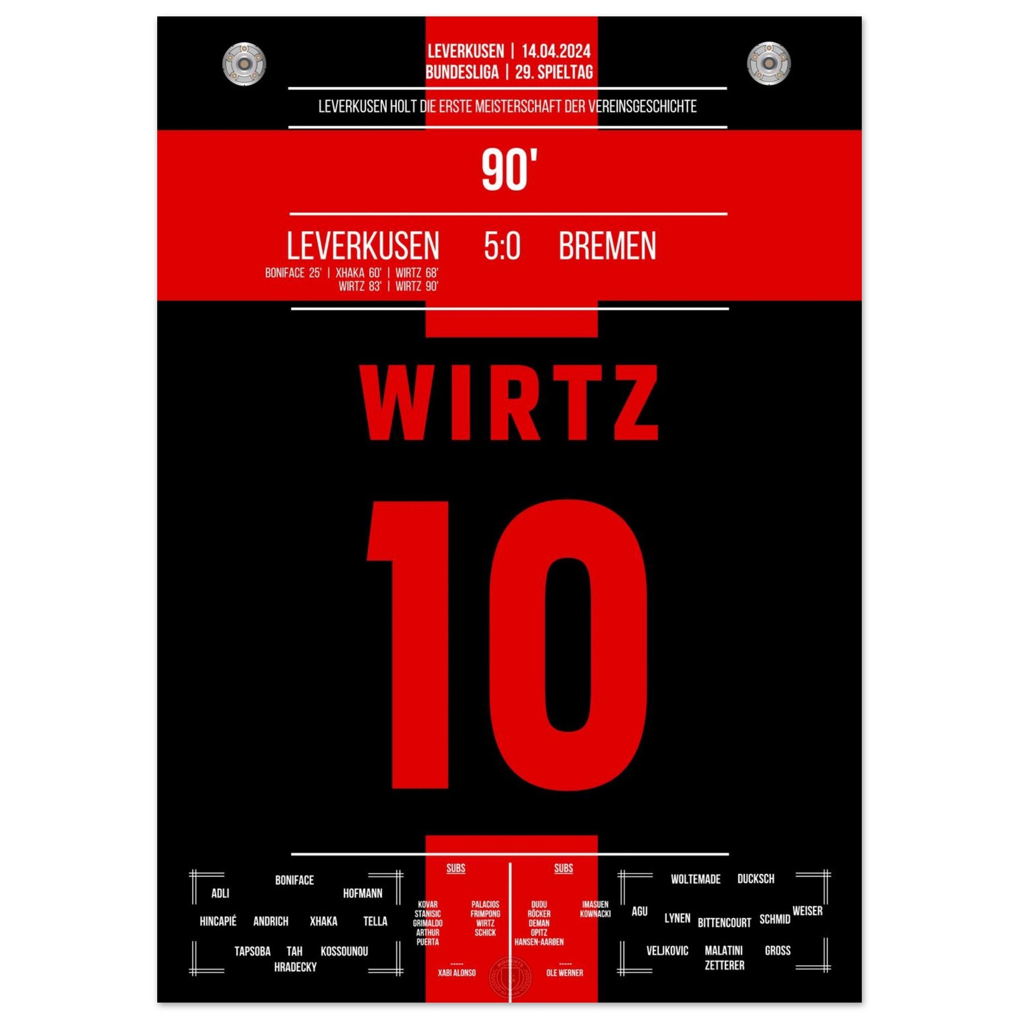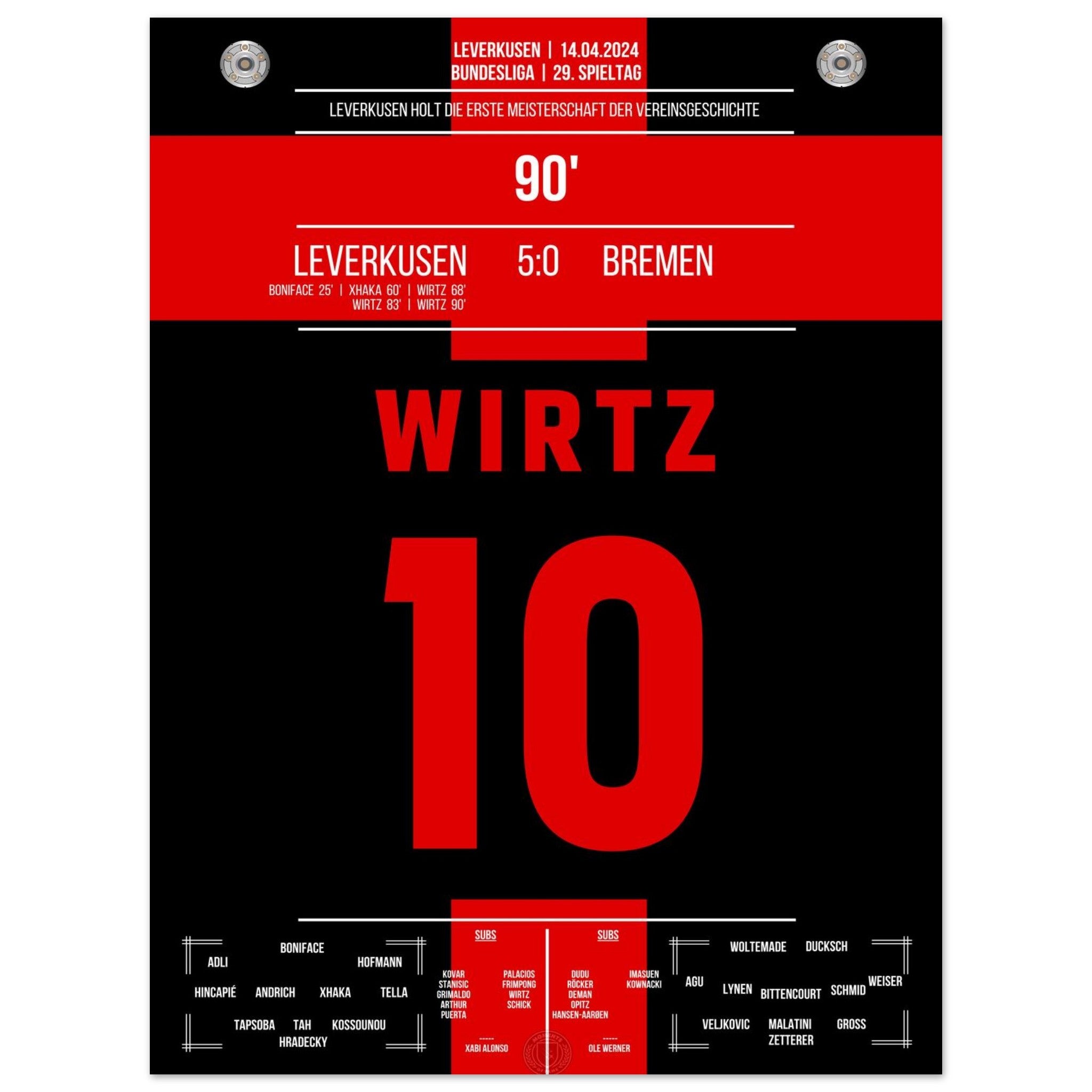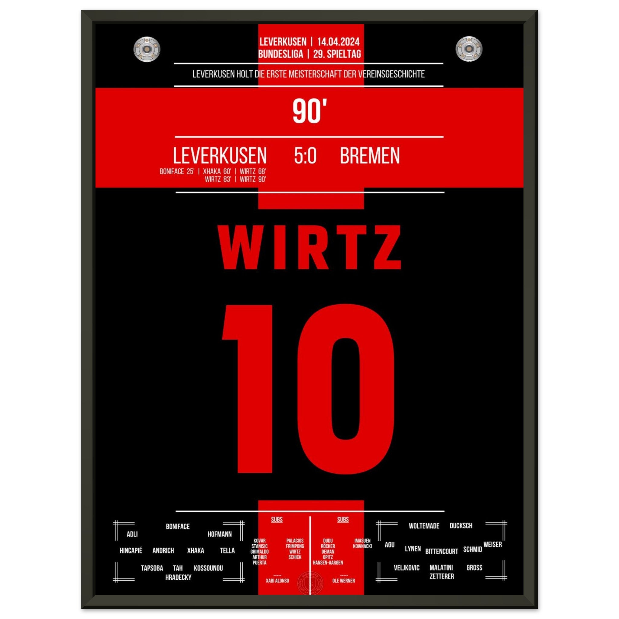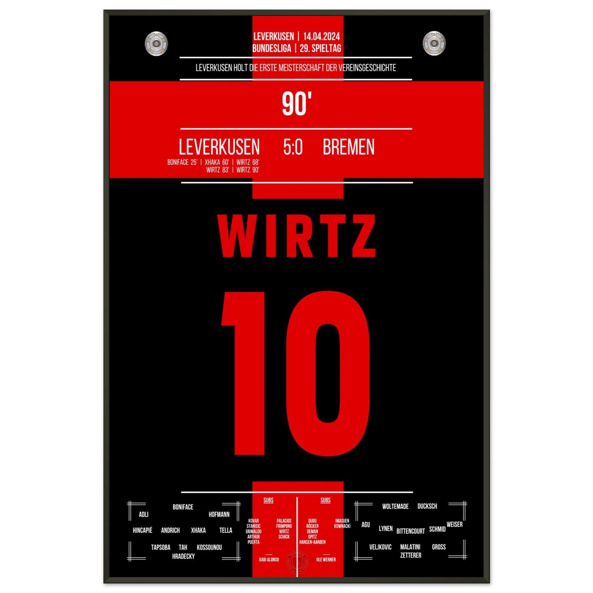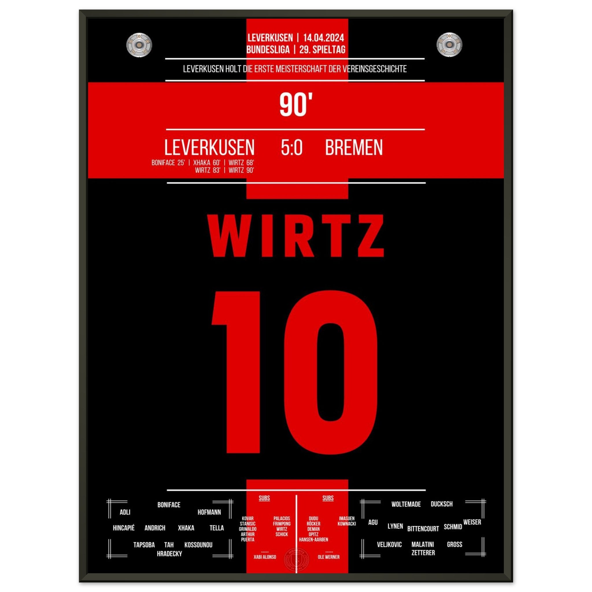 Leverkusen secures the first championship title in the club's history.