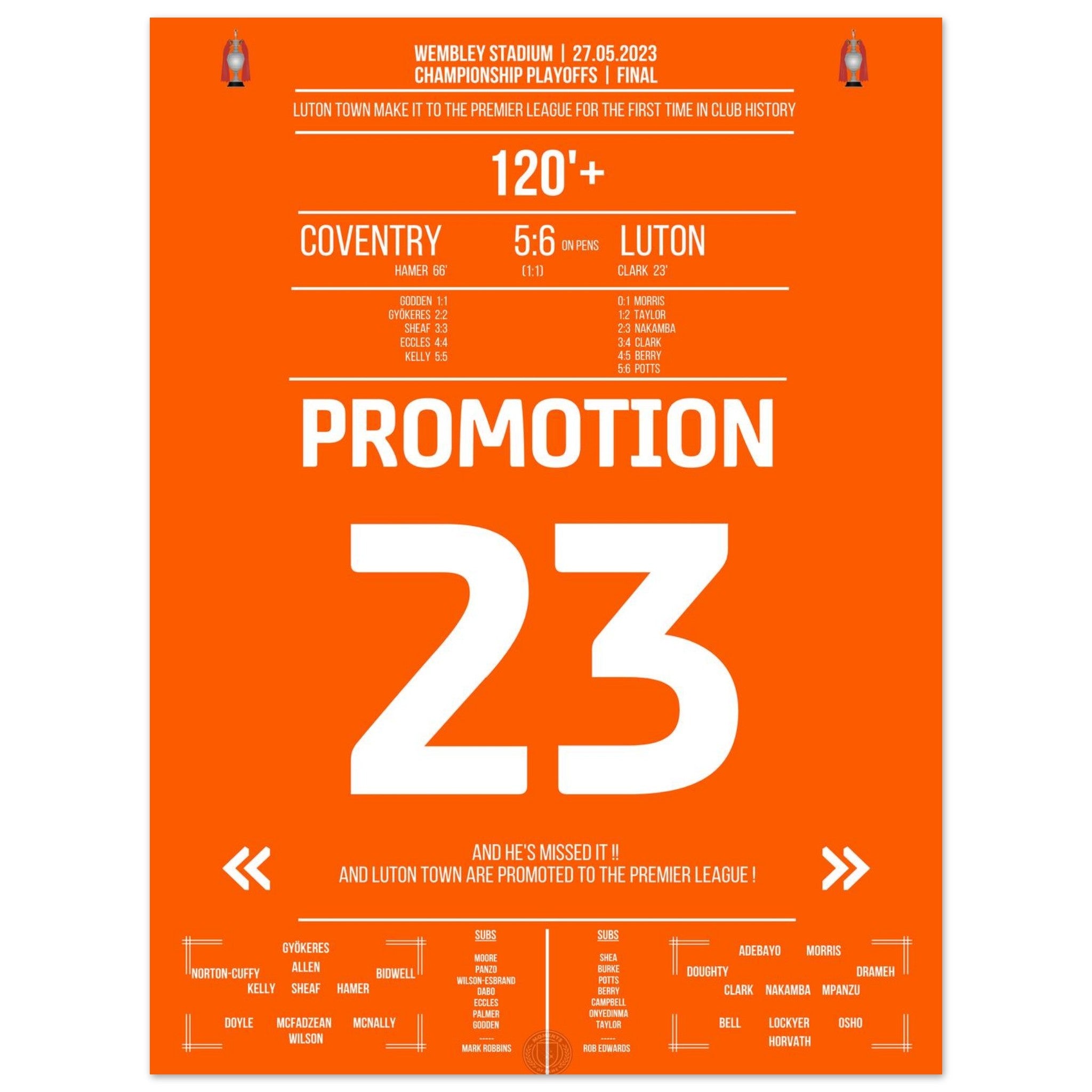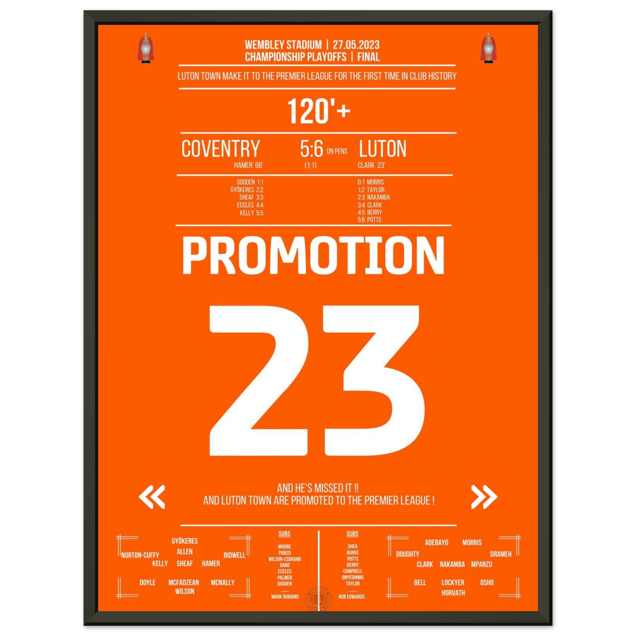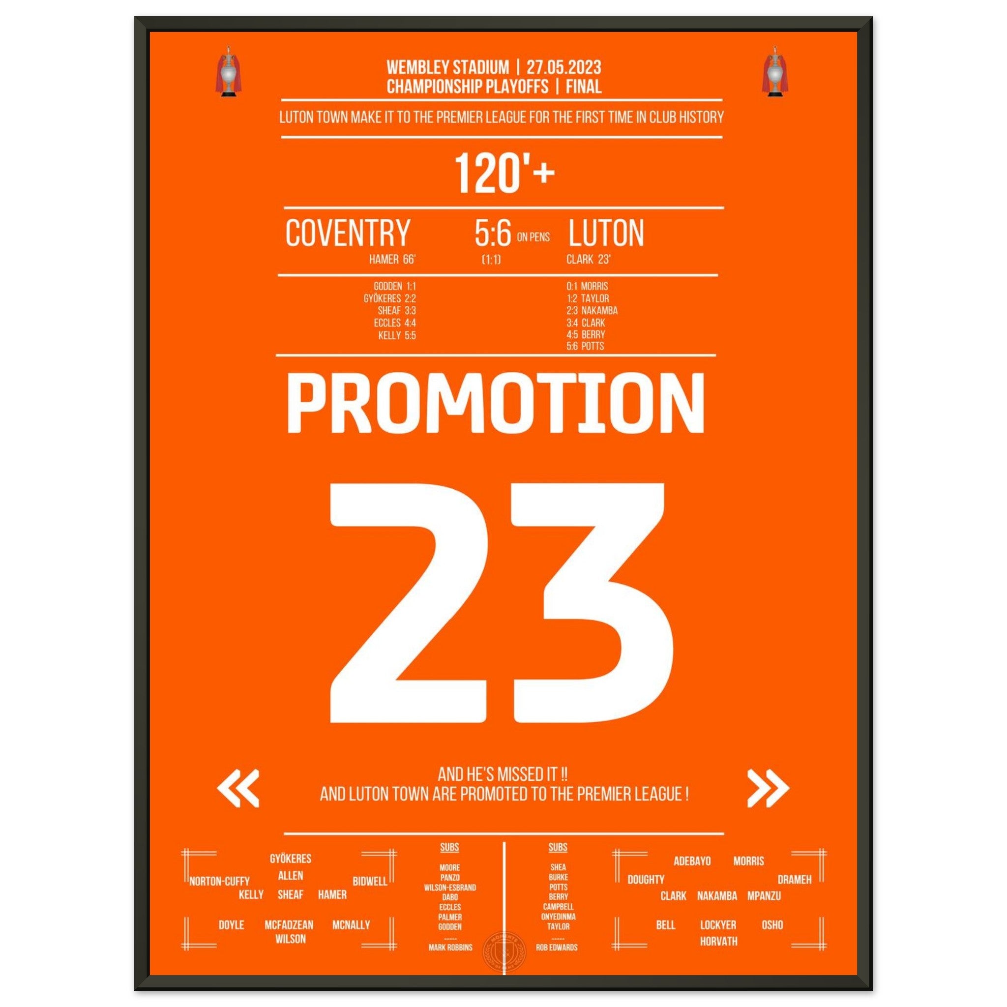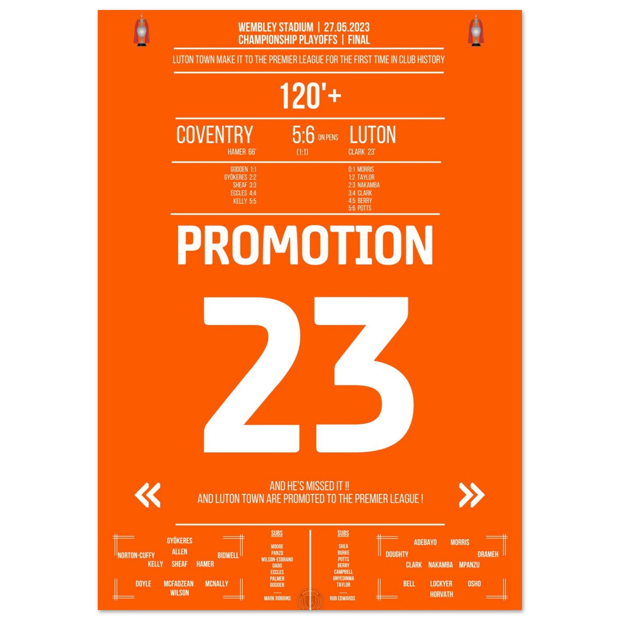 Luton secures their first promotion to the Premier League!