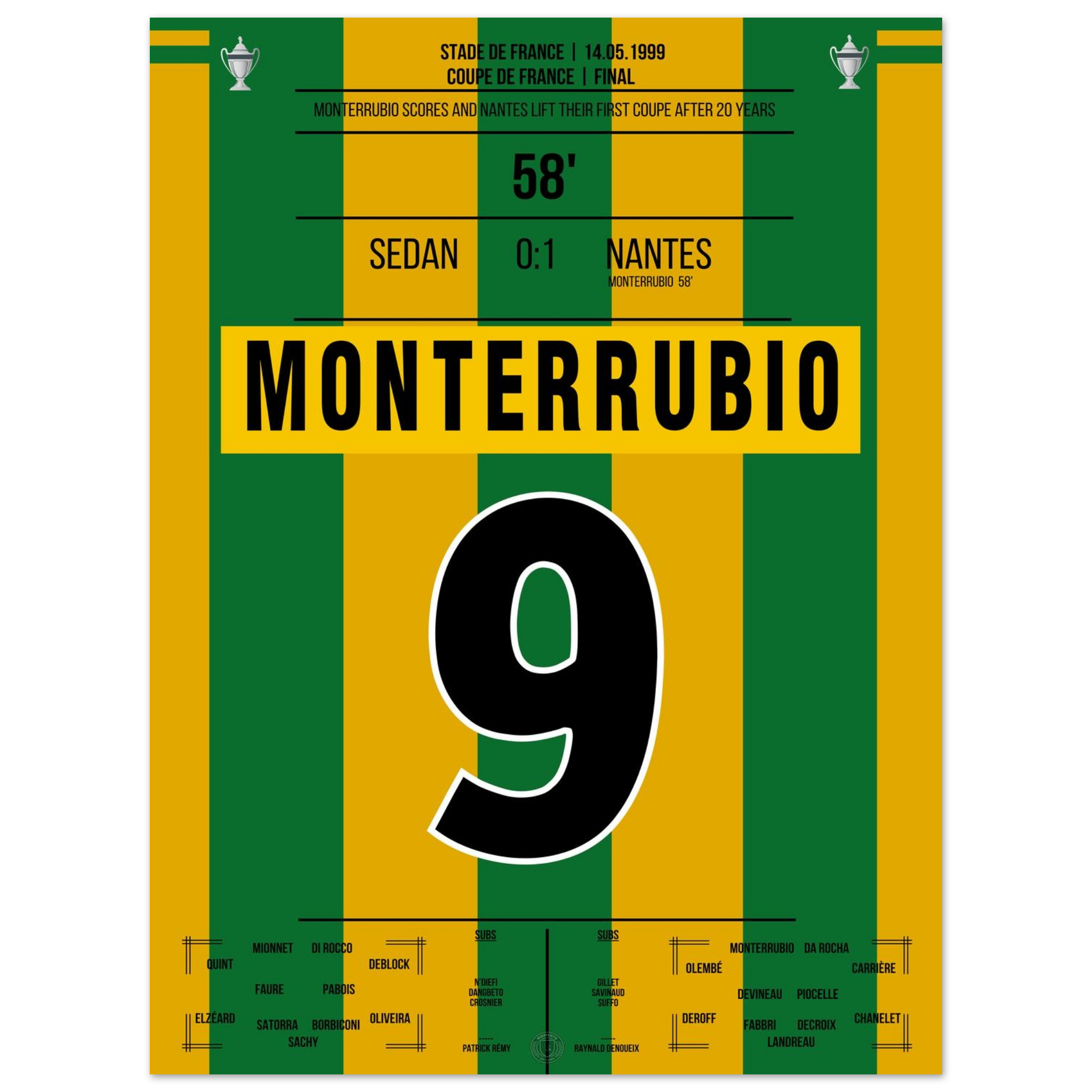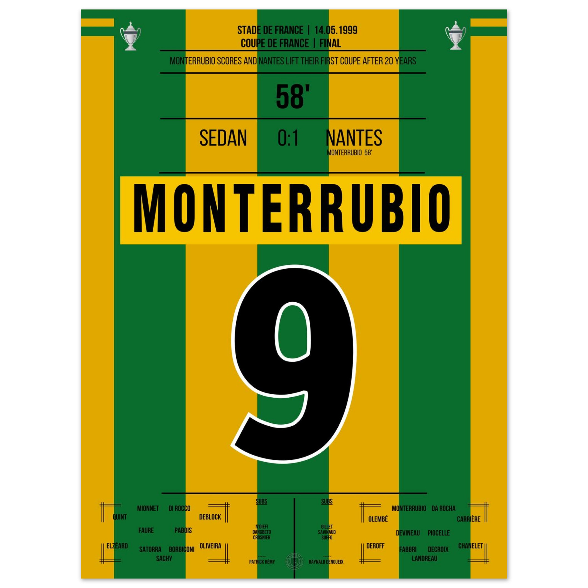14. Mai 1999 – Sedan vs. Nantes 0:1 – Monterrubio schießt Nantes zum Pokalsieg! 🟡🟢