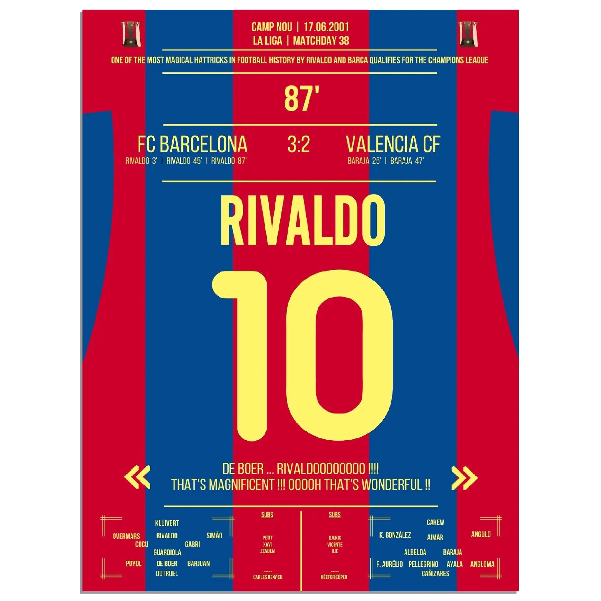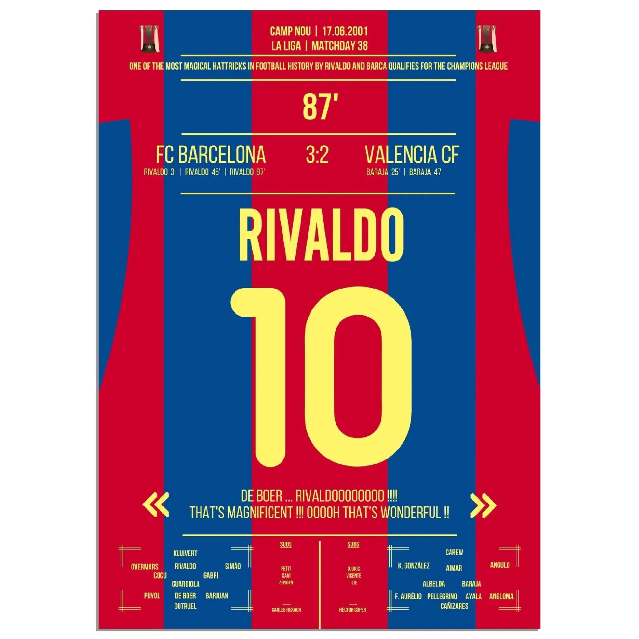 Rivaldo's magical hat-trick leads Barcelona into the Champions League.