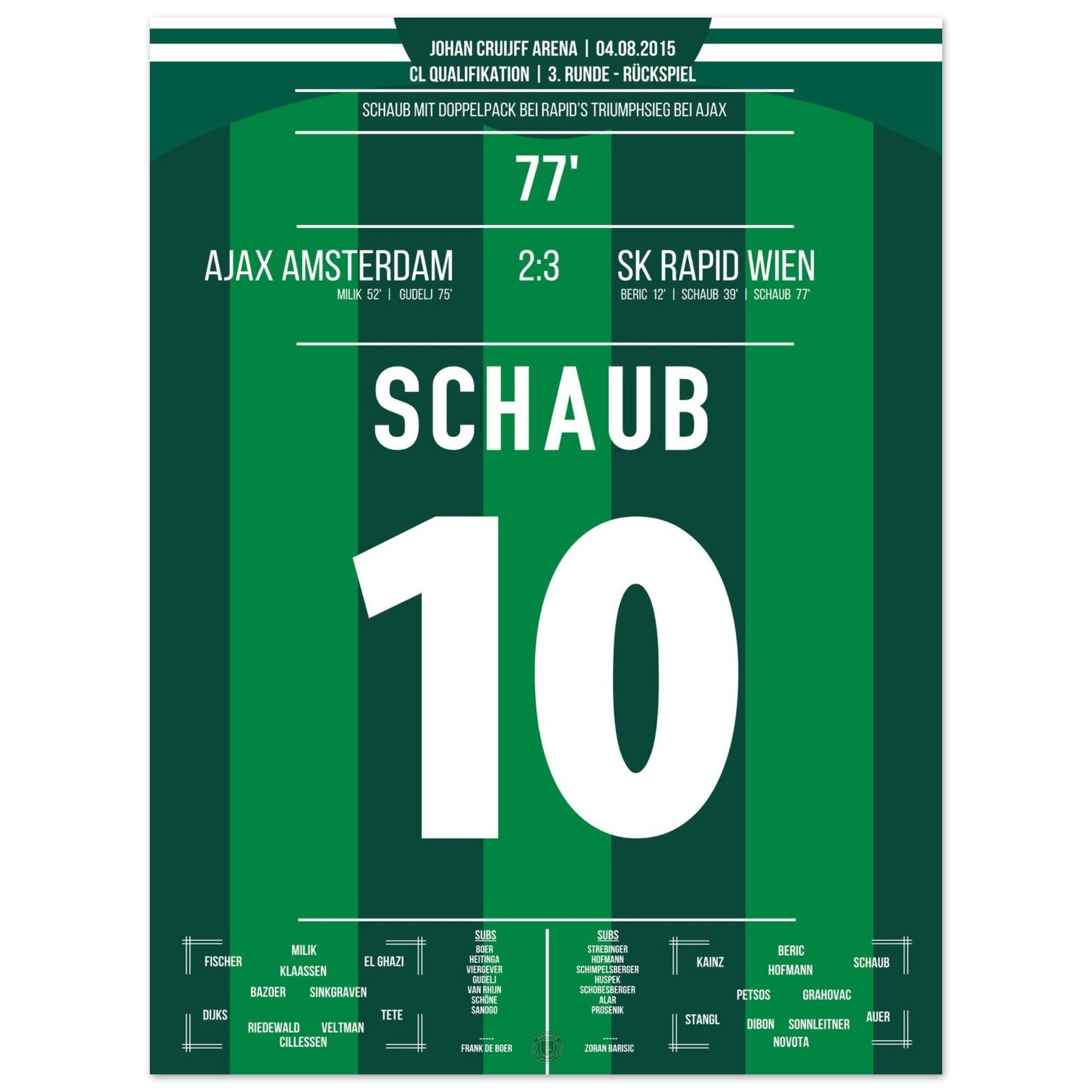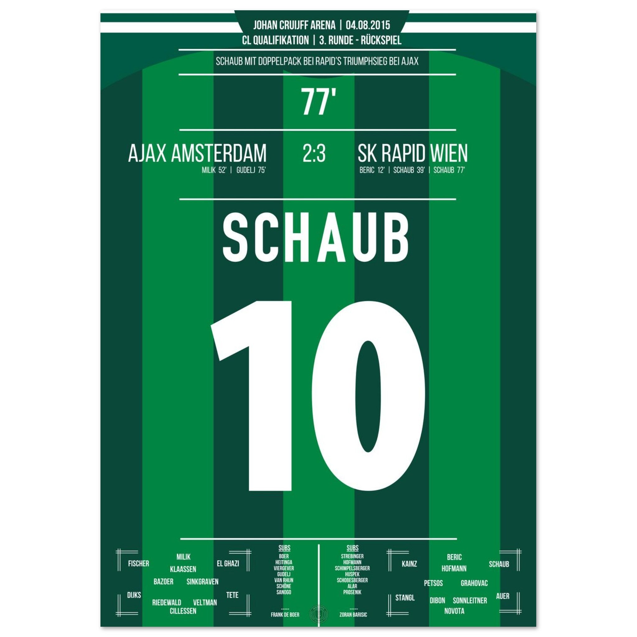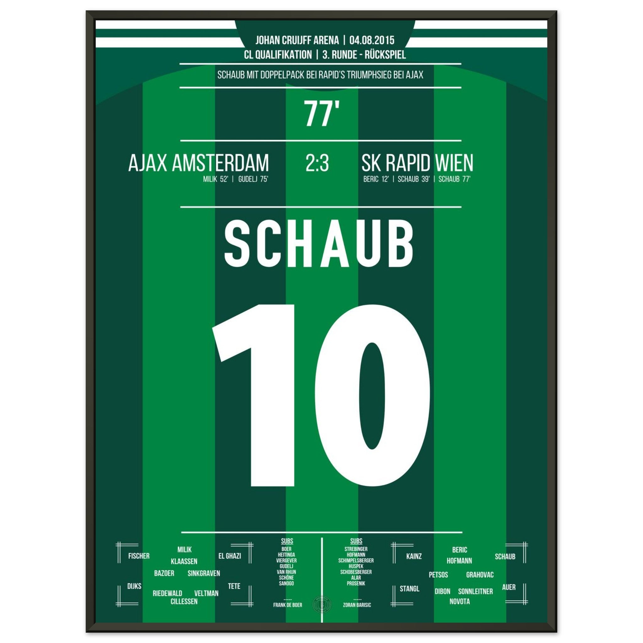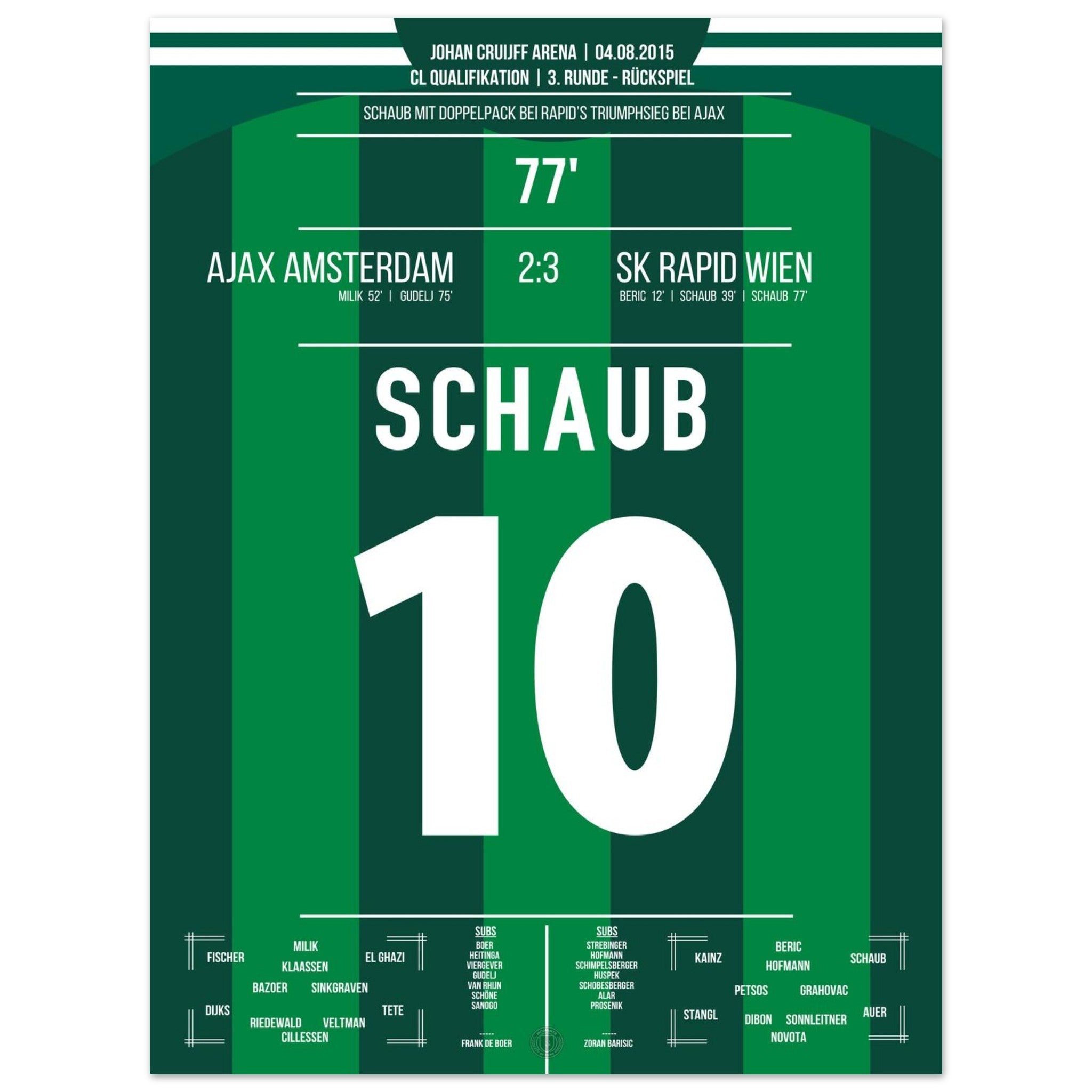Schaub scores a double to take Rapid to the next round against Ajax.