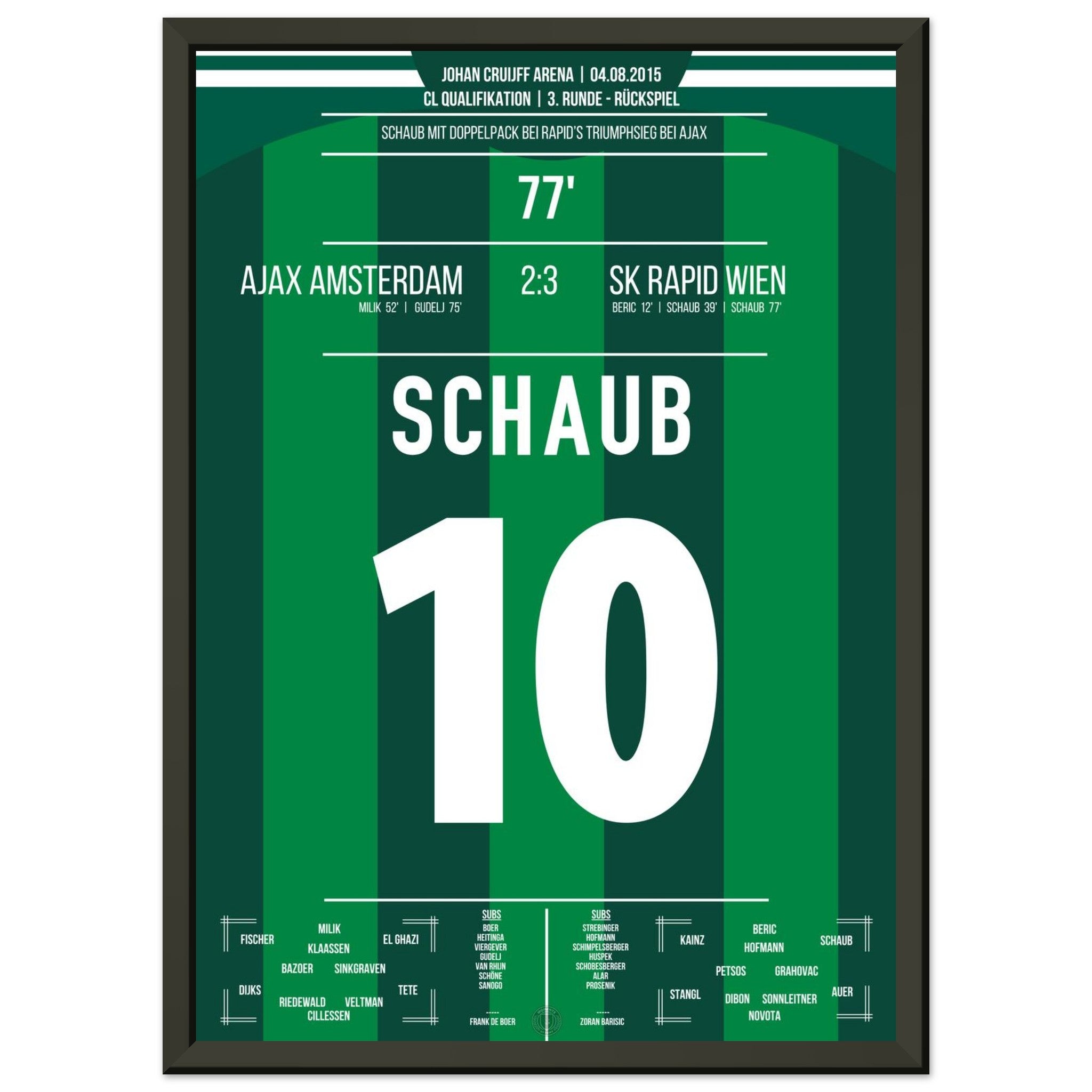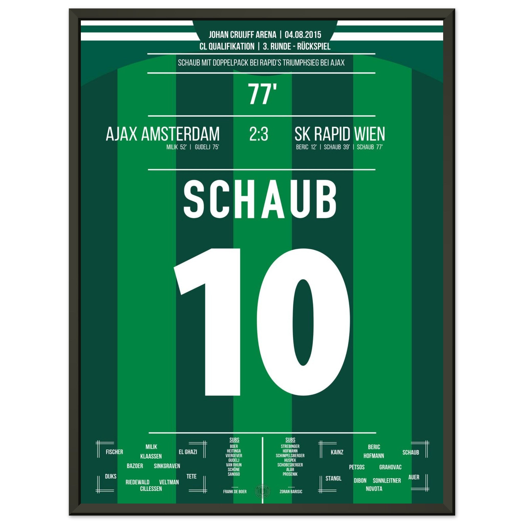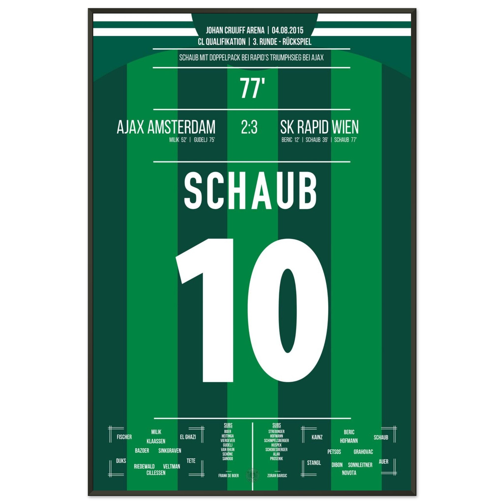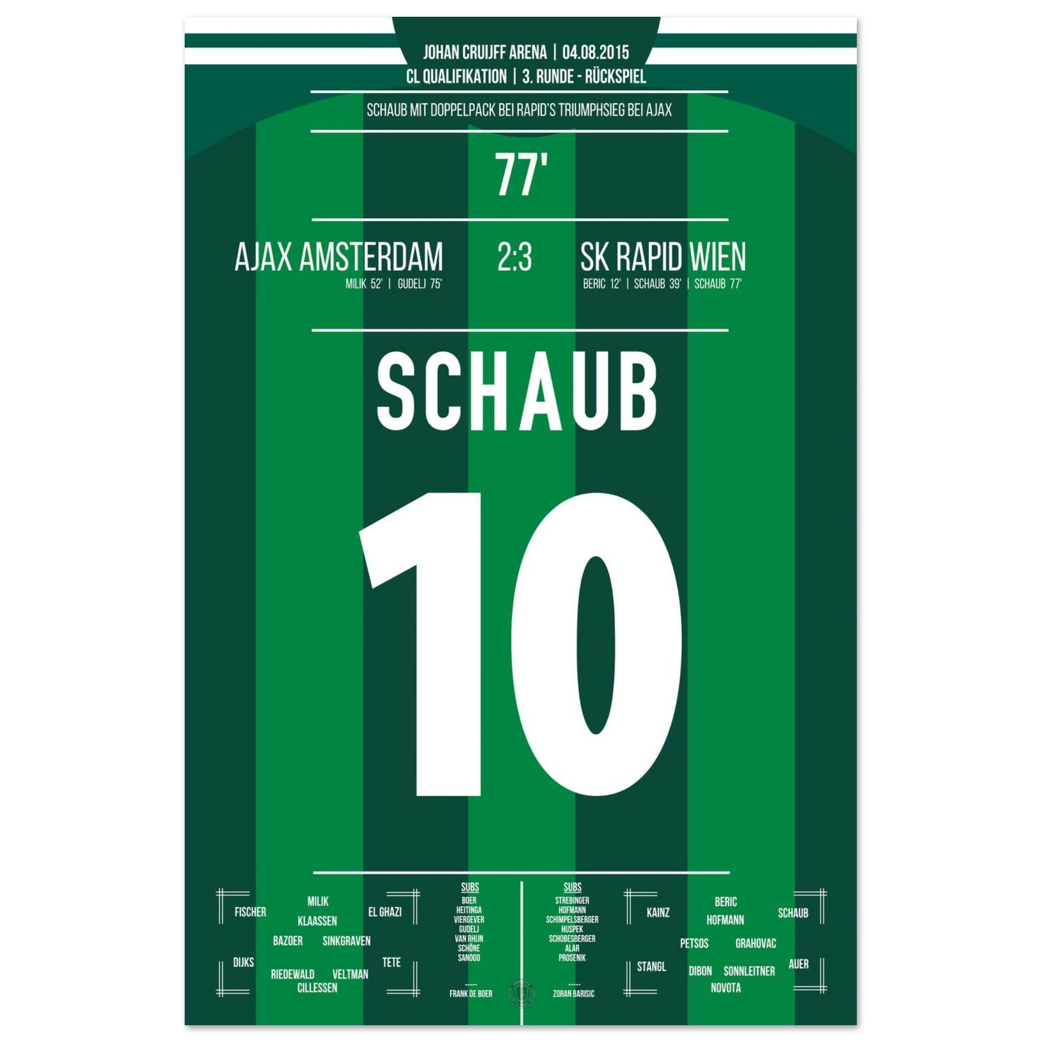 Schaub scores a double to take Rapid to the next round against Ajax.