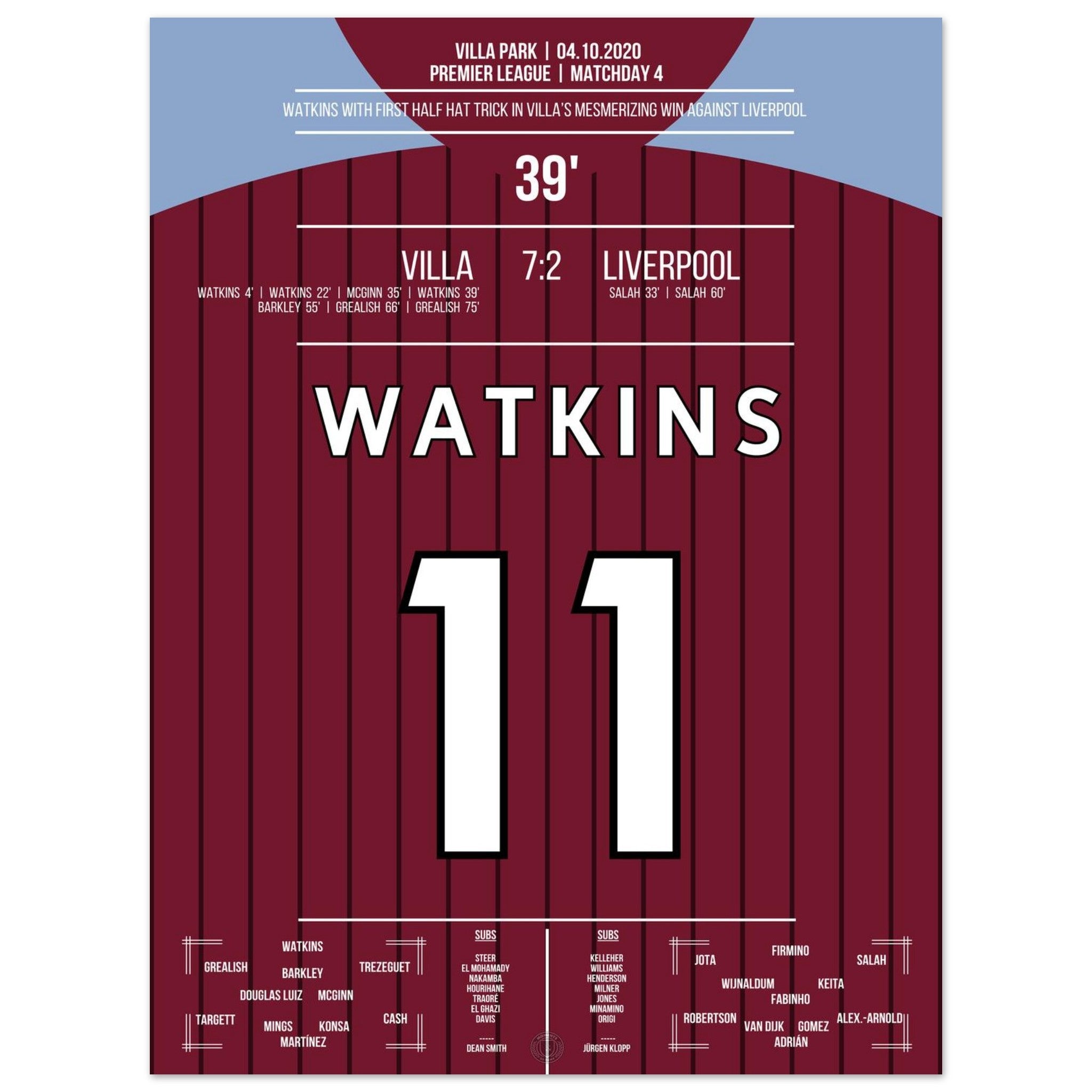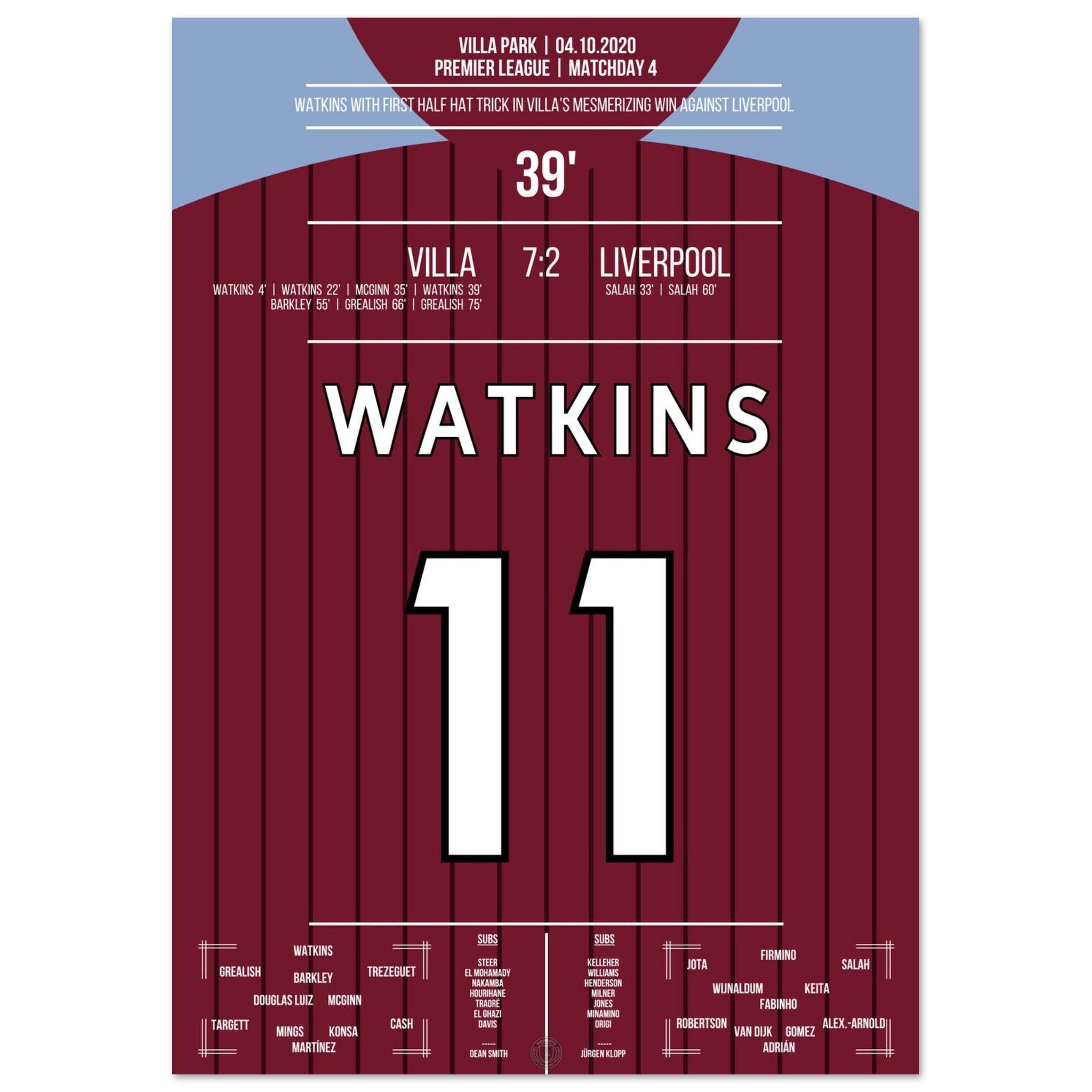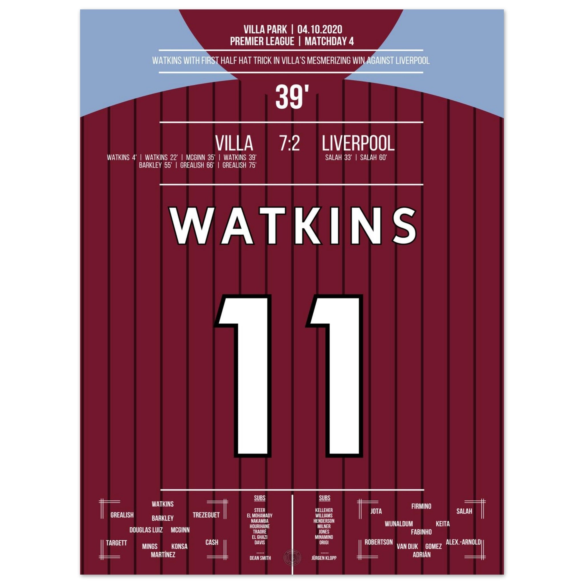 Watkins' hat-trick in Villa's legendary 7-2 victory against Liverpool