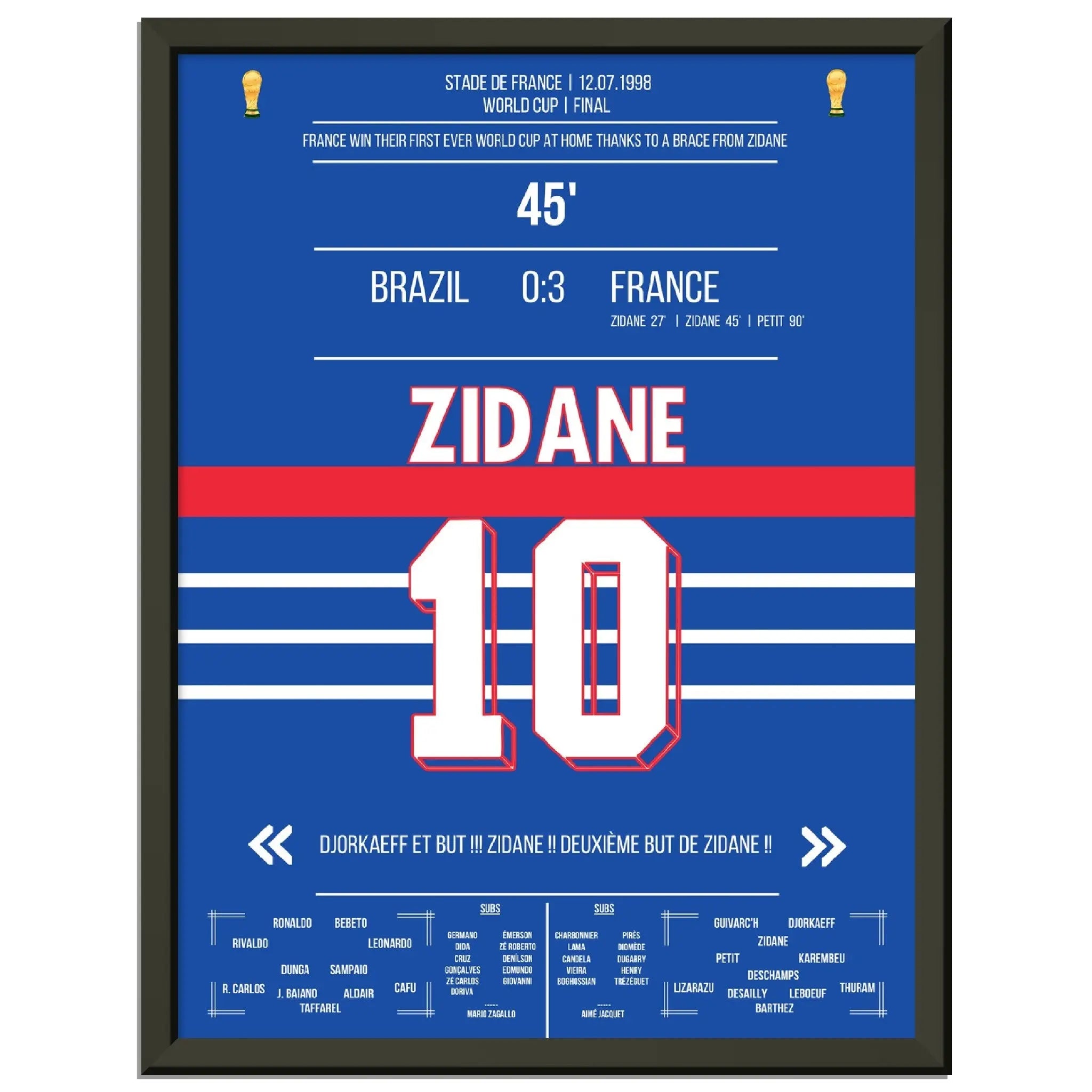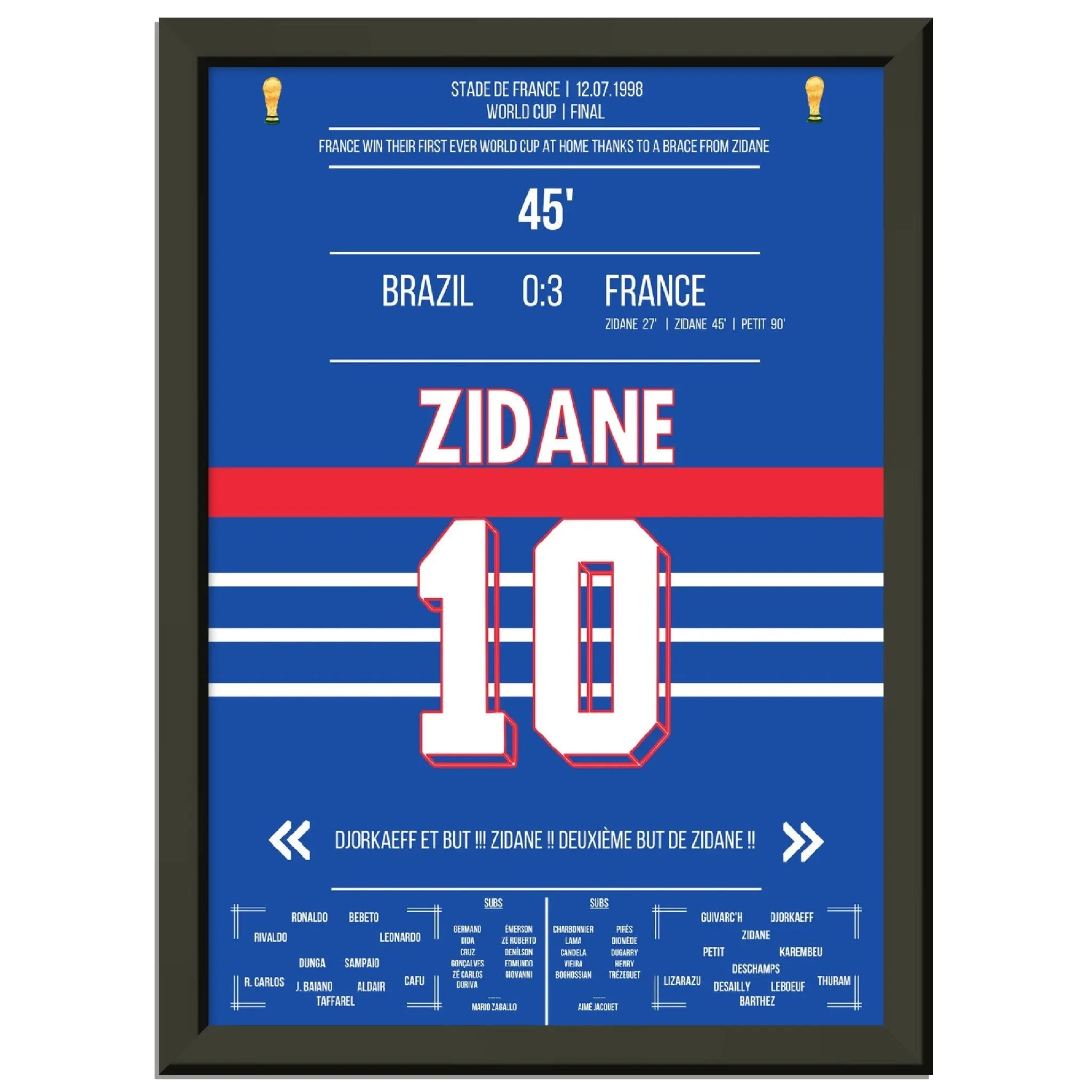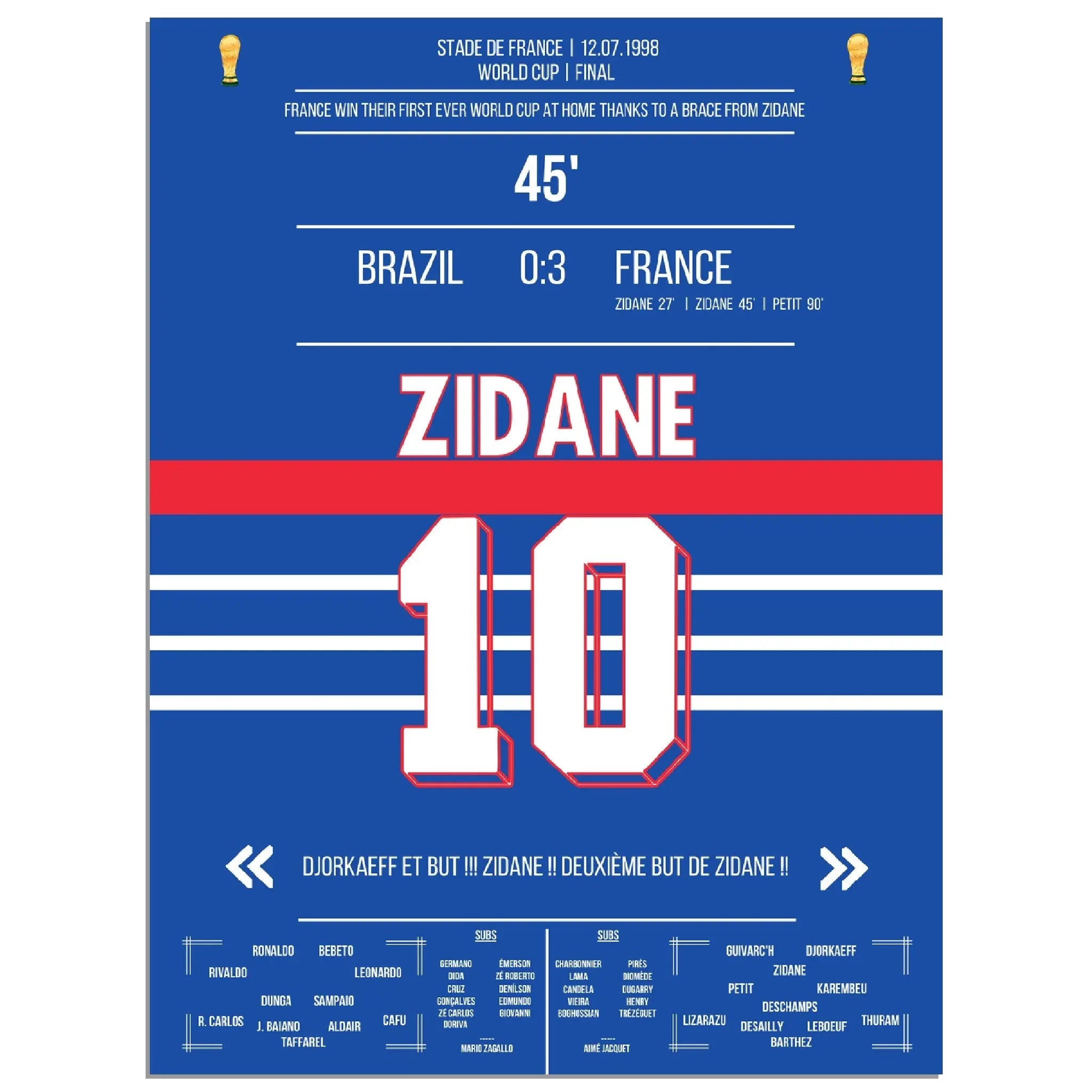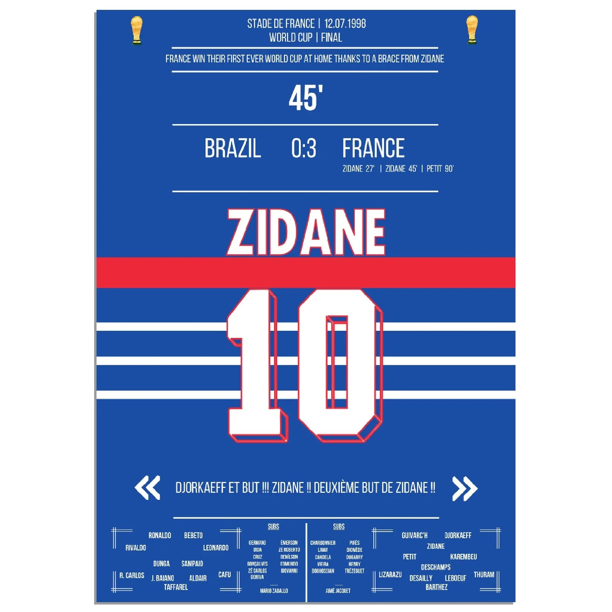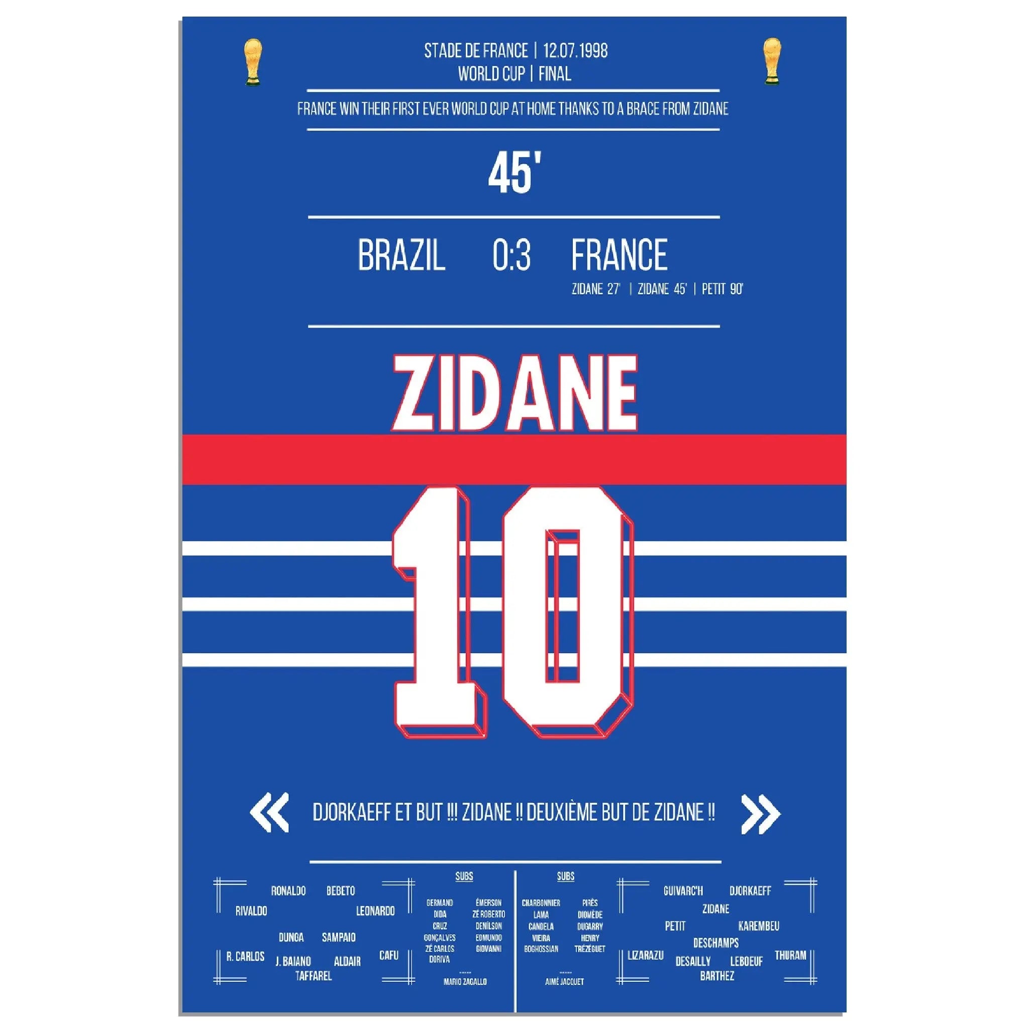 Zidane's header double pack for France's first World Cup title in 1998 against Brazil.
