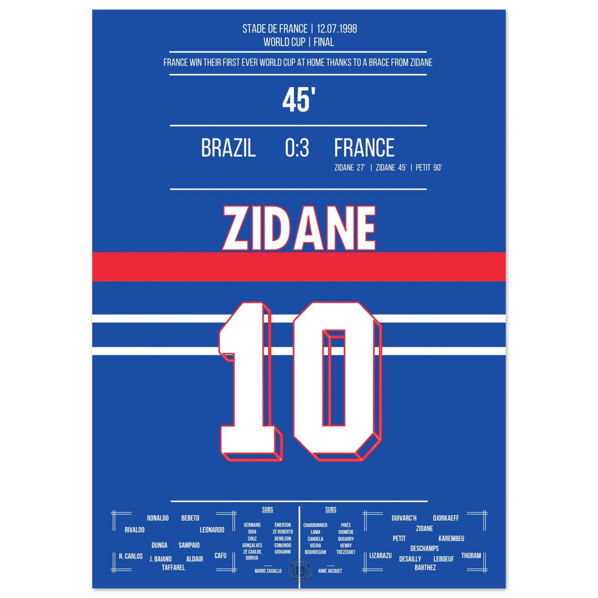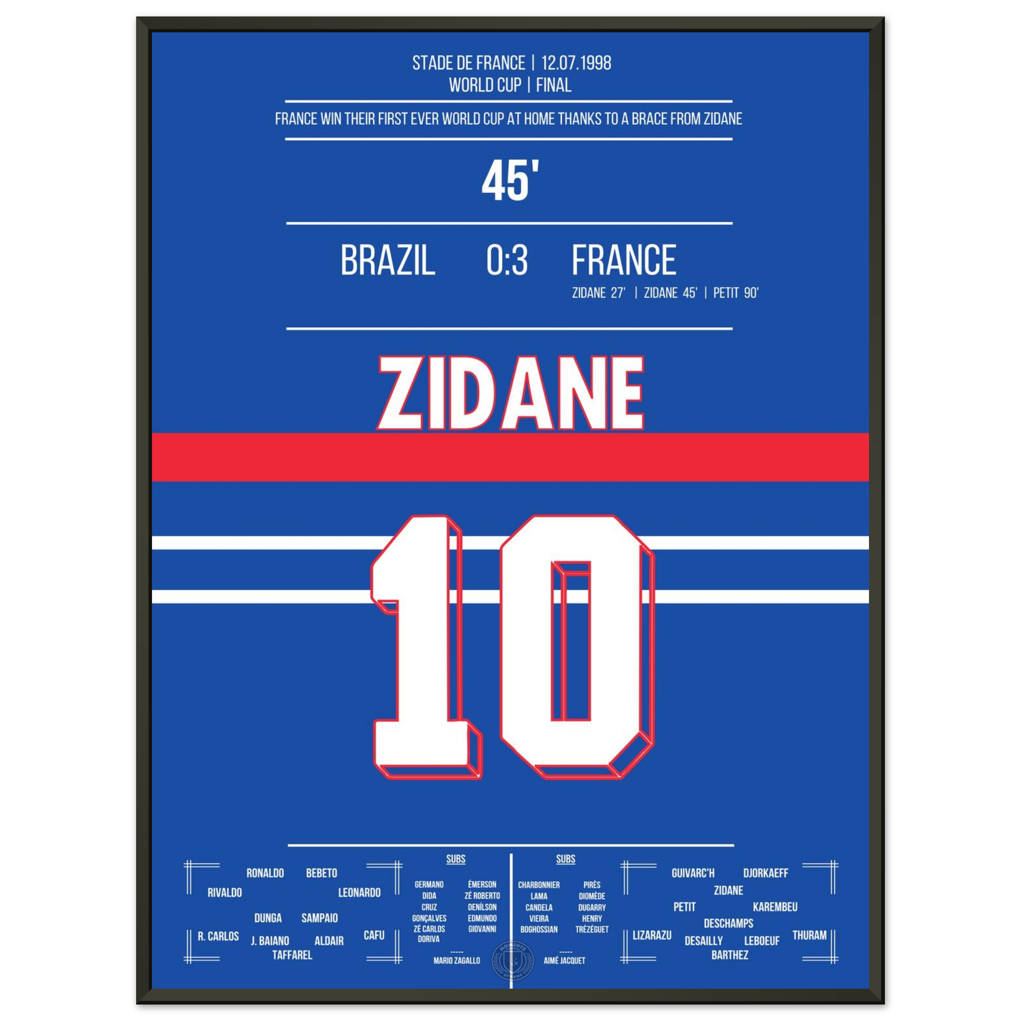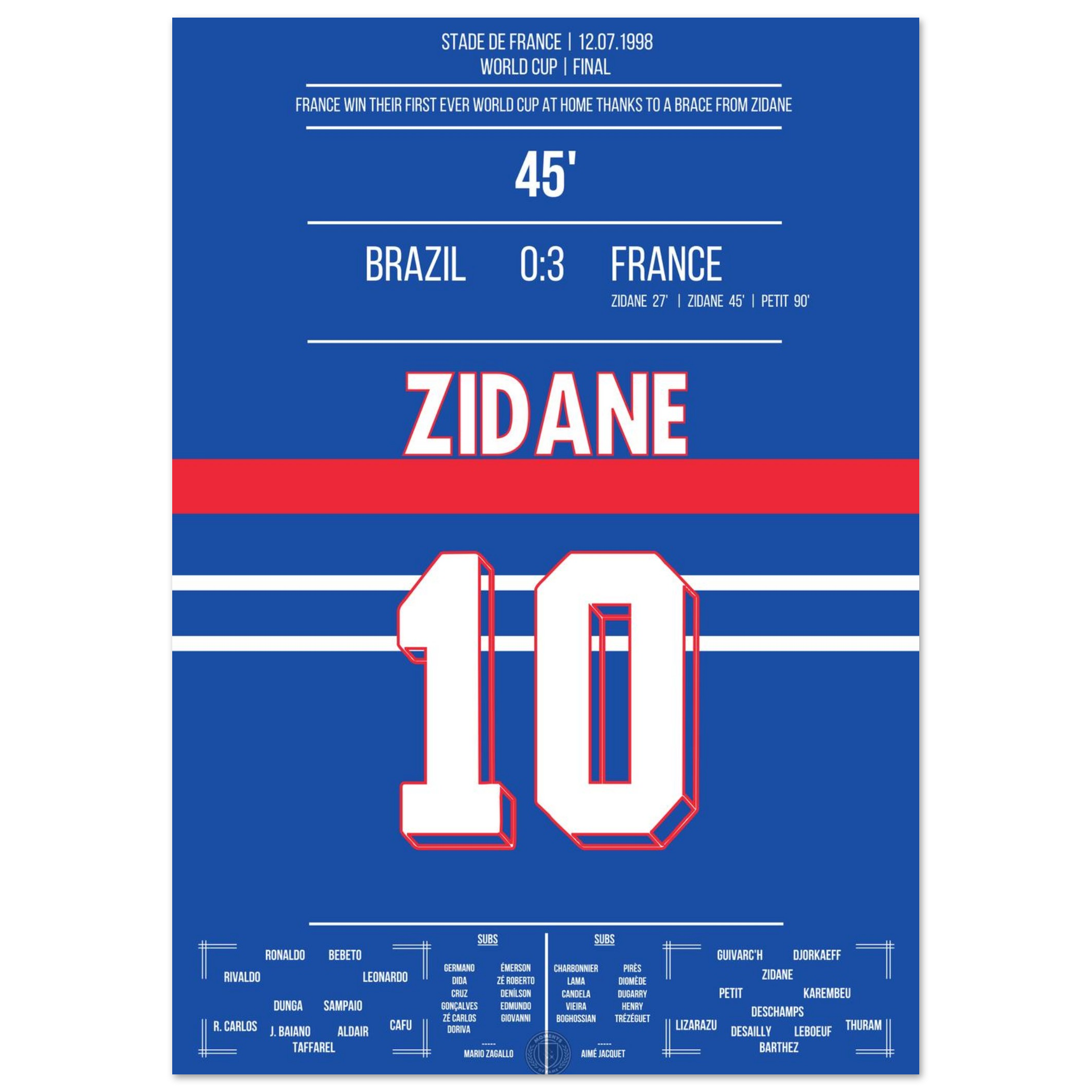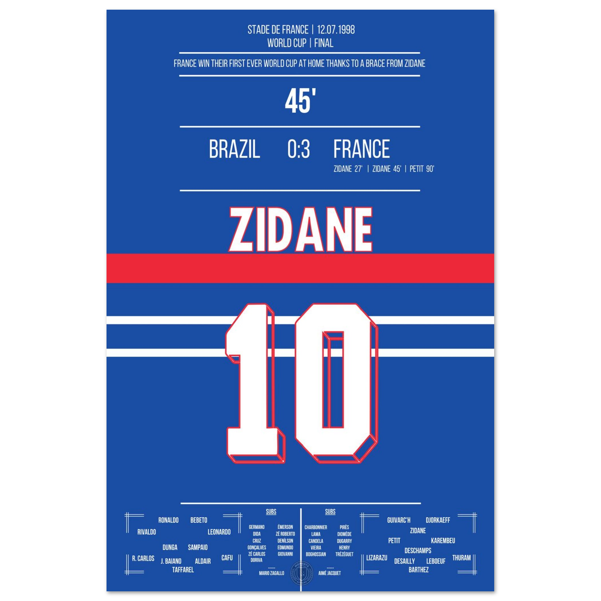 Zidane's header double pack for France's first World Cup title in 1998 against Brazil.
