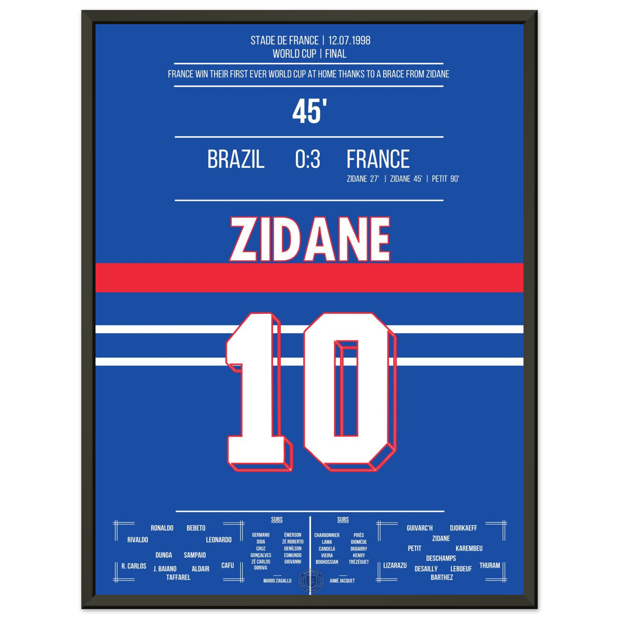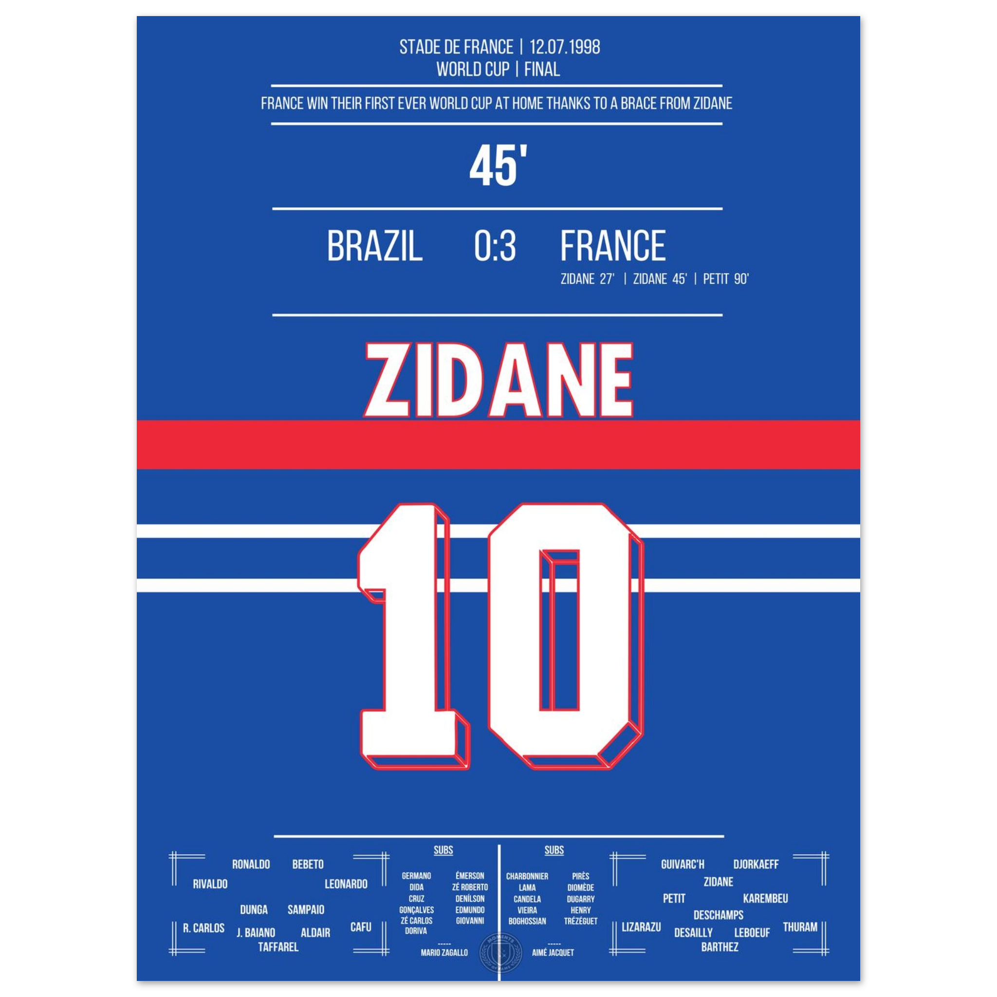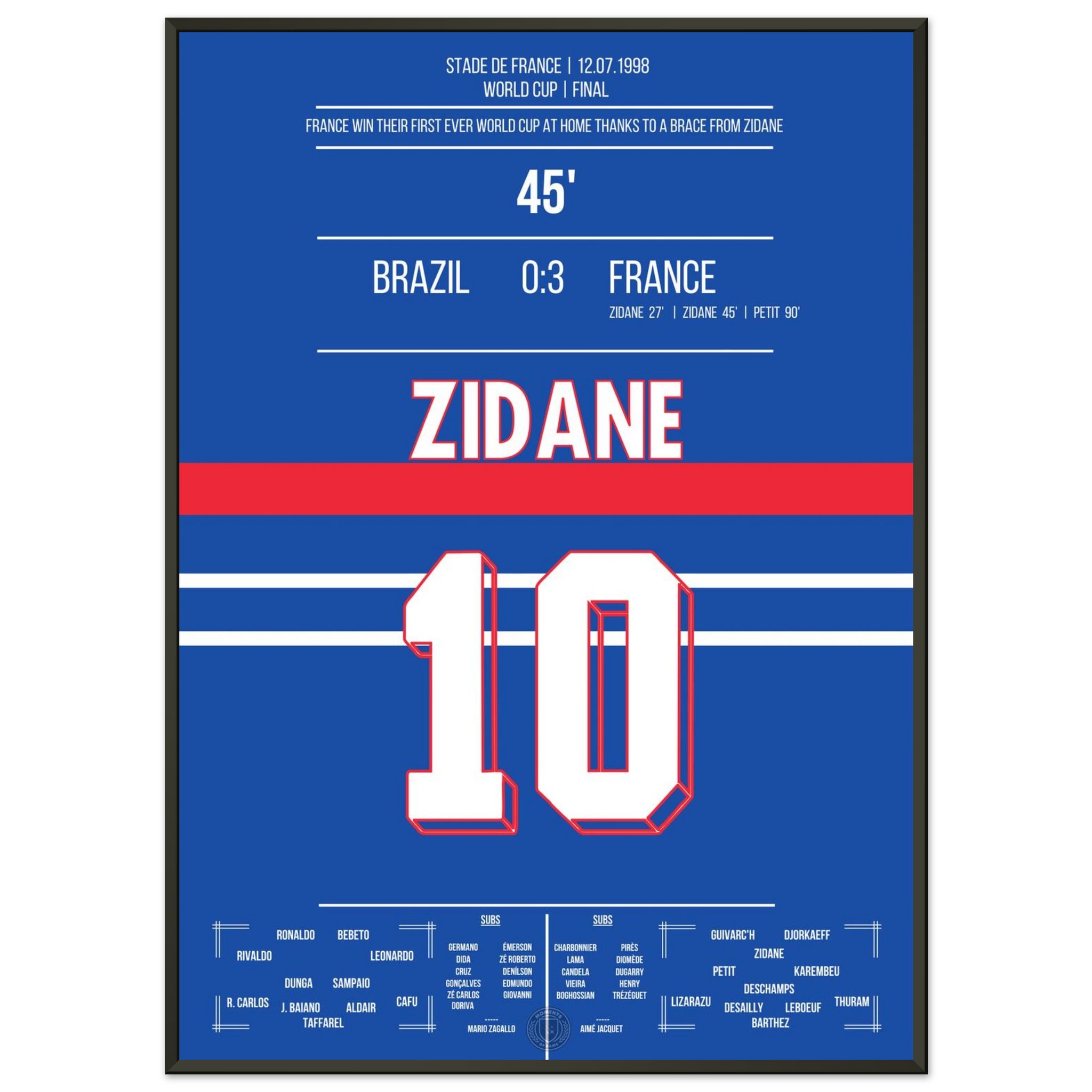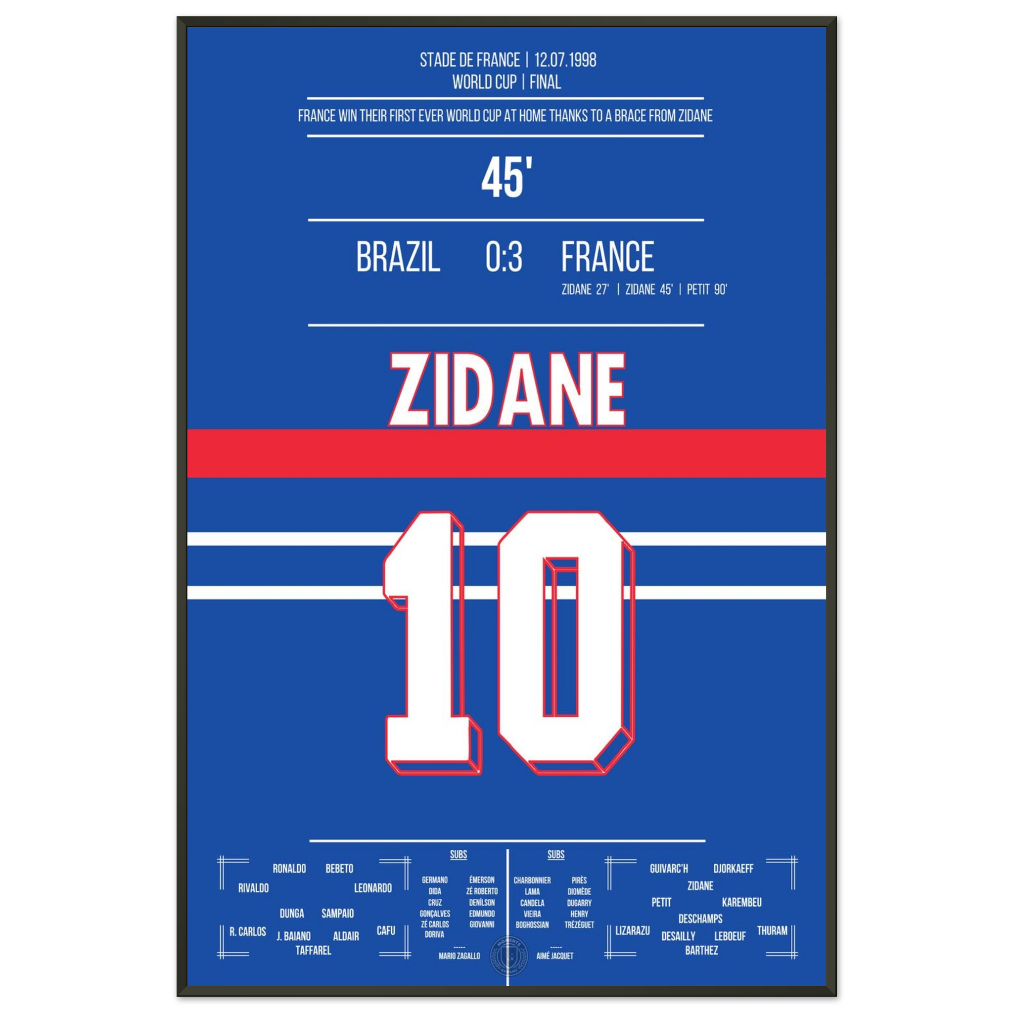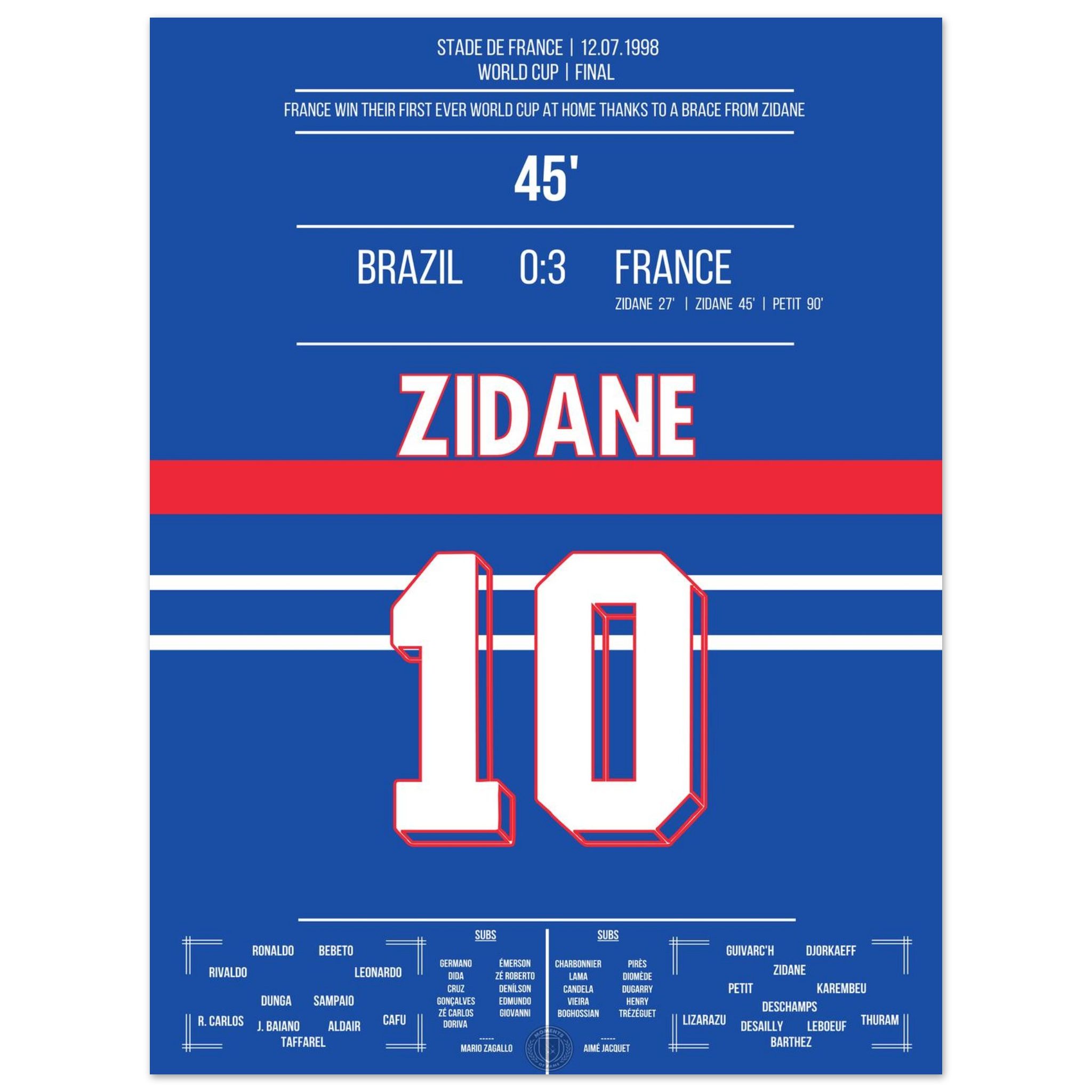 Zidane's header double pack for France's first World Cup title in 1998 against Brazil.
