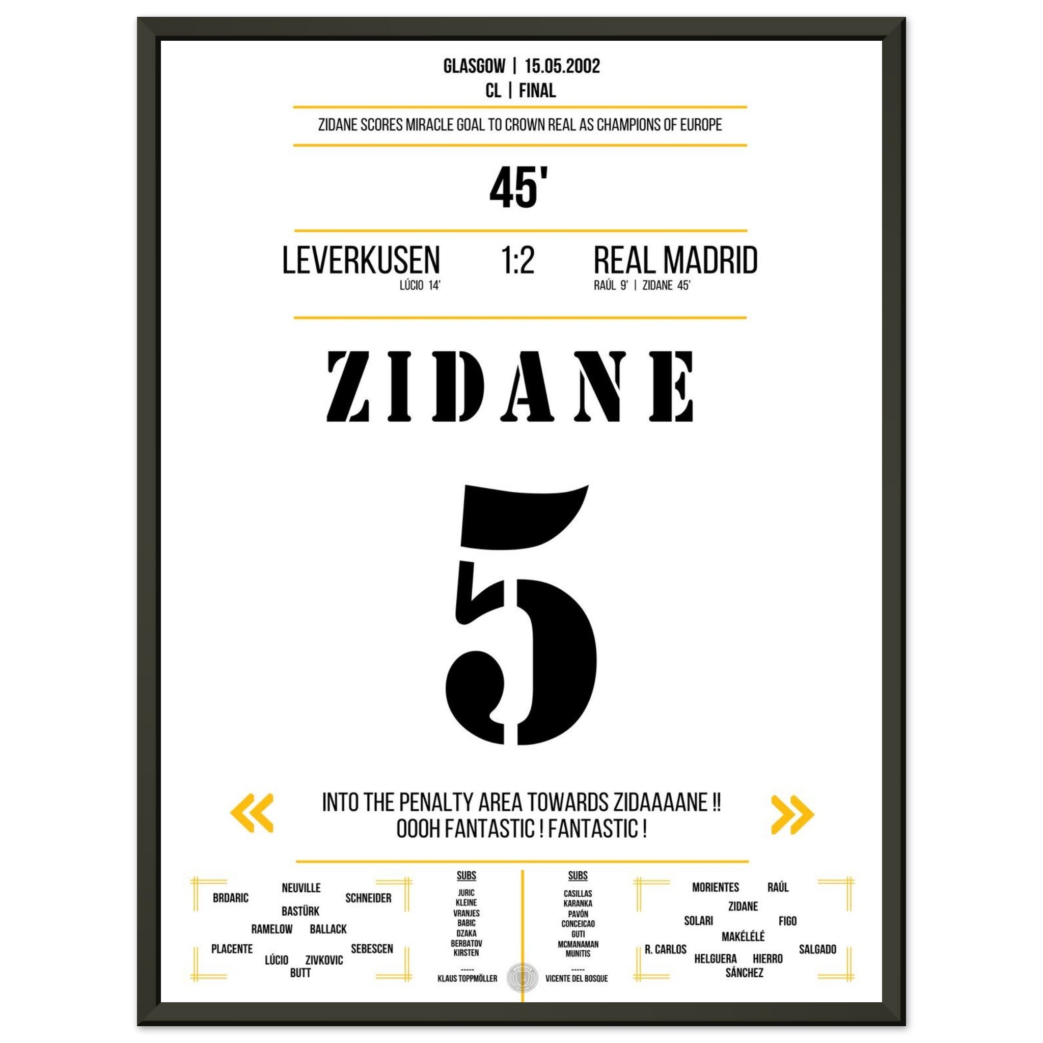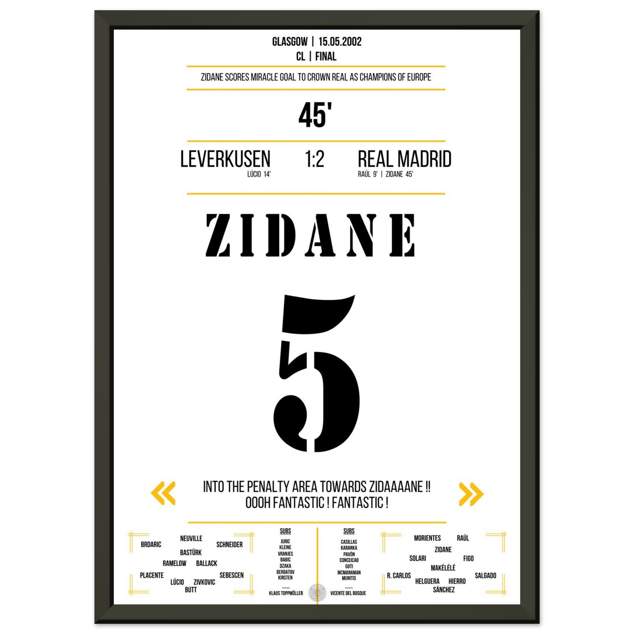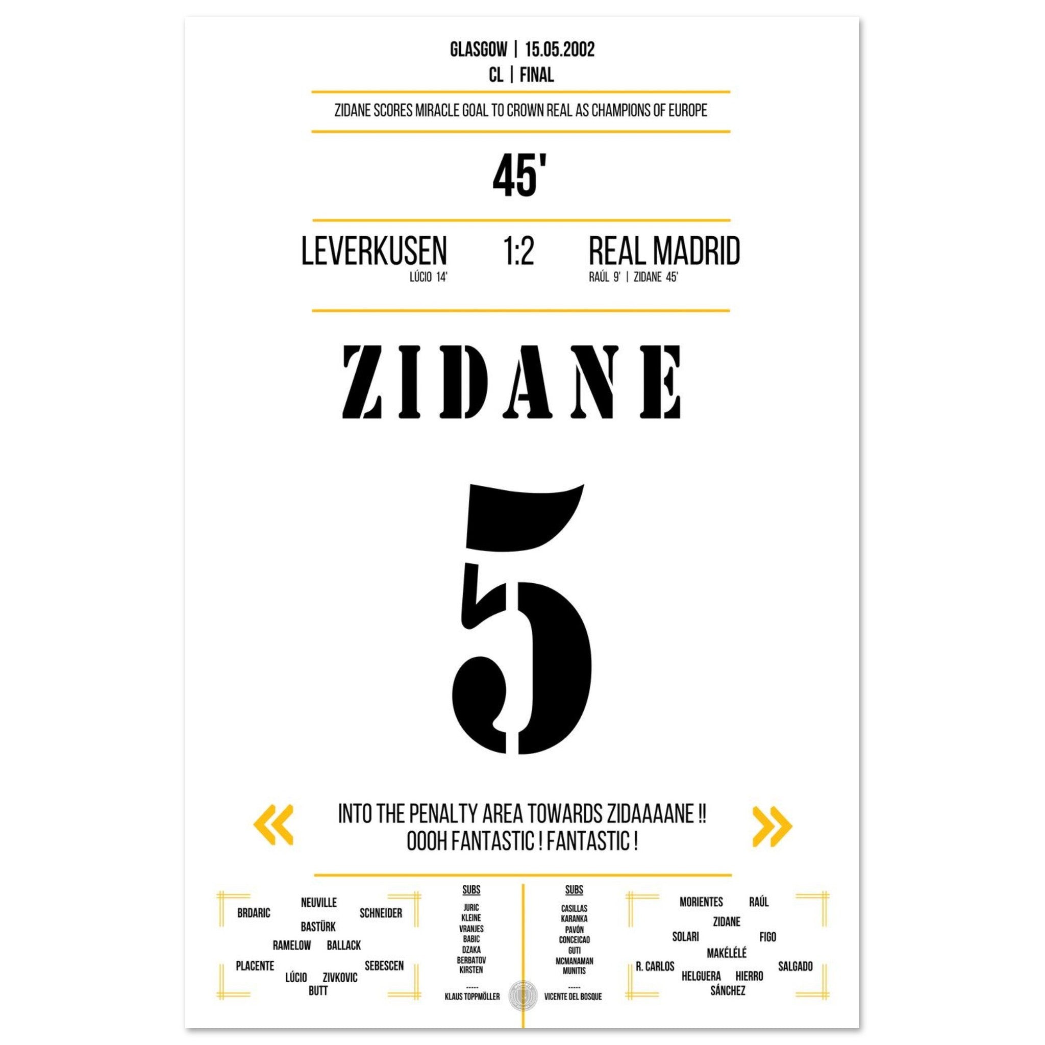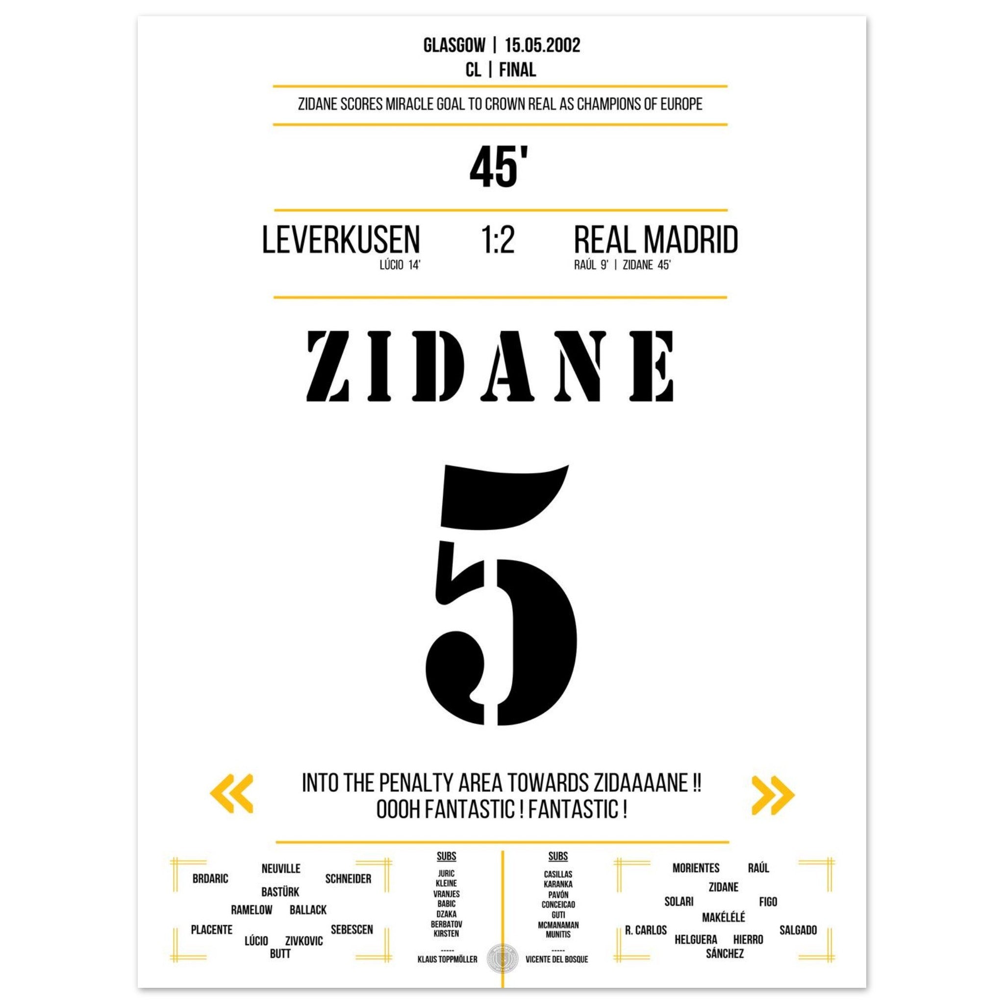 Zidane's extraordinary volley goal in the 2002 final against Leverkusen