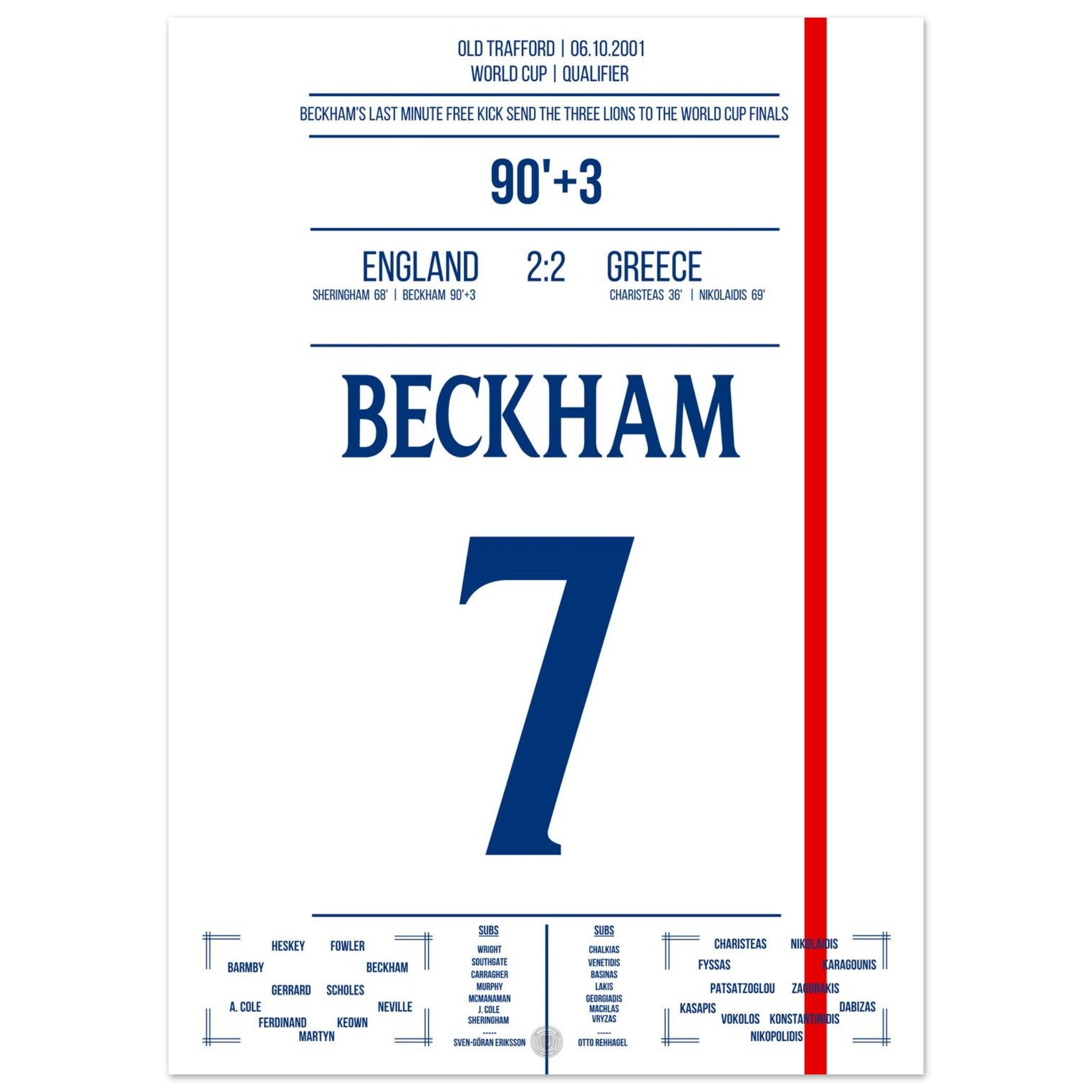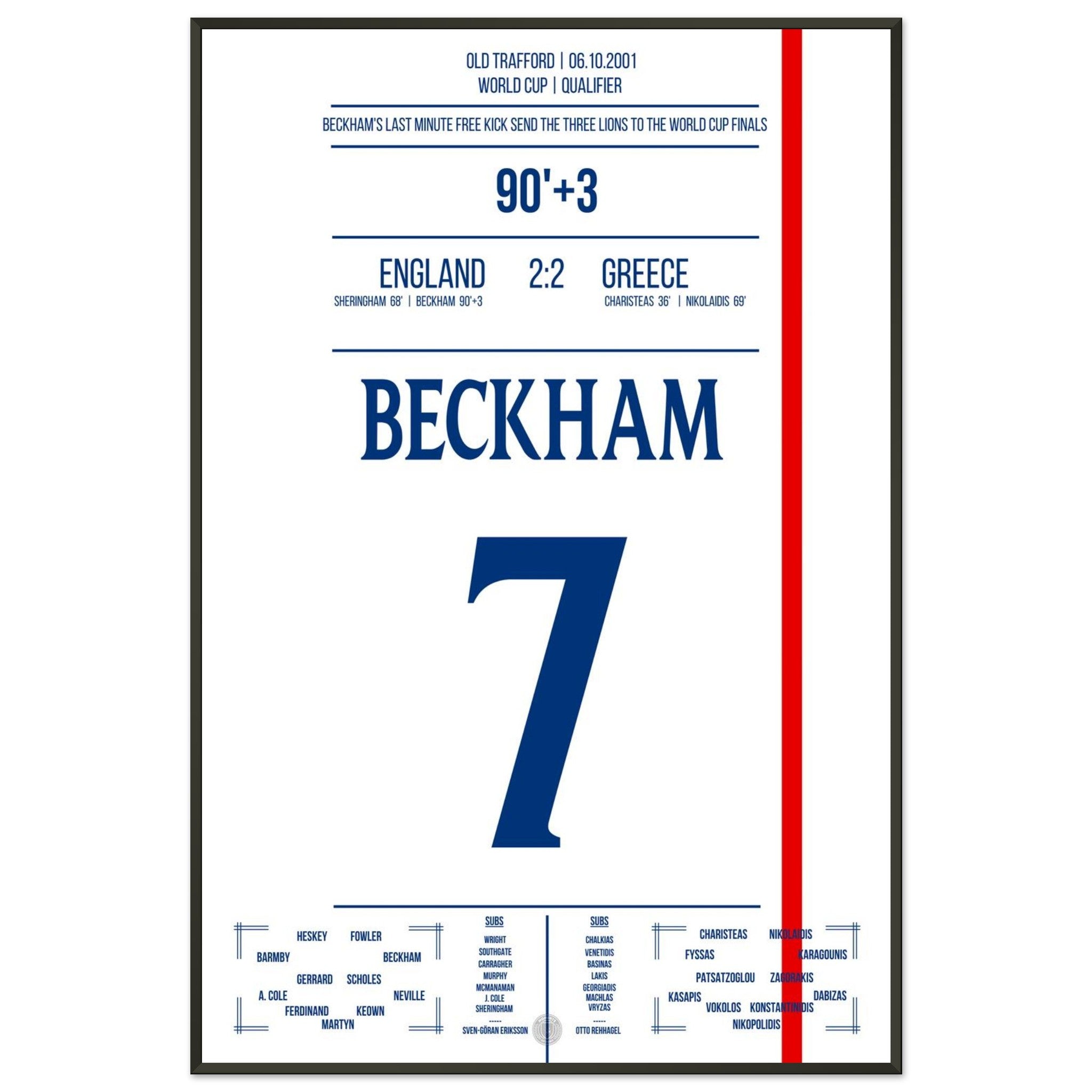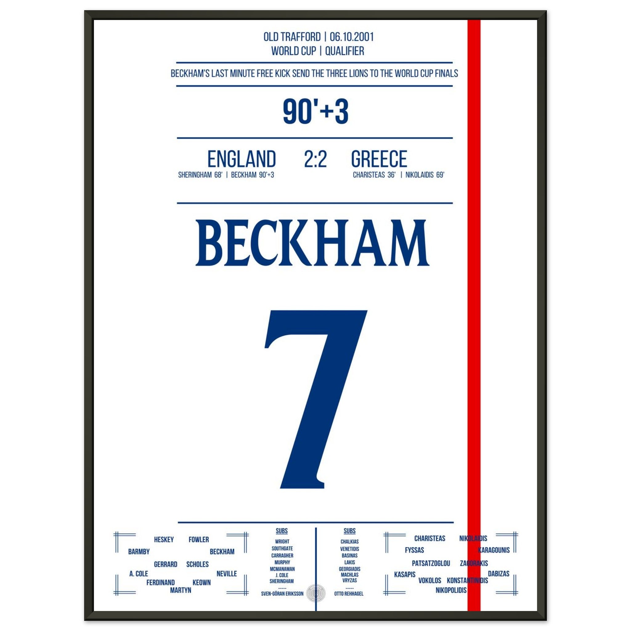 Unser Poster fängt diesen Gänsehautmoment ein – Beckhams göttlicher rechter Fuß, der ein ganzes Land jubeln ließ.