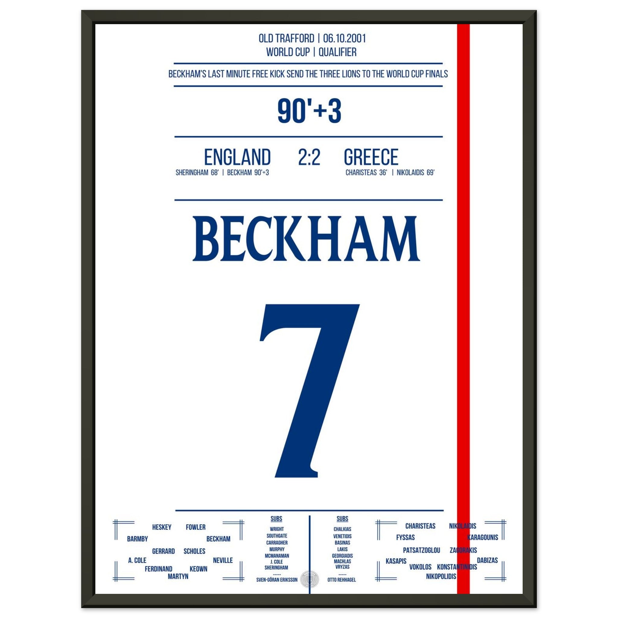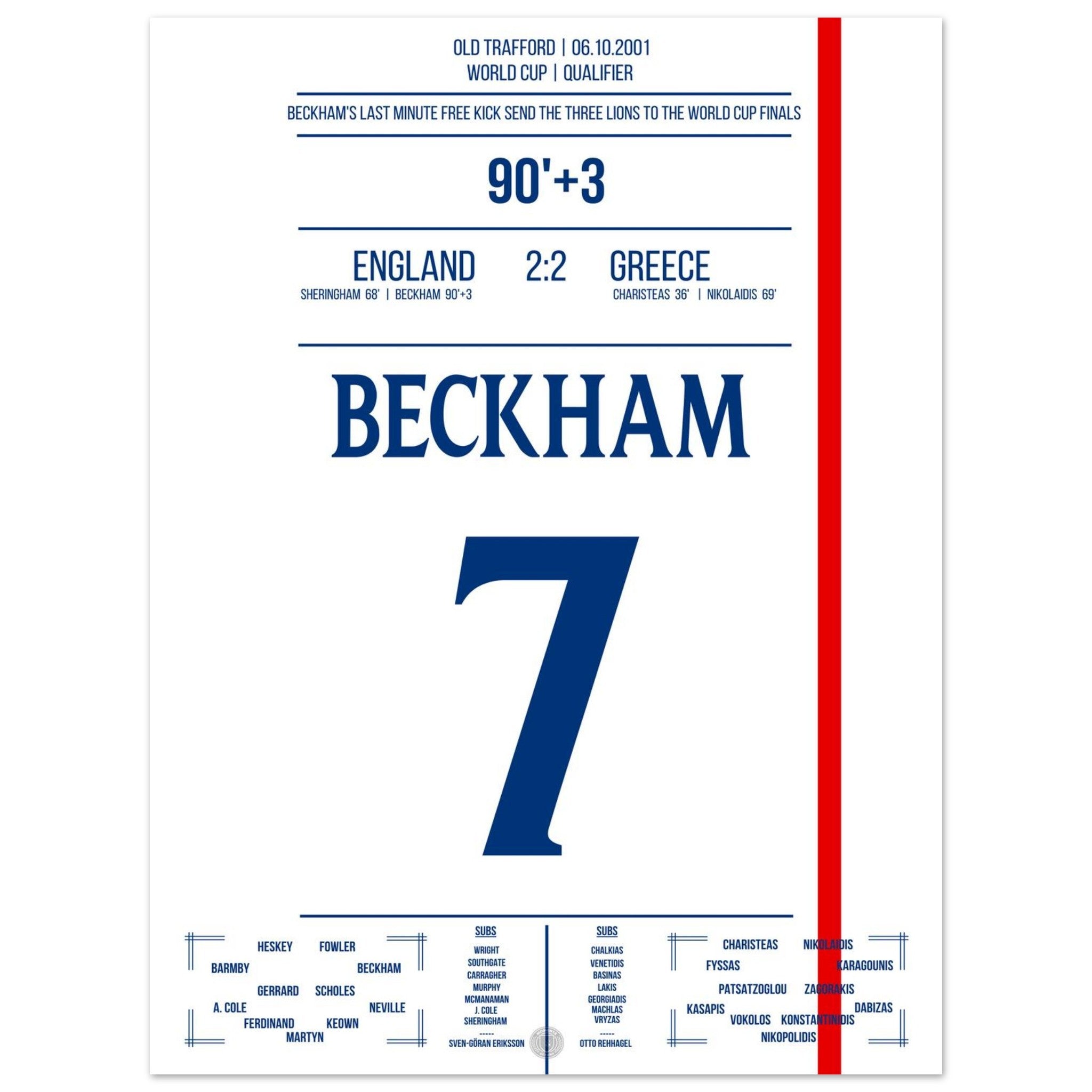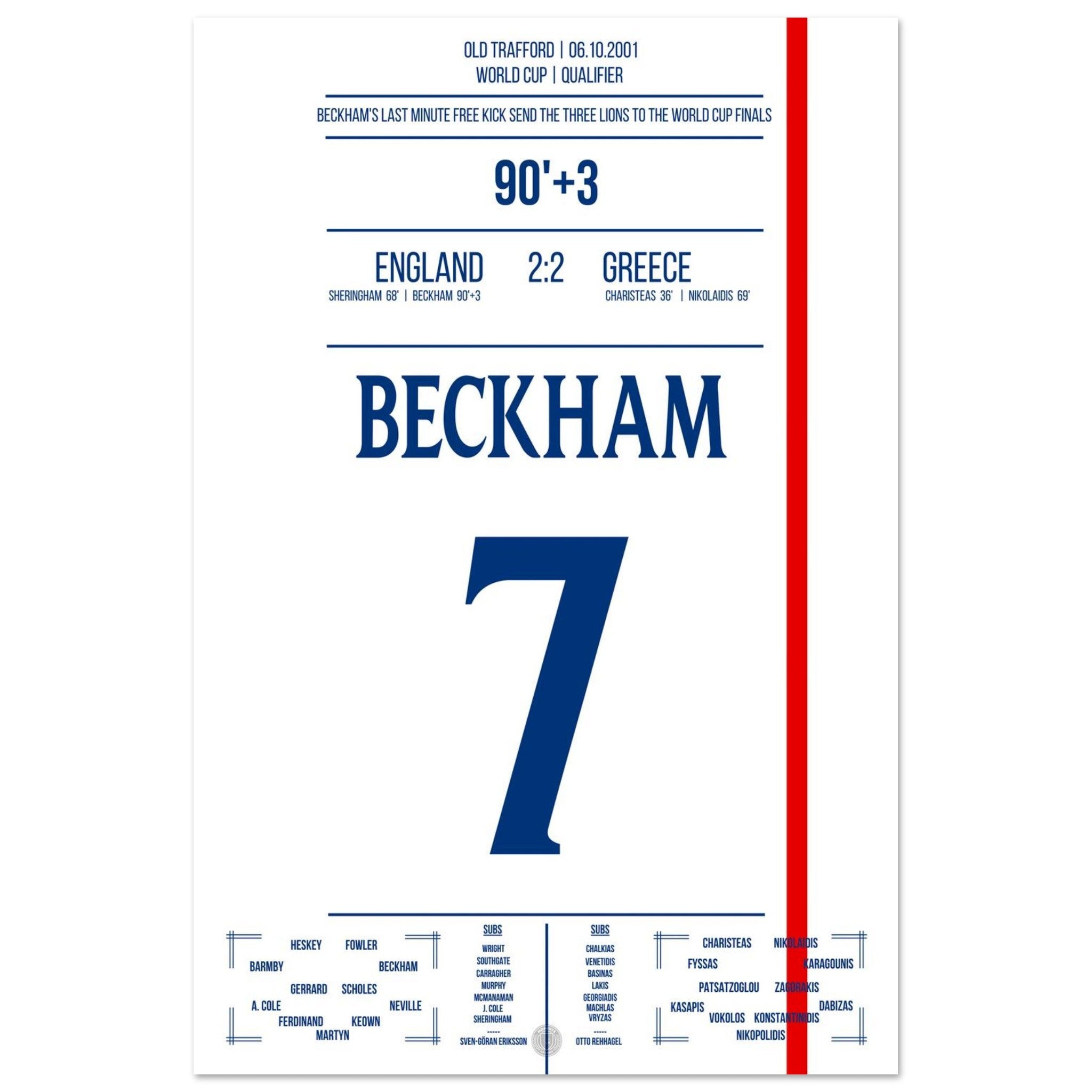 Unser Poster fängt diesen Gänsehautmoment ein – Beckhams göttlicher rechter Fuß, der ein ganzes Land jubeln ließ.