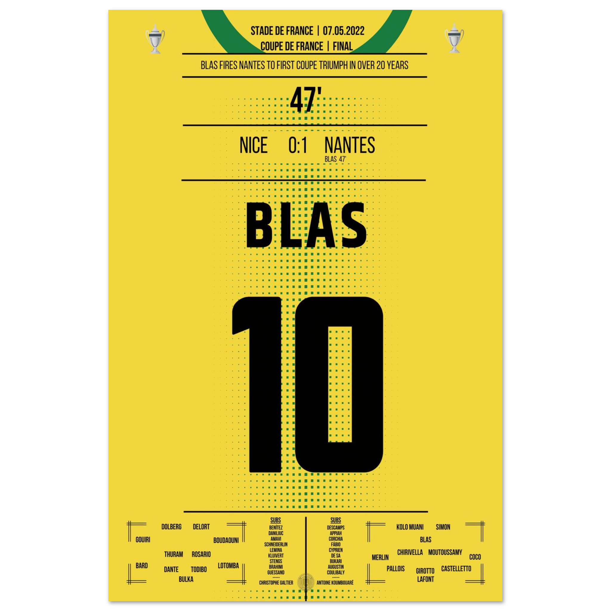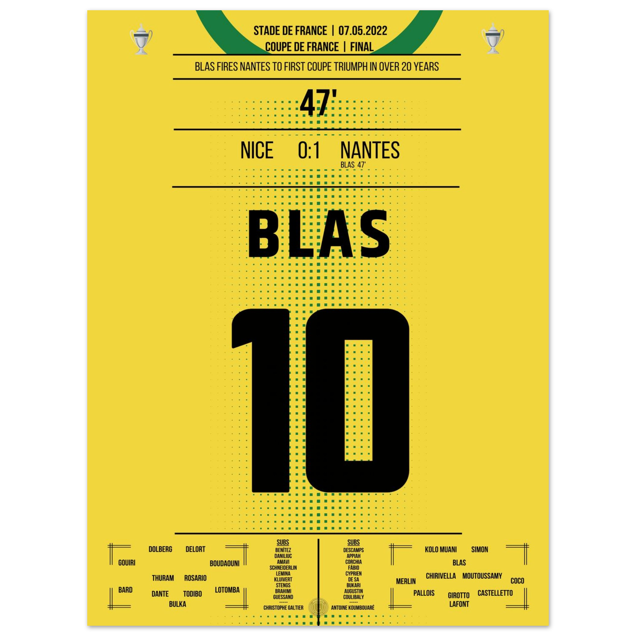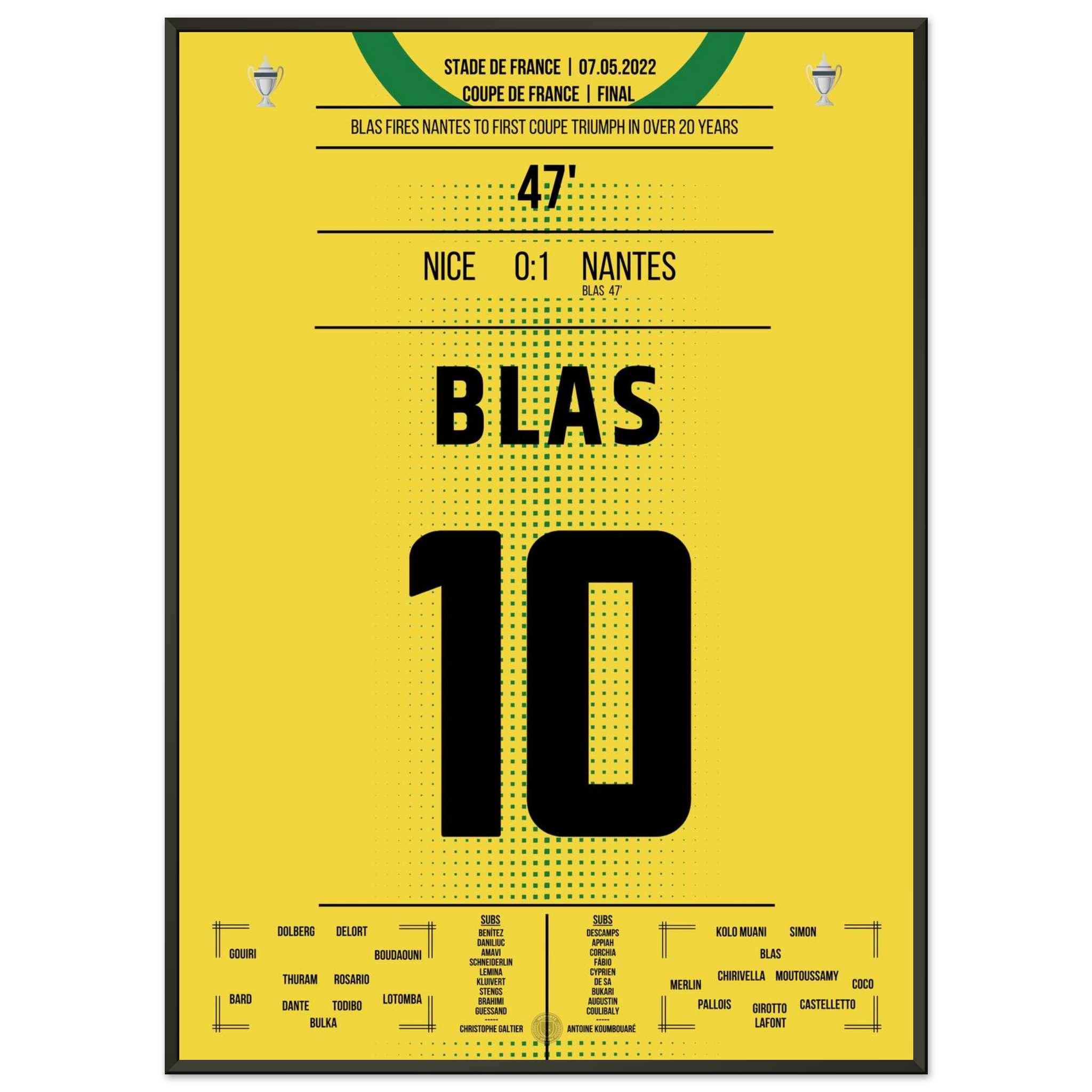 Ein magischer Abend in Paris: Ludovic Blas verwandelt eiskalt vom Punkt und schenkt Nantes den ersten Pokaltitel seit über 20 Jahren. Nizza verzweifelt, Nantes feiert – Emotionen pur in Gelb und Grün.