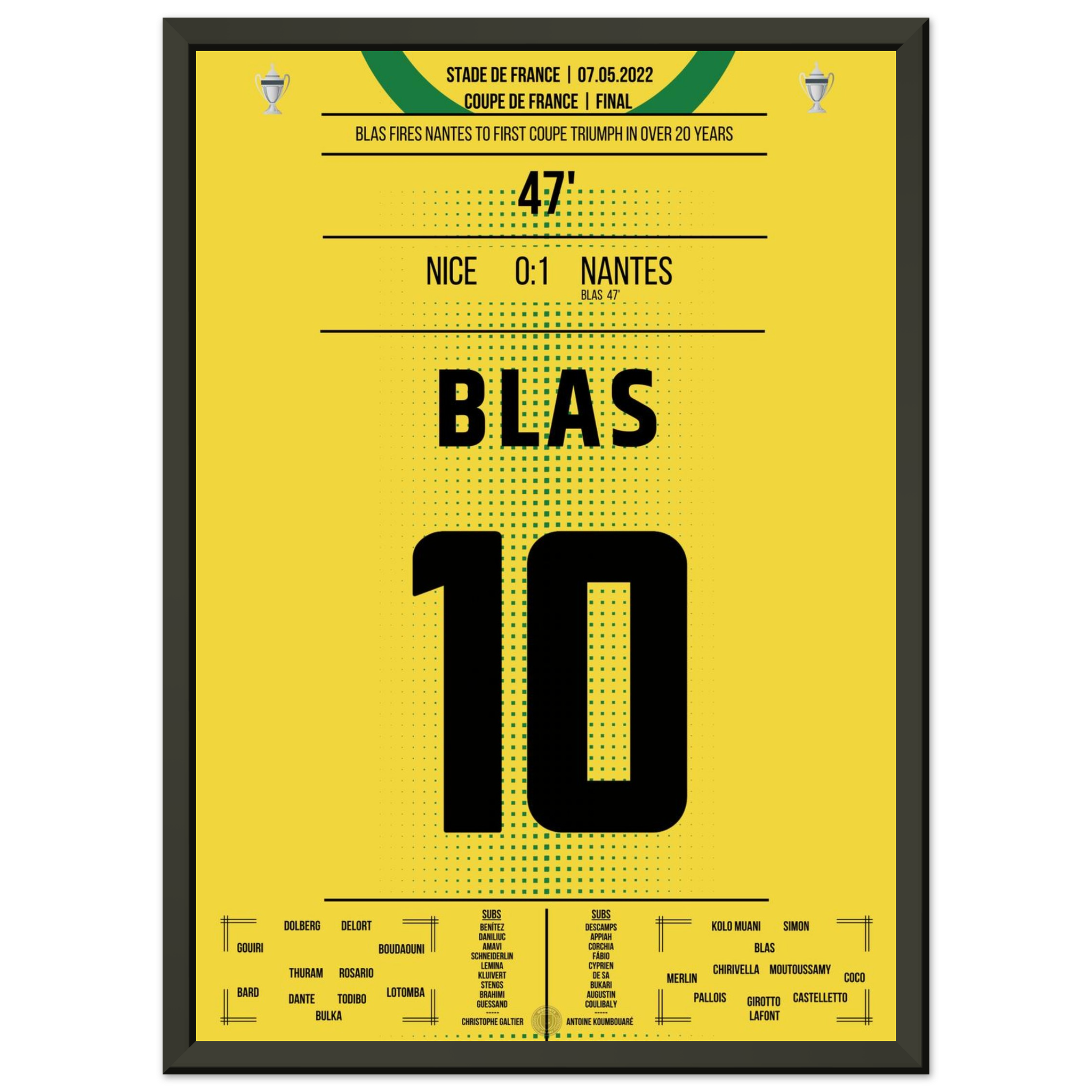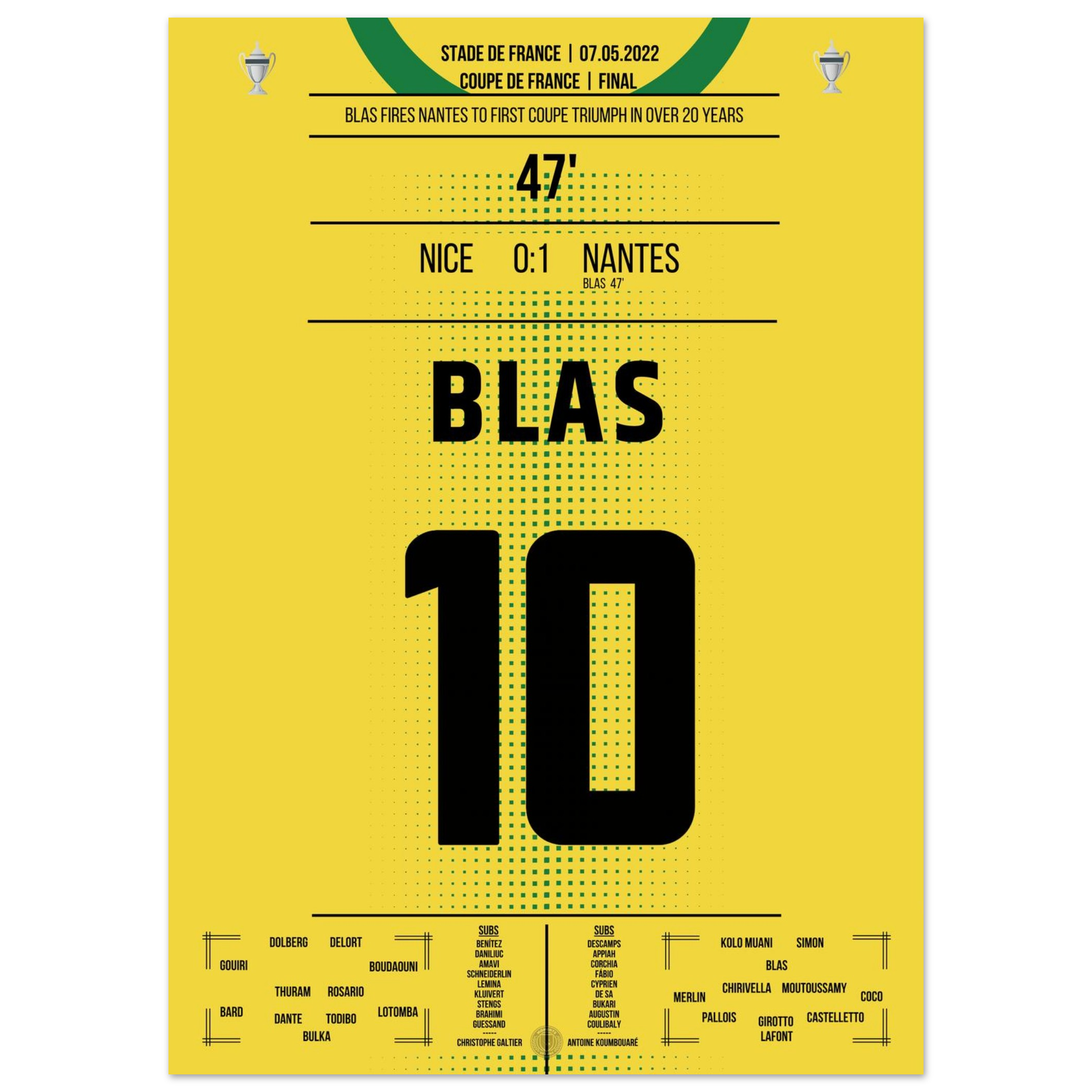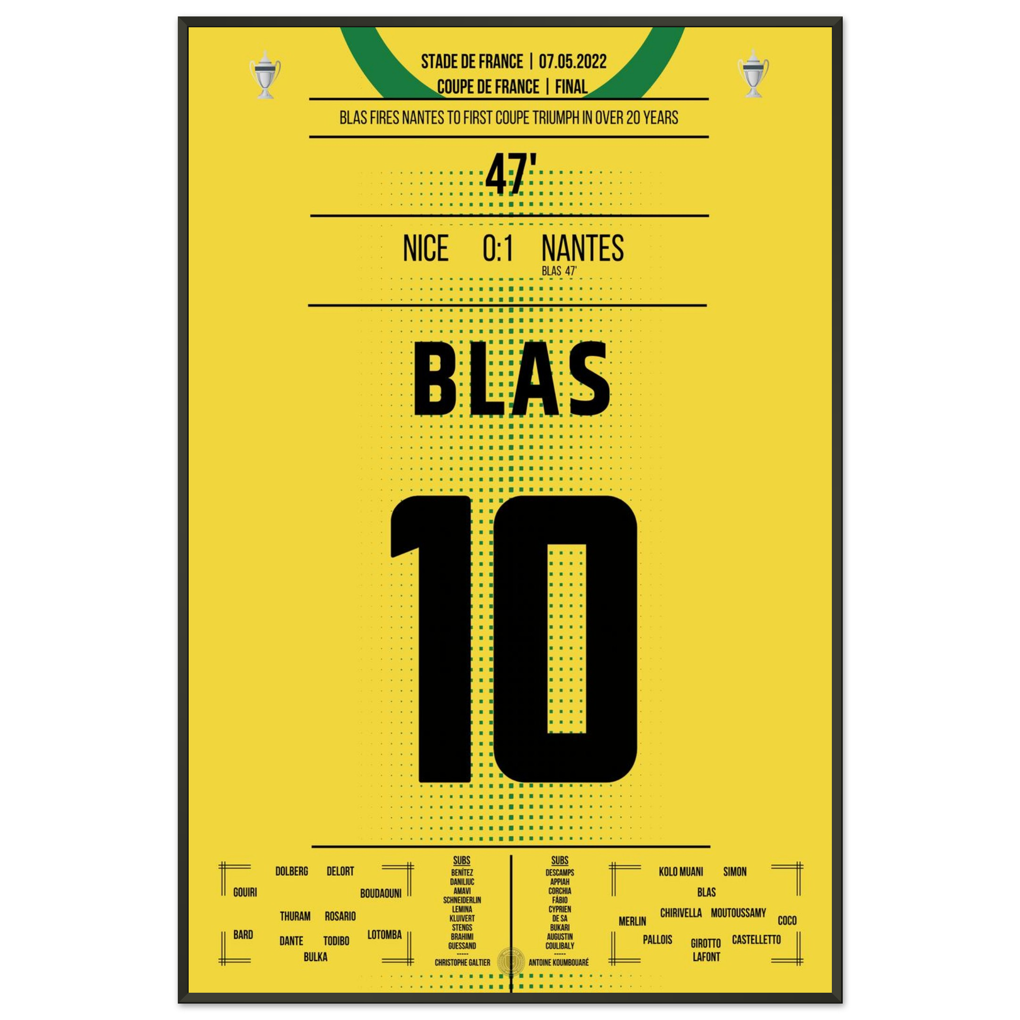Ein magischer Abend in Paris: Ludovic Blas verwandelt eiskalt vom Punkt und schenkt Nantes den ersten Pokaltitel seit über 20 Jahren. Nizza verzweifelt, Nantes feiert – Emotionen pur in Gelb und Grün.